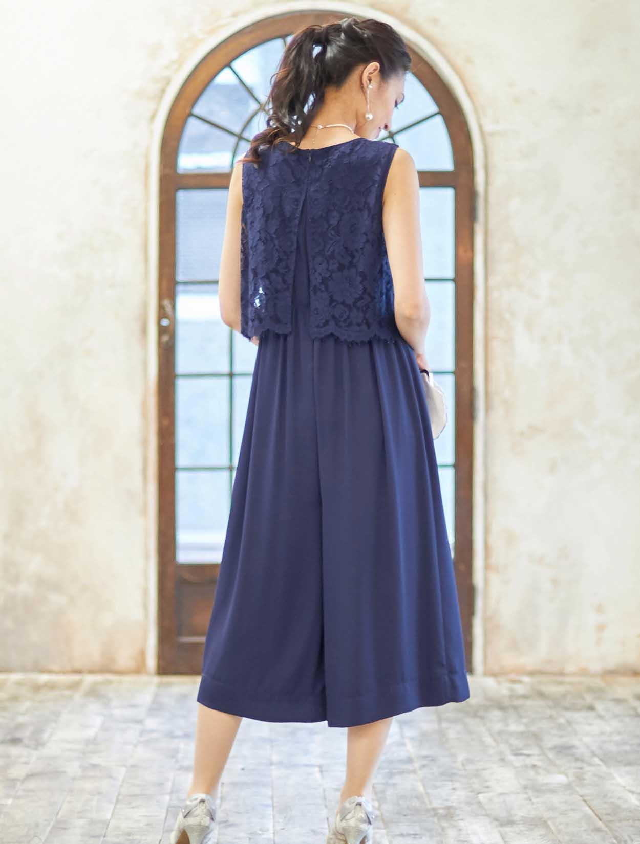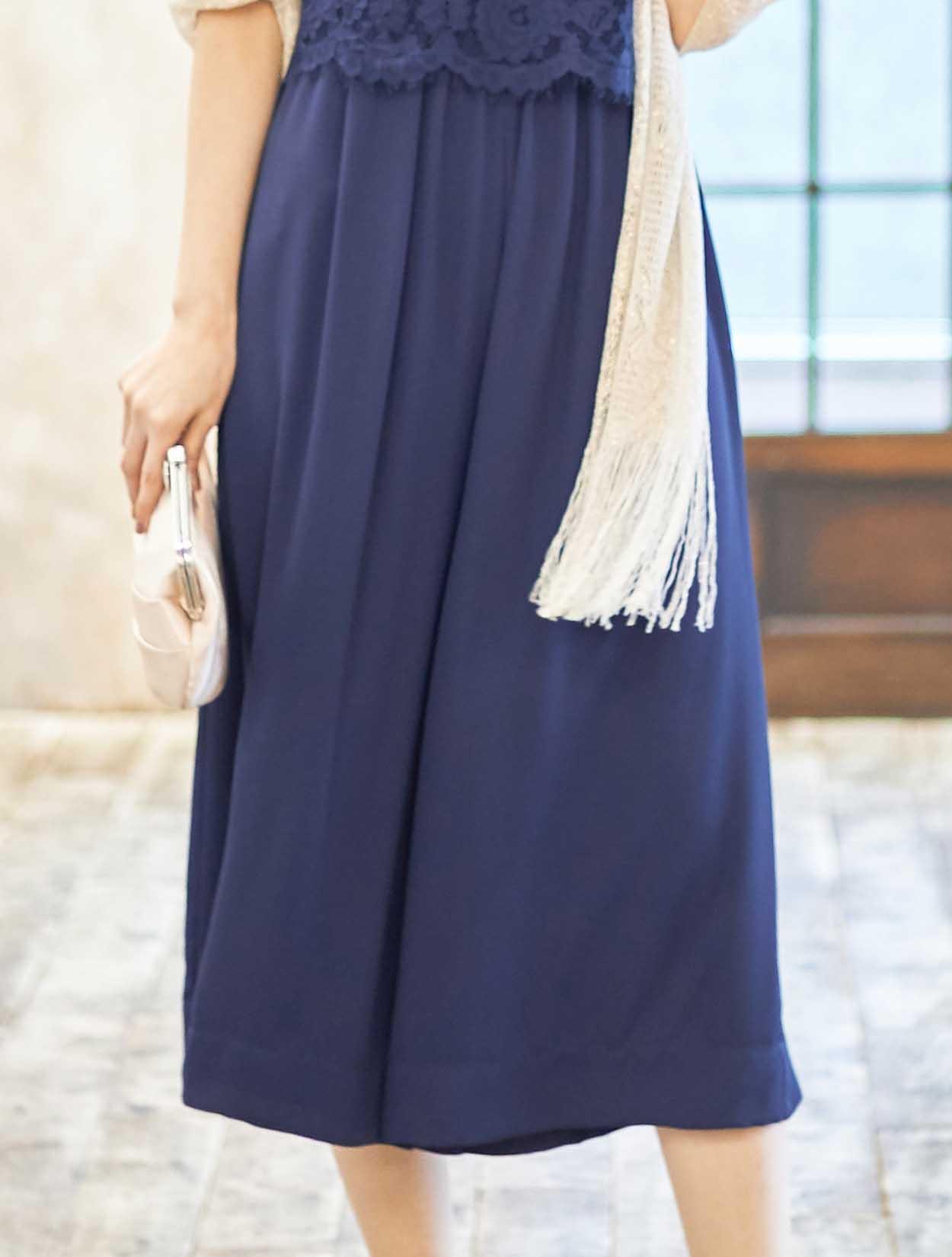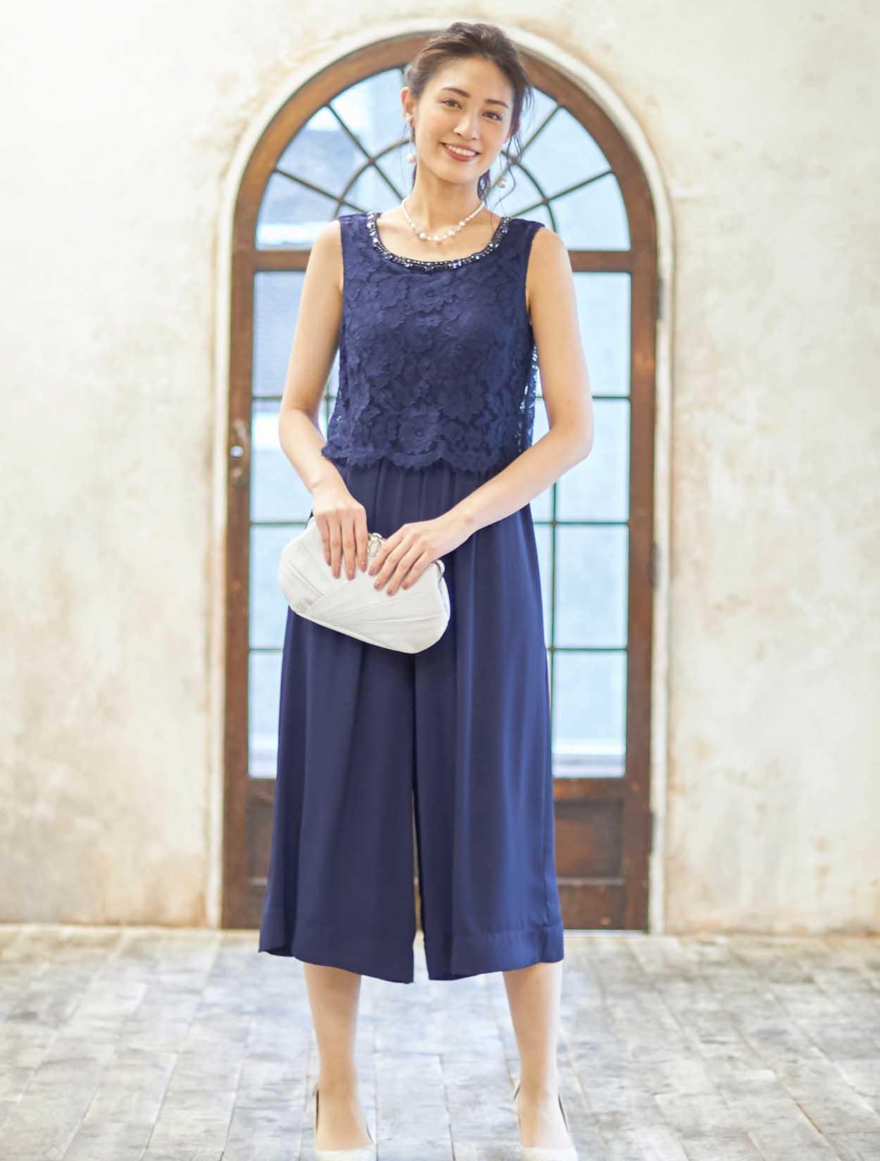 ■レース×ビジューがお顔回りを華やかにしてくれるパンツドレス。