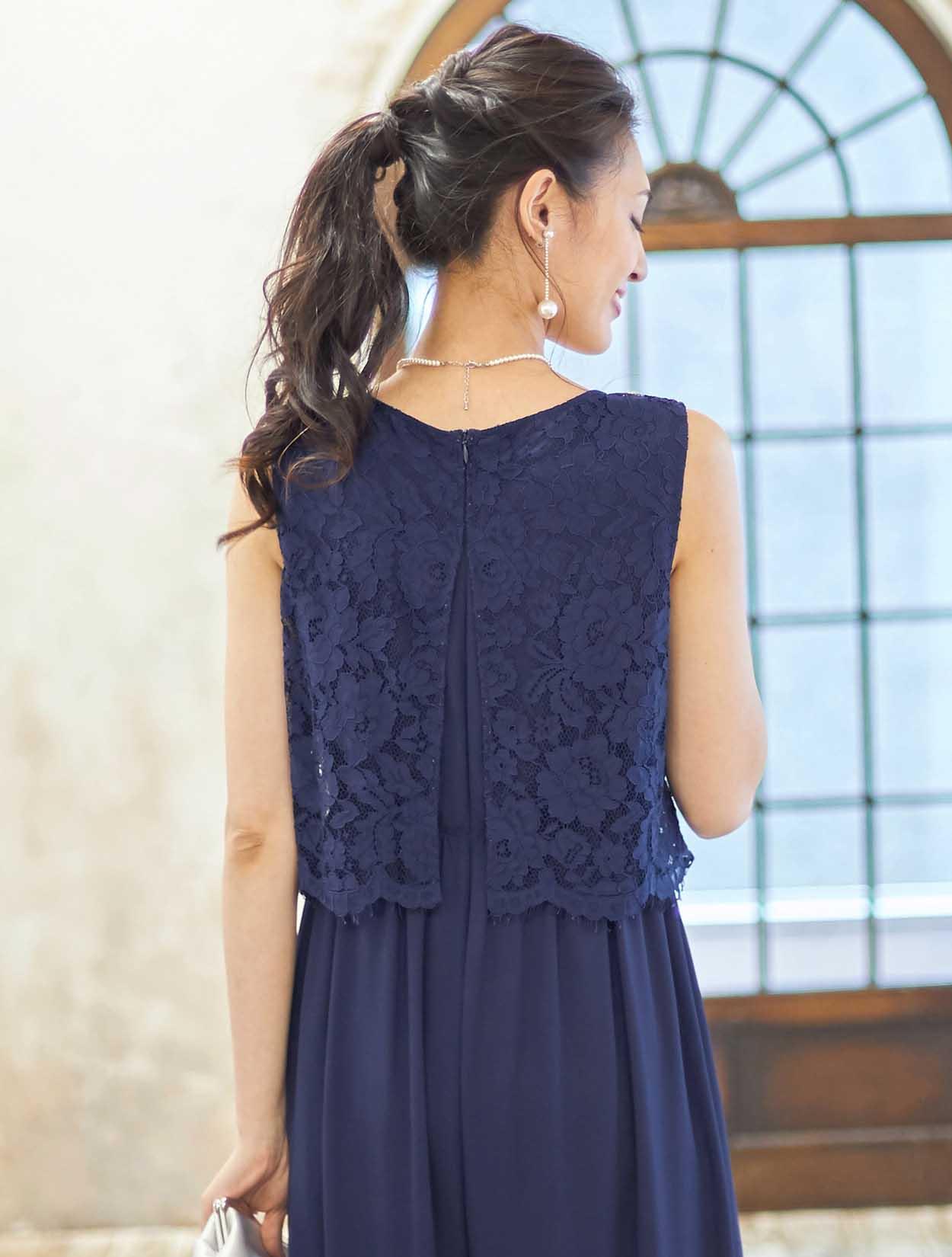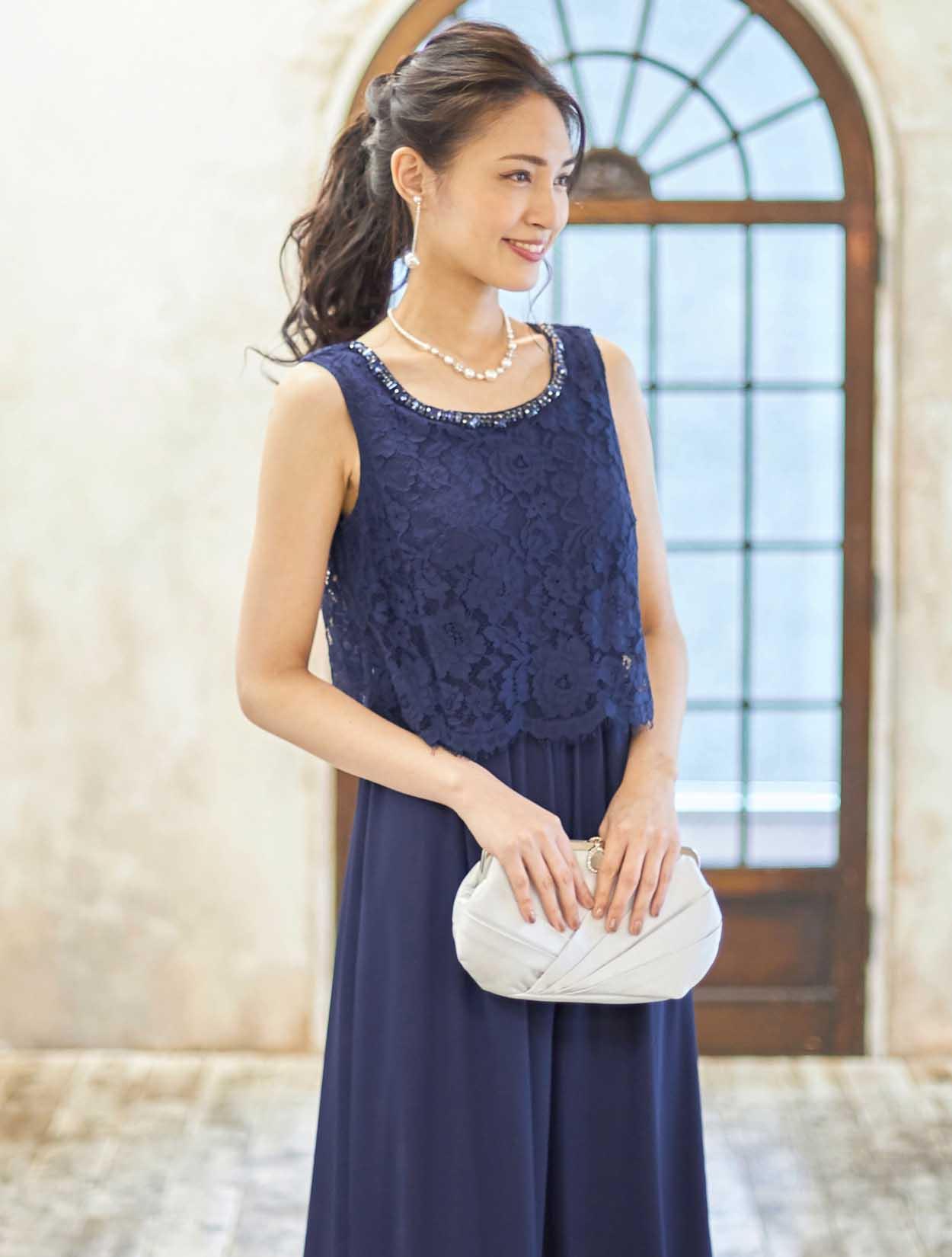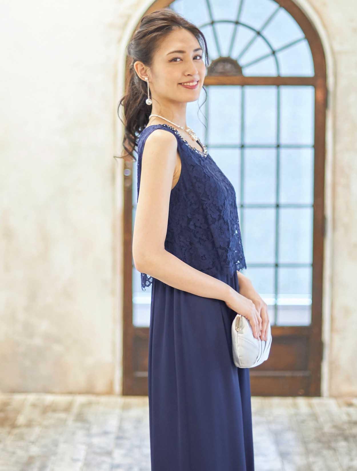 ■レース×ビジューがお顔回りを華やかにしてくれるパンツドレス。