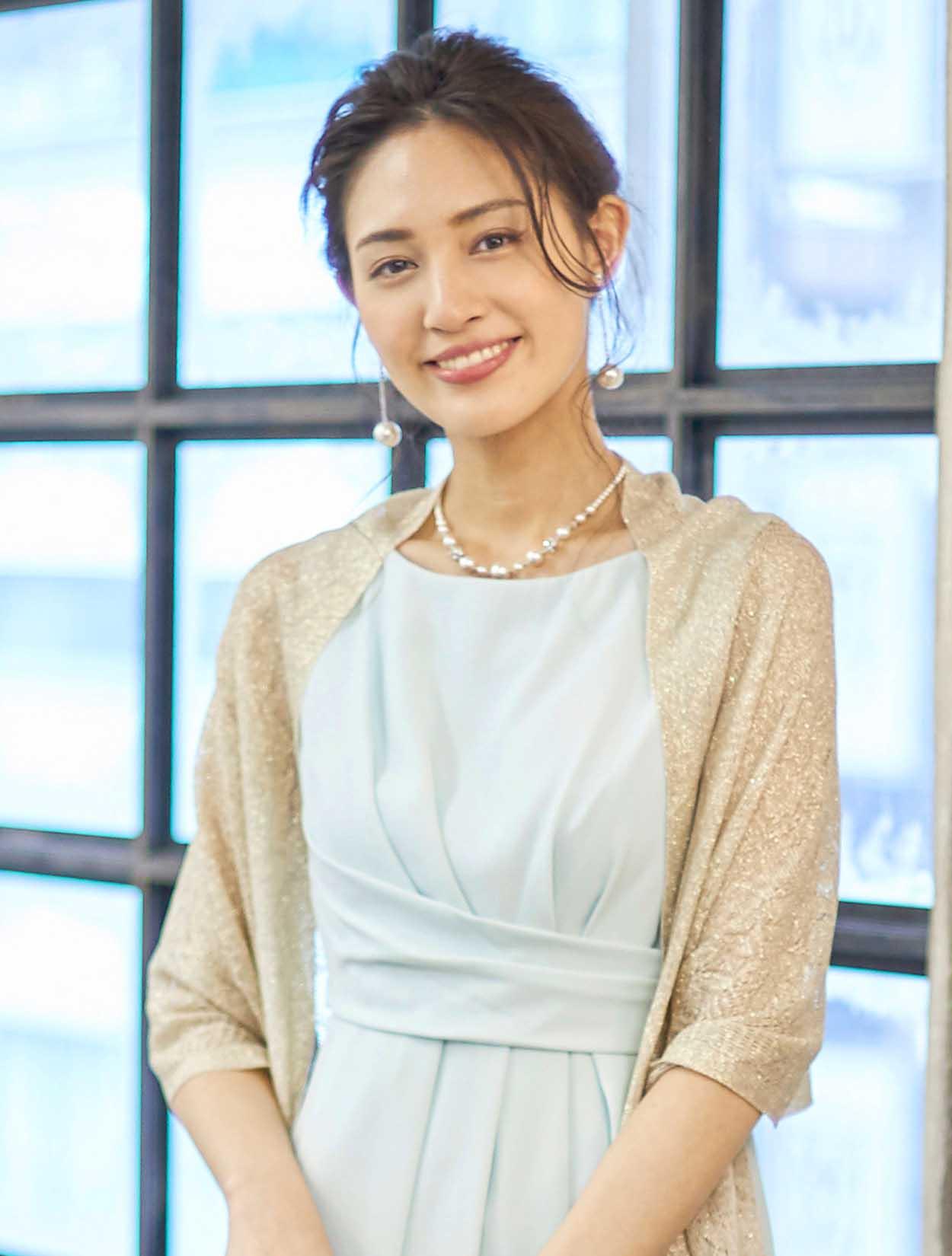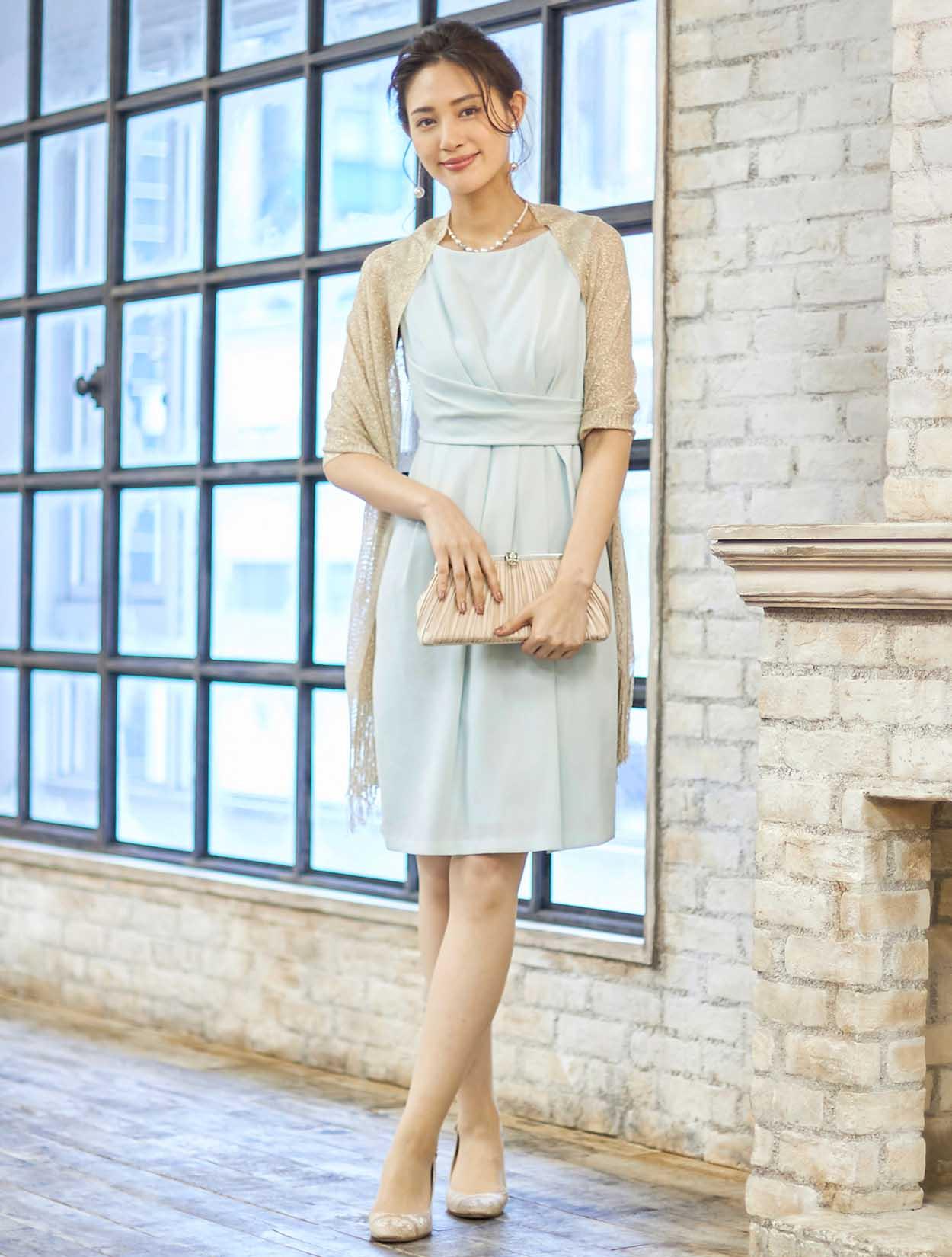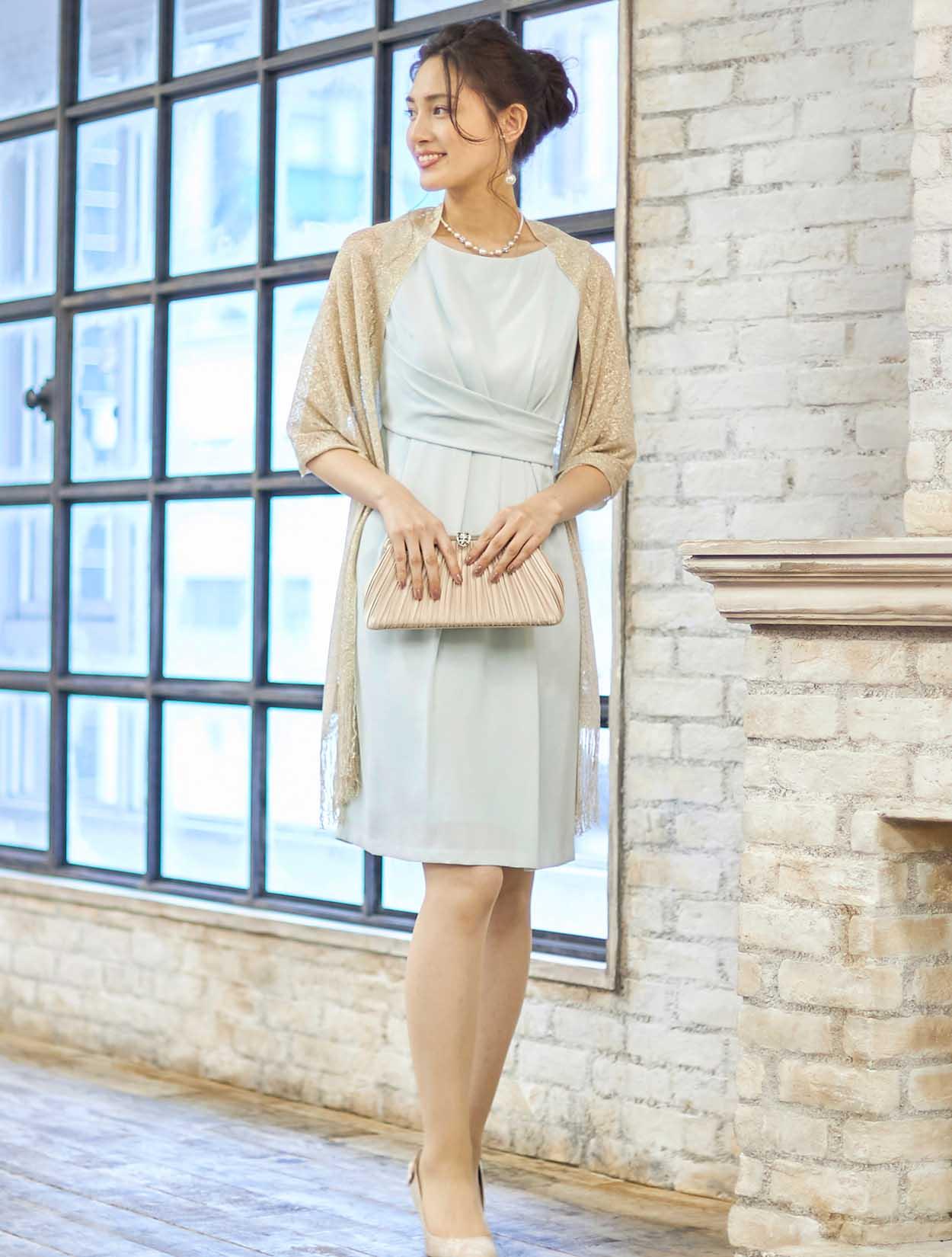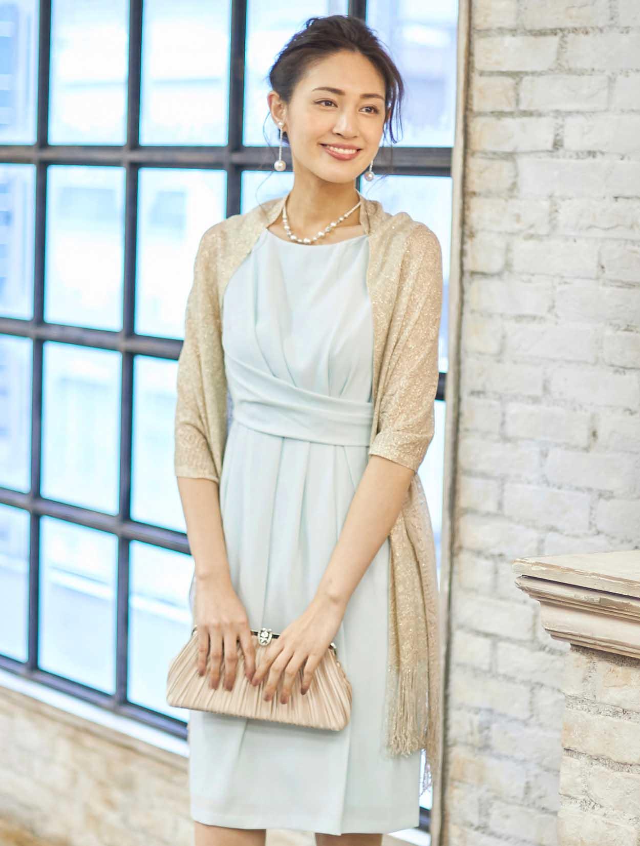 ■ゴールドのラメストールが寒色のドレスを女性らしく柔らかい印象にしてくれるコーディネートです。