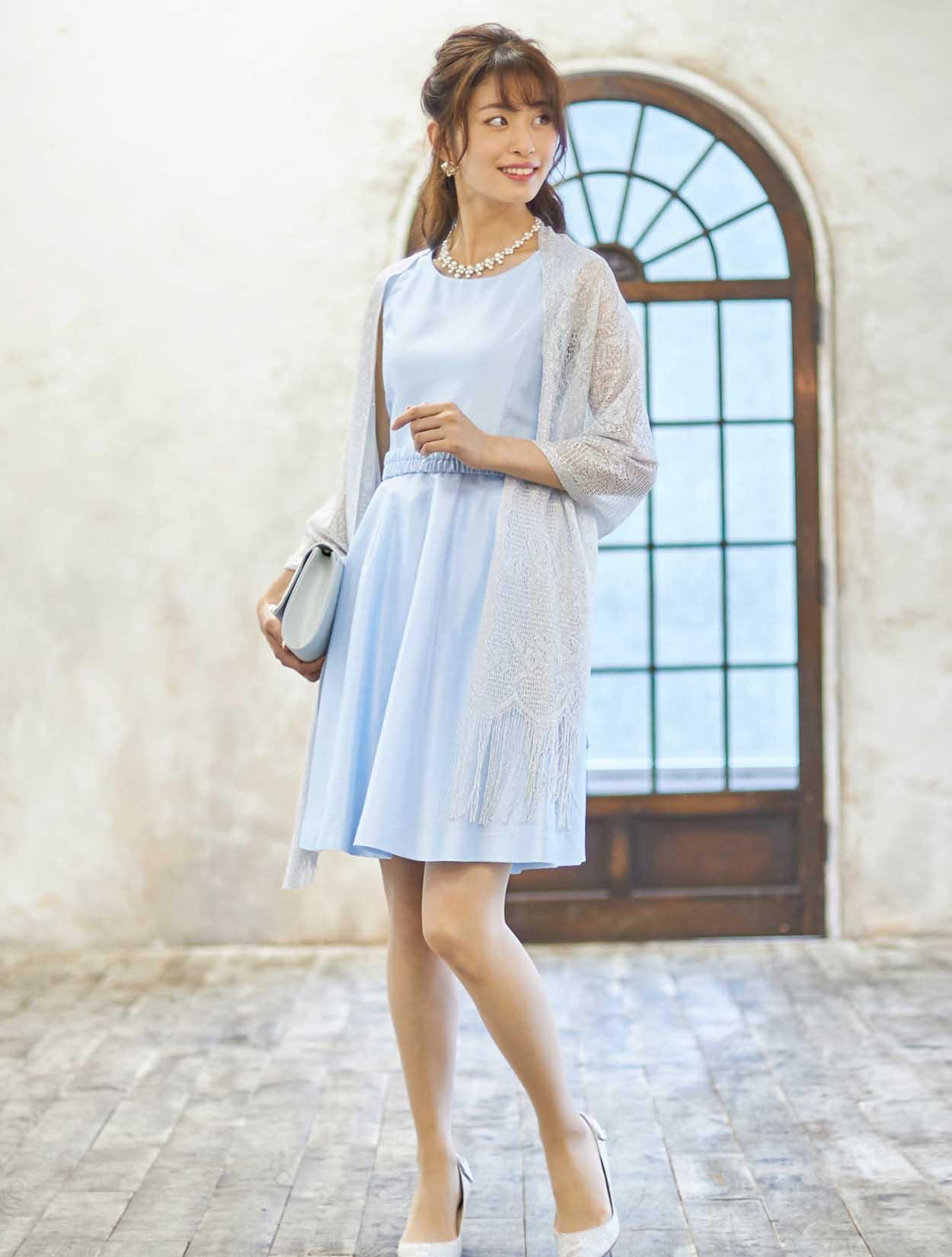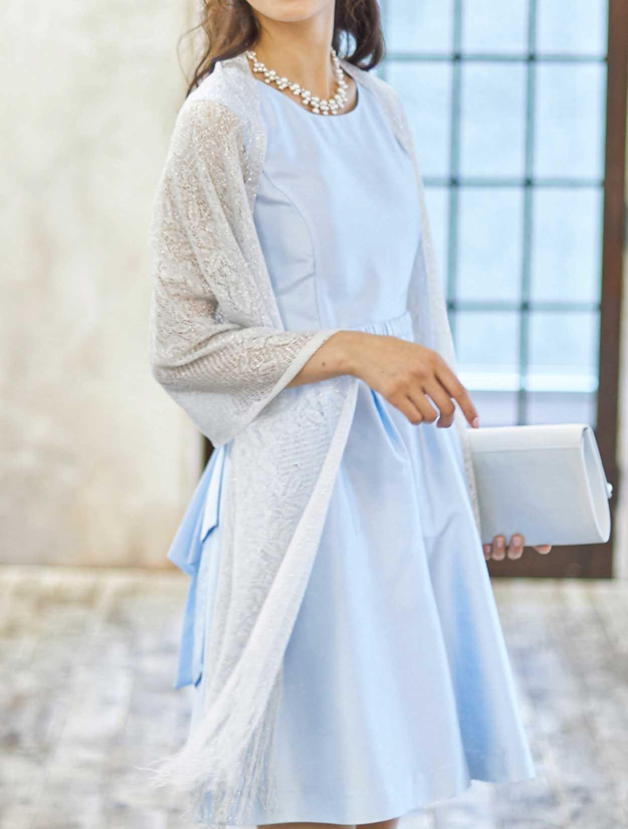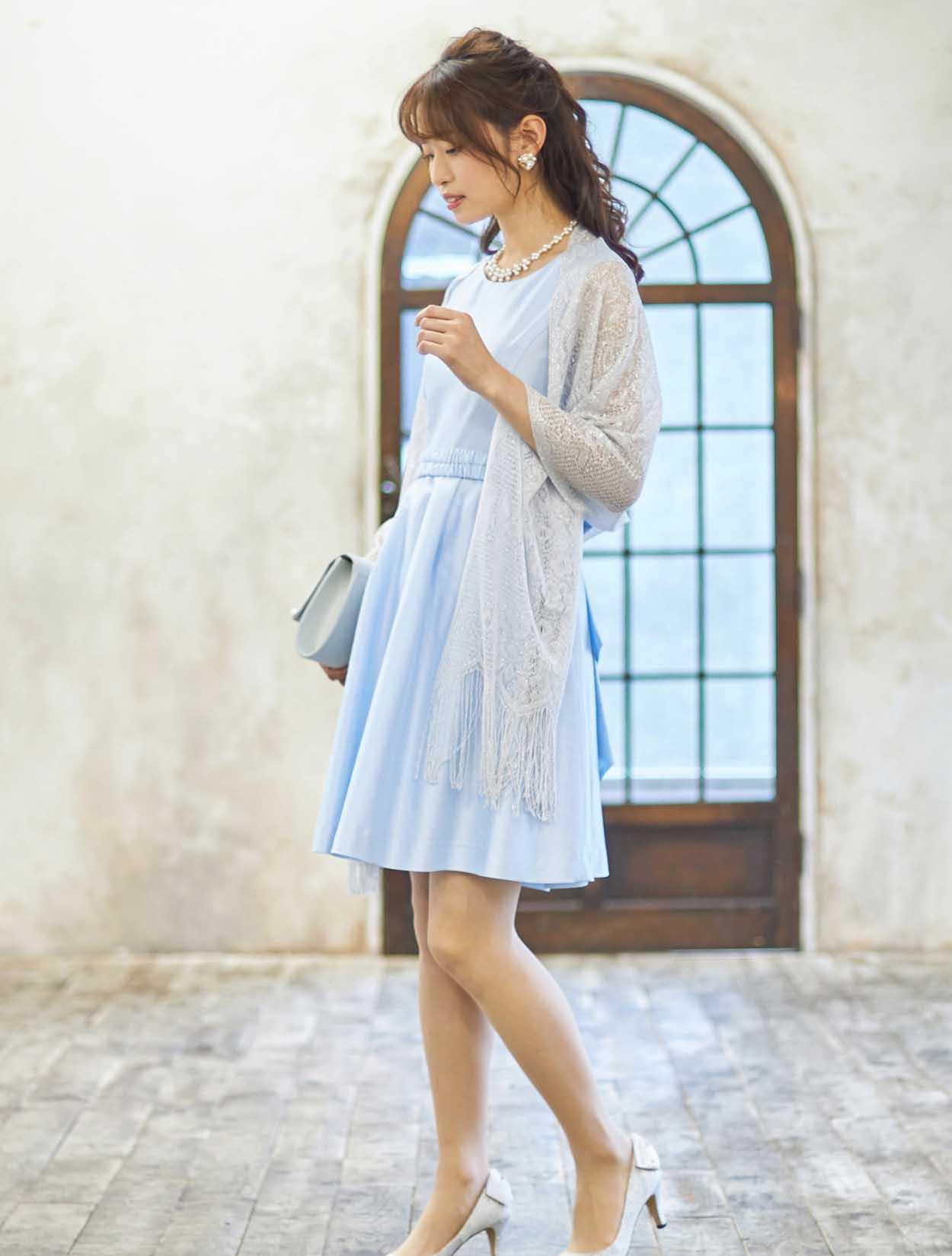 ■可愛らしい印象のドレスもラメのストールをコーディネートして少し大人っぽい印象に。