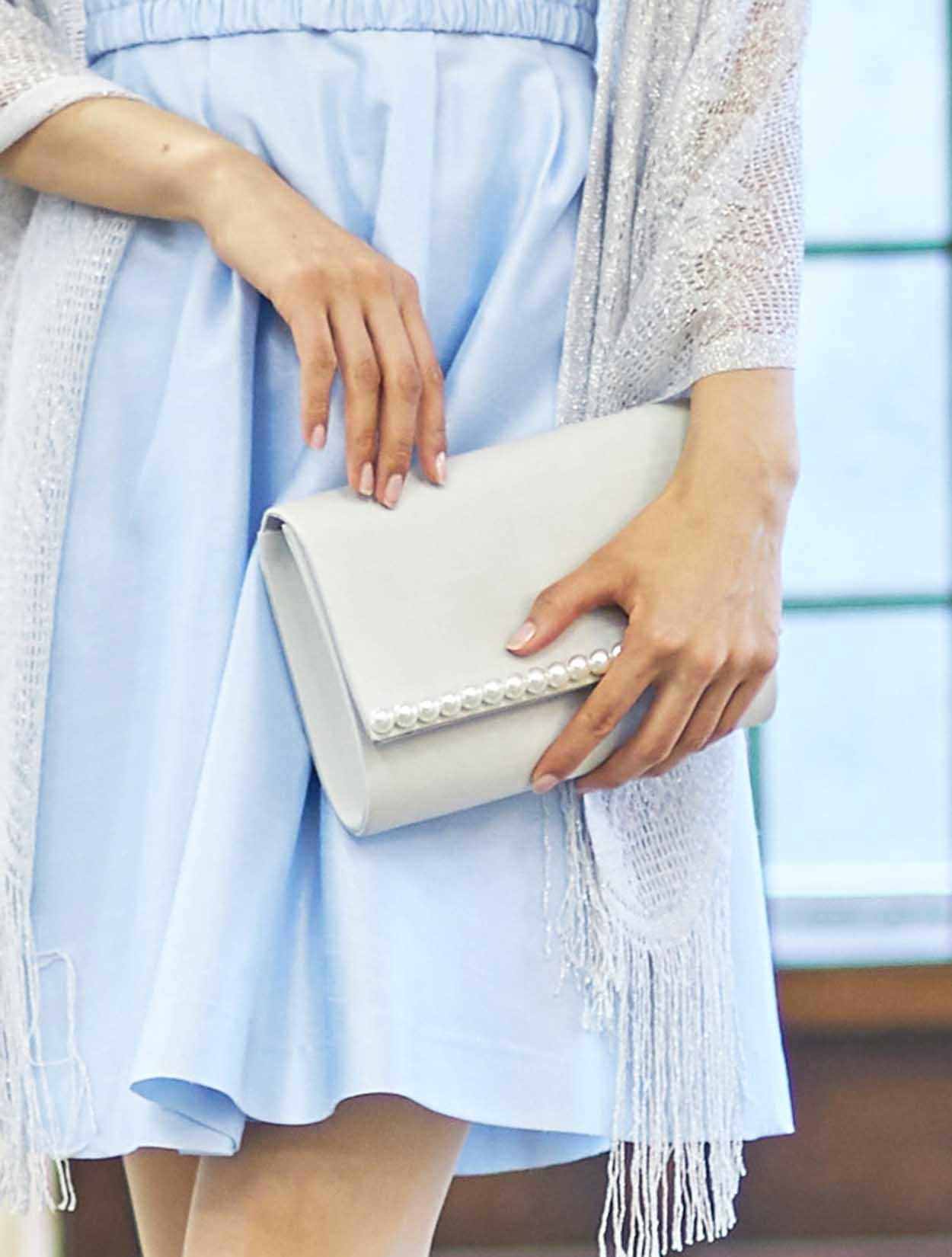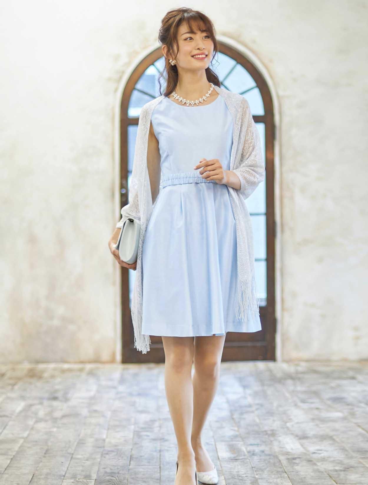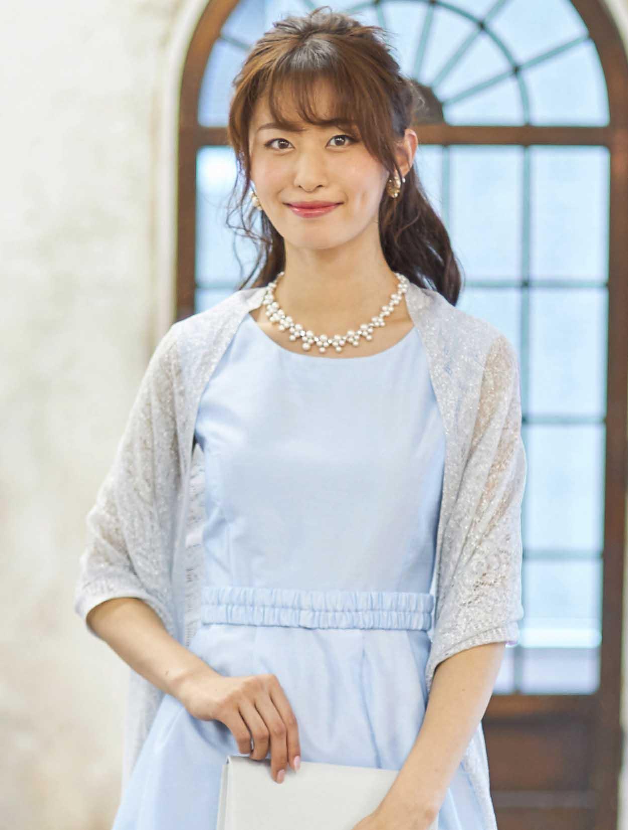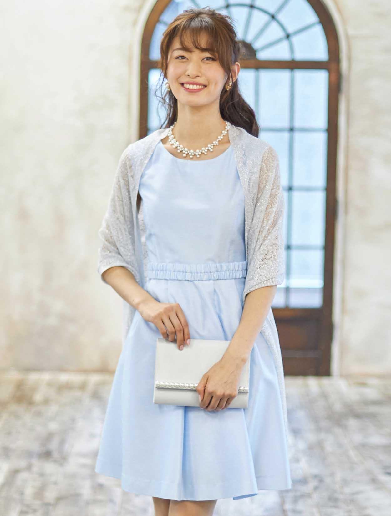 ■可愛らしい印象のドレスもラメのストールをコーディネートして少し大人っぽい印象に。