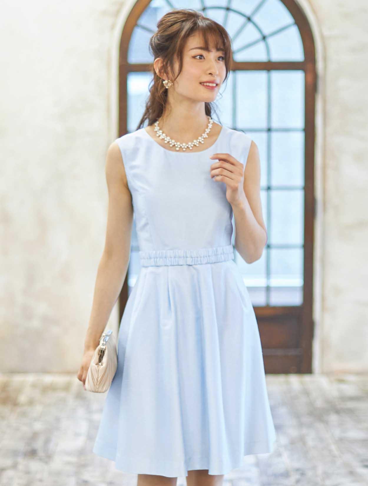 ■キュッと締まったウエストとふんわり広がるスカートのメリハリあるシルエットが、スタイルを良く見せてくれます。