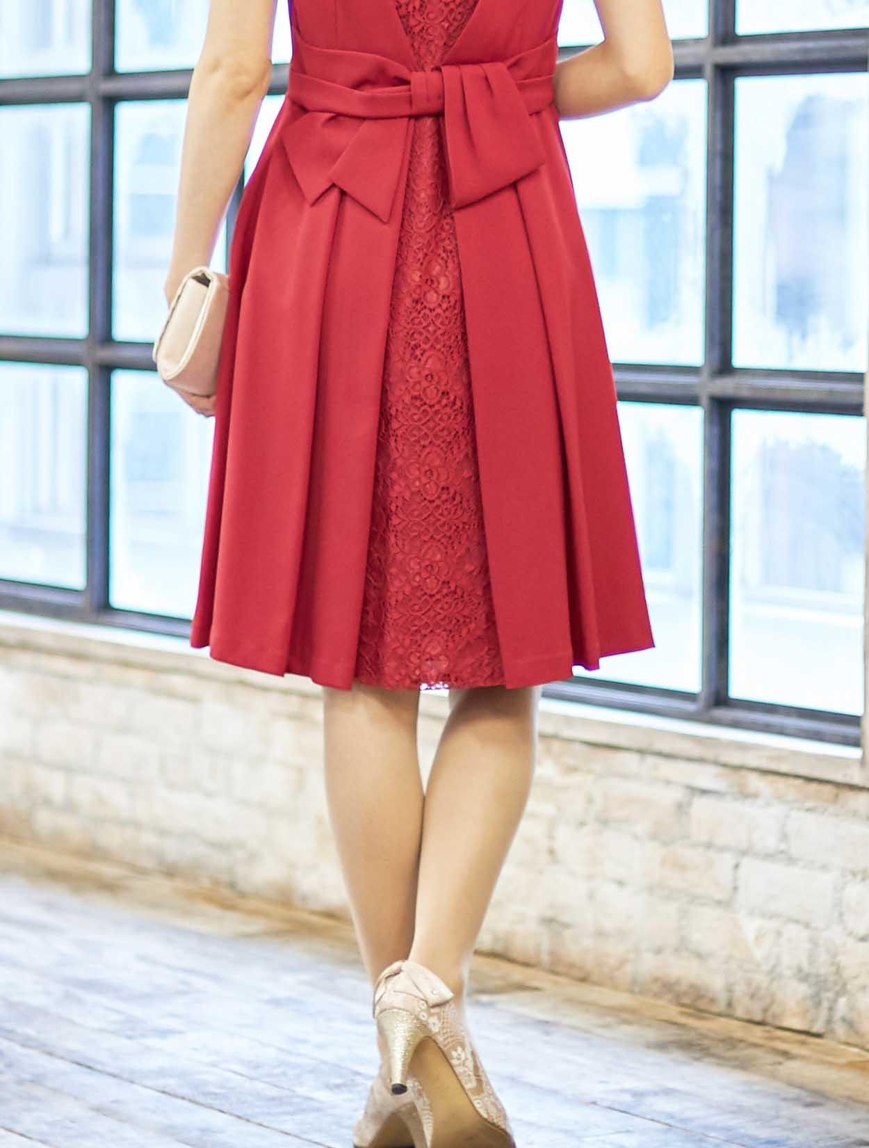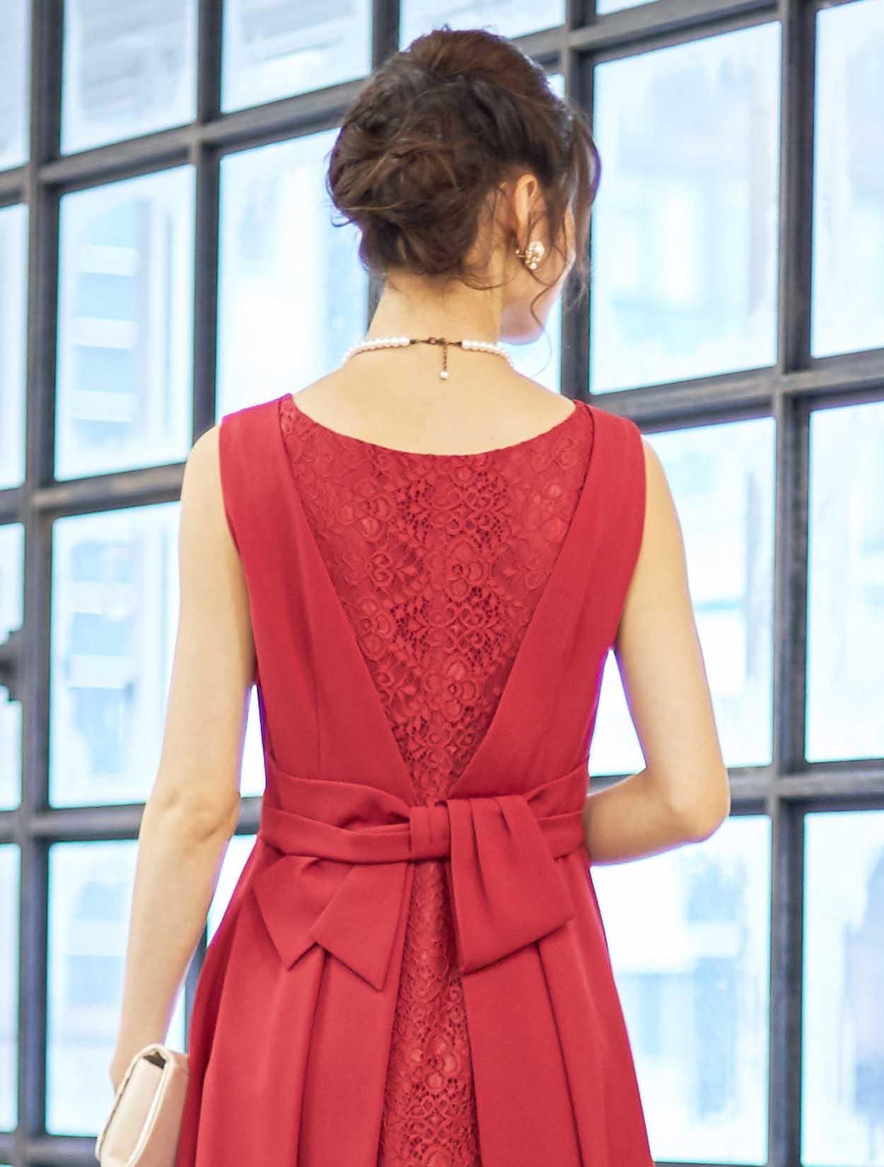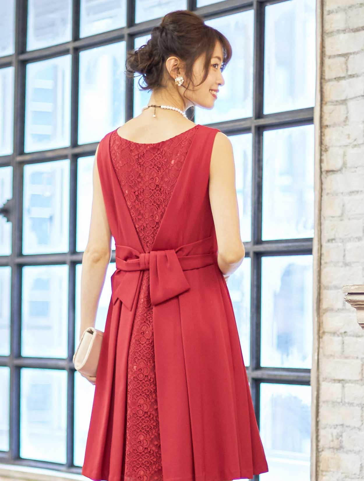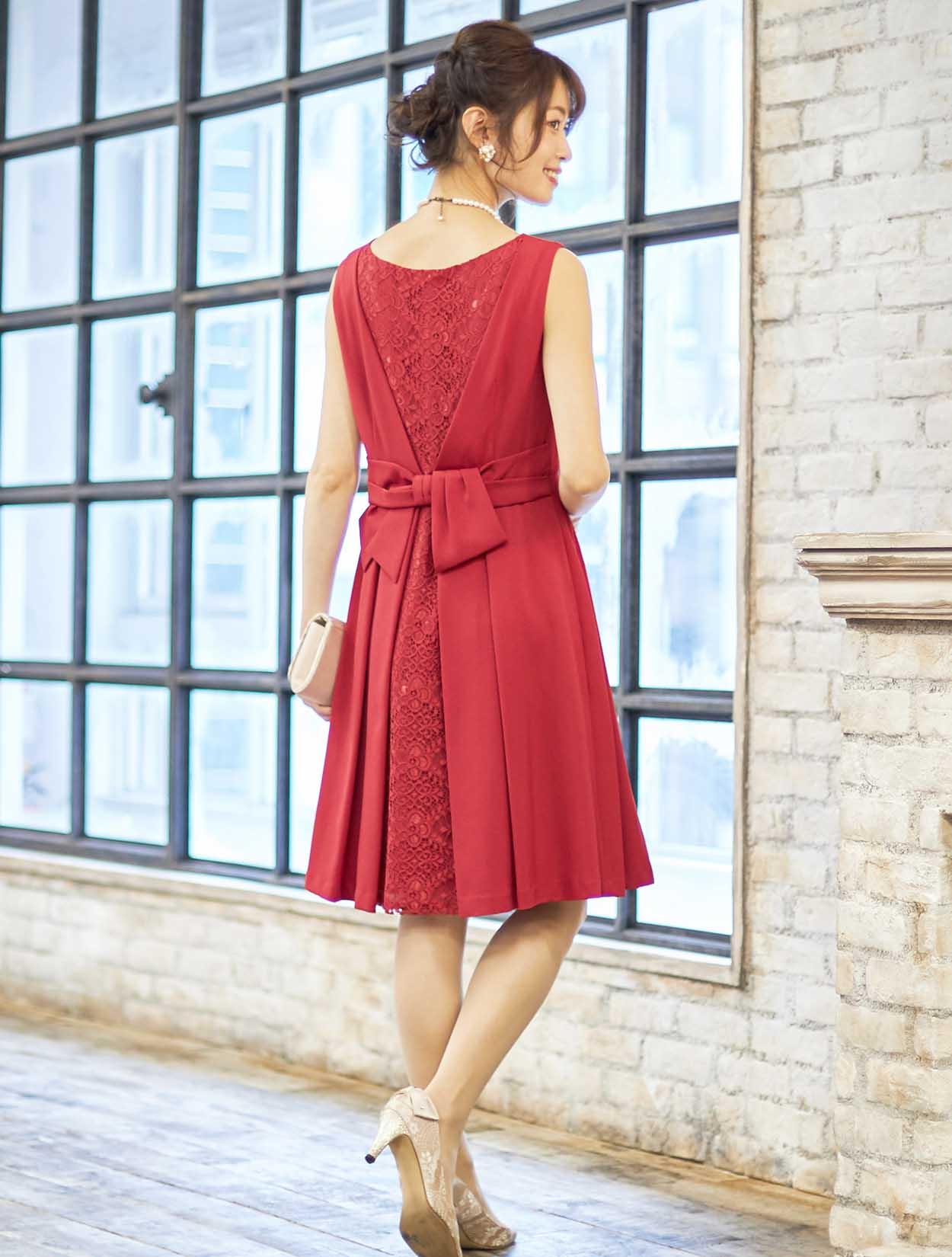 ■レース×リボンをあしらったバックスタイルがポイントのタックドレス。