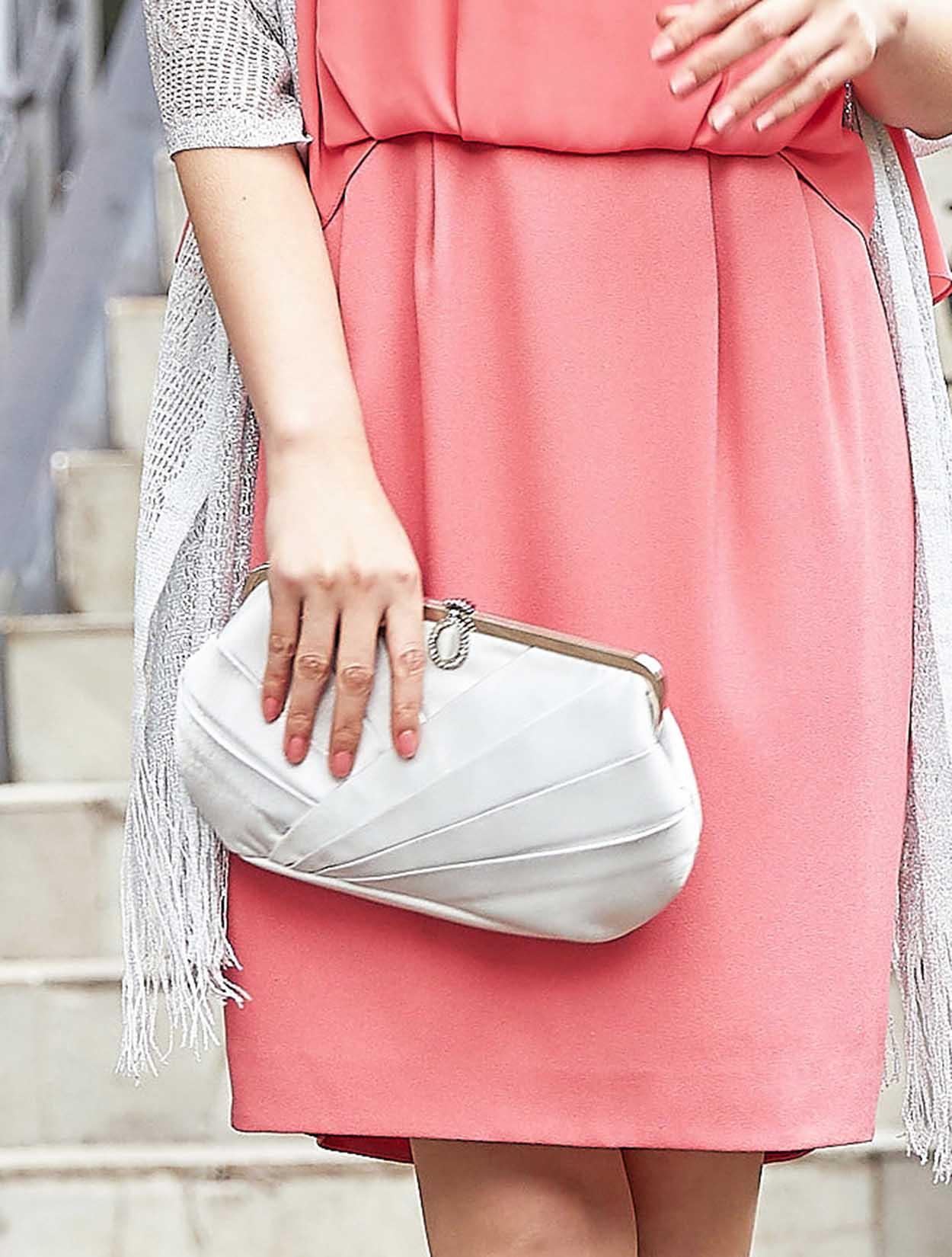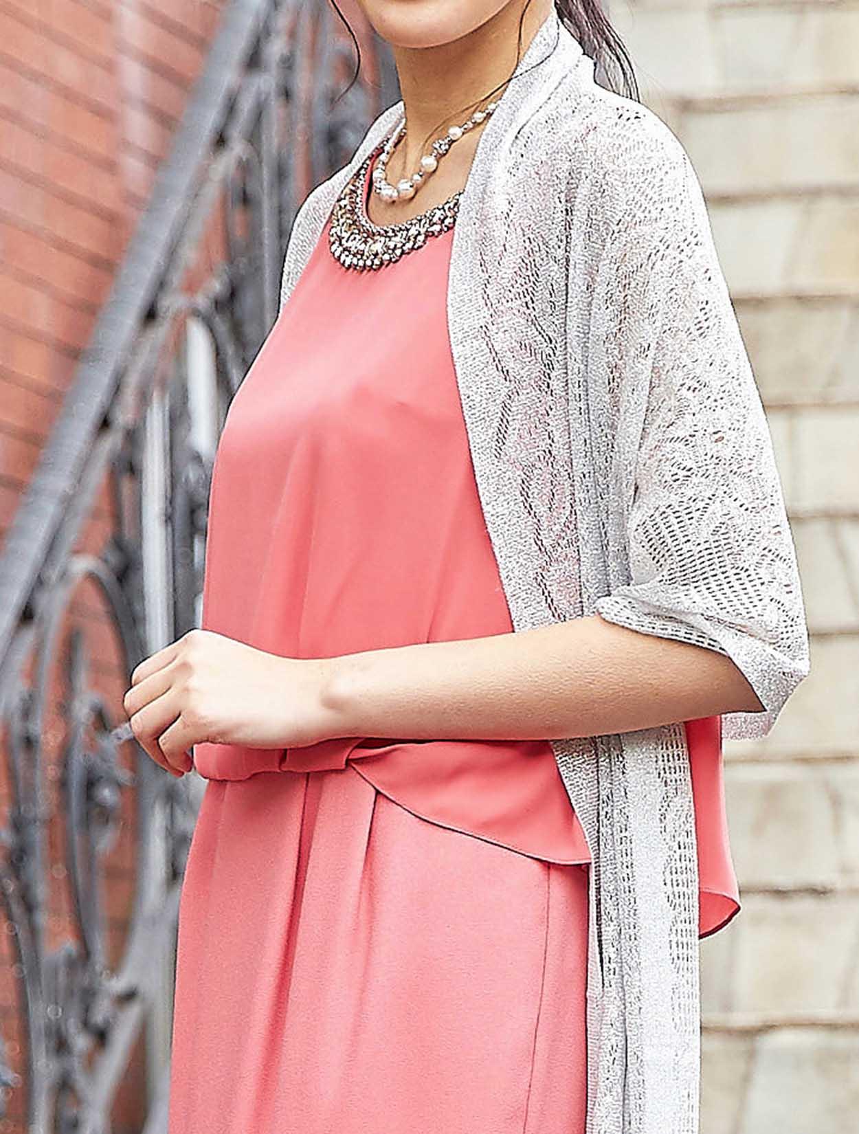 ■コーラル系のピンクにシルバーの小物コーディネートで爽やかな印象に見せてくれます。