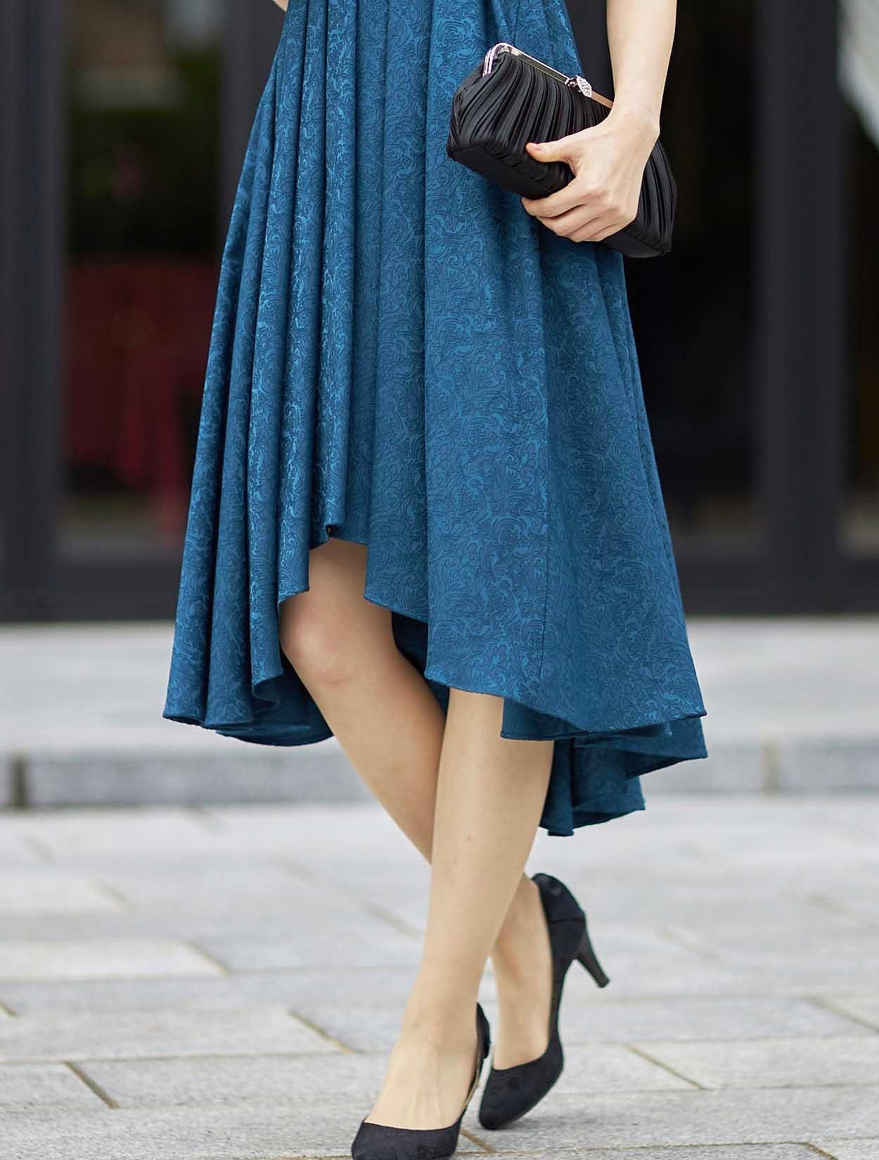 ■スカートは着丈の前と後ろで長さの違うフィッシュテールのデザインがポイントとなる人気のロング丈です。
