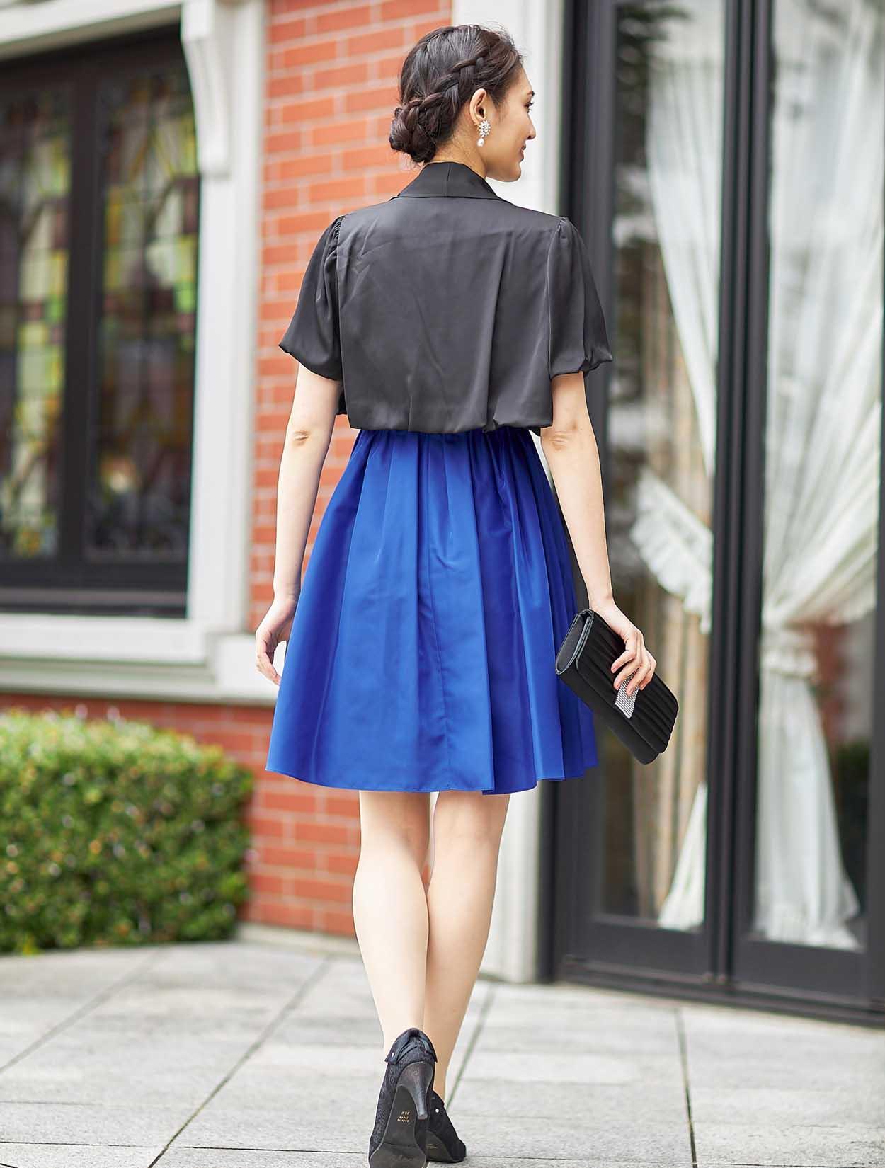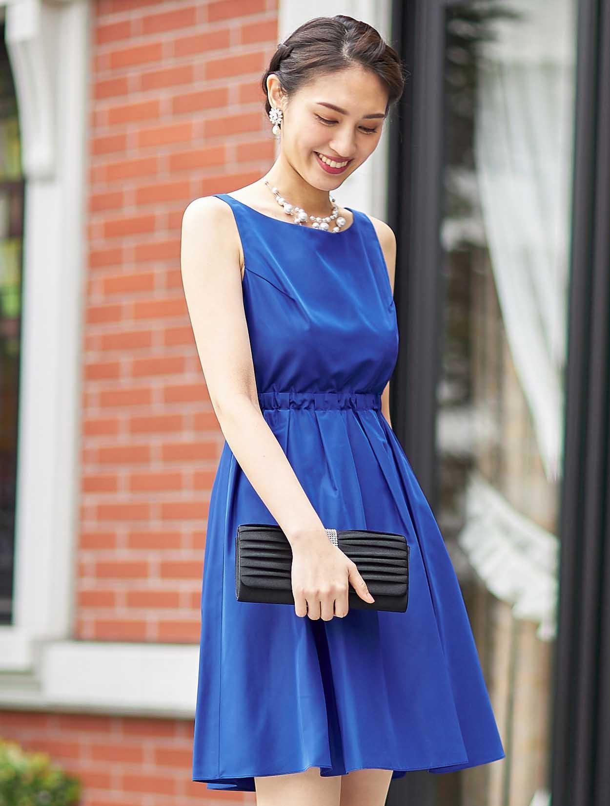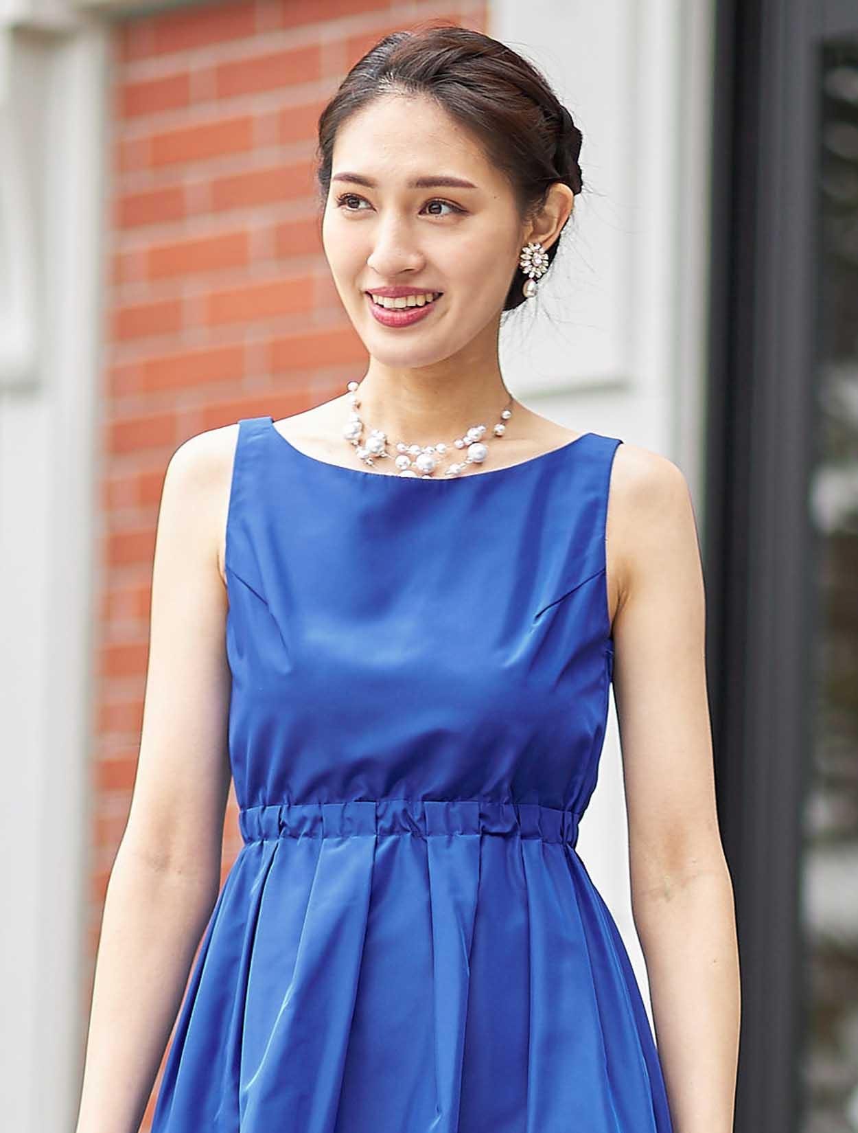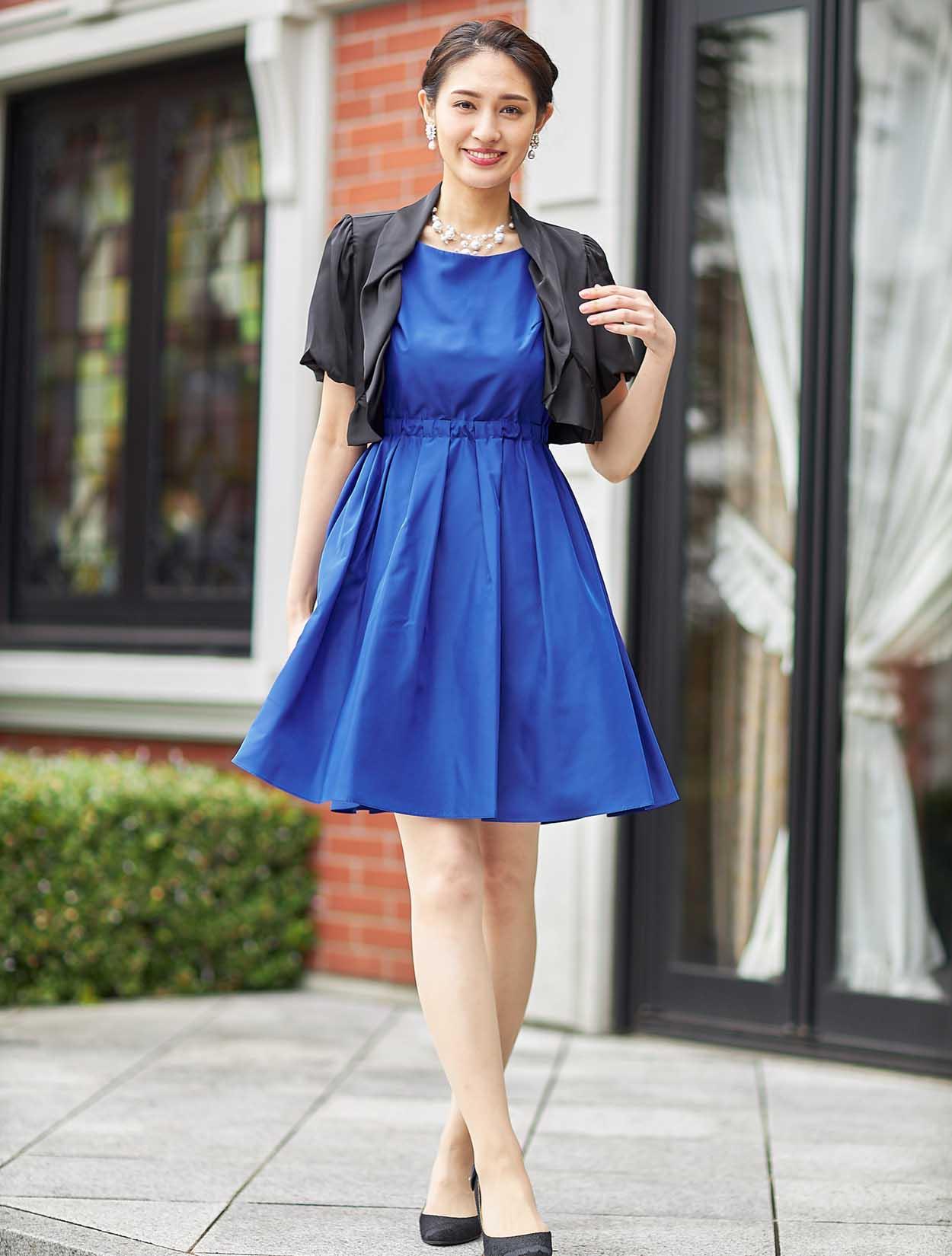 ■ビビットなブルーのカラーが目を惹く華やかなドレスは、顔色も明るく見せてくれます。