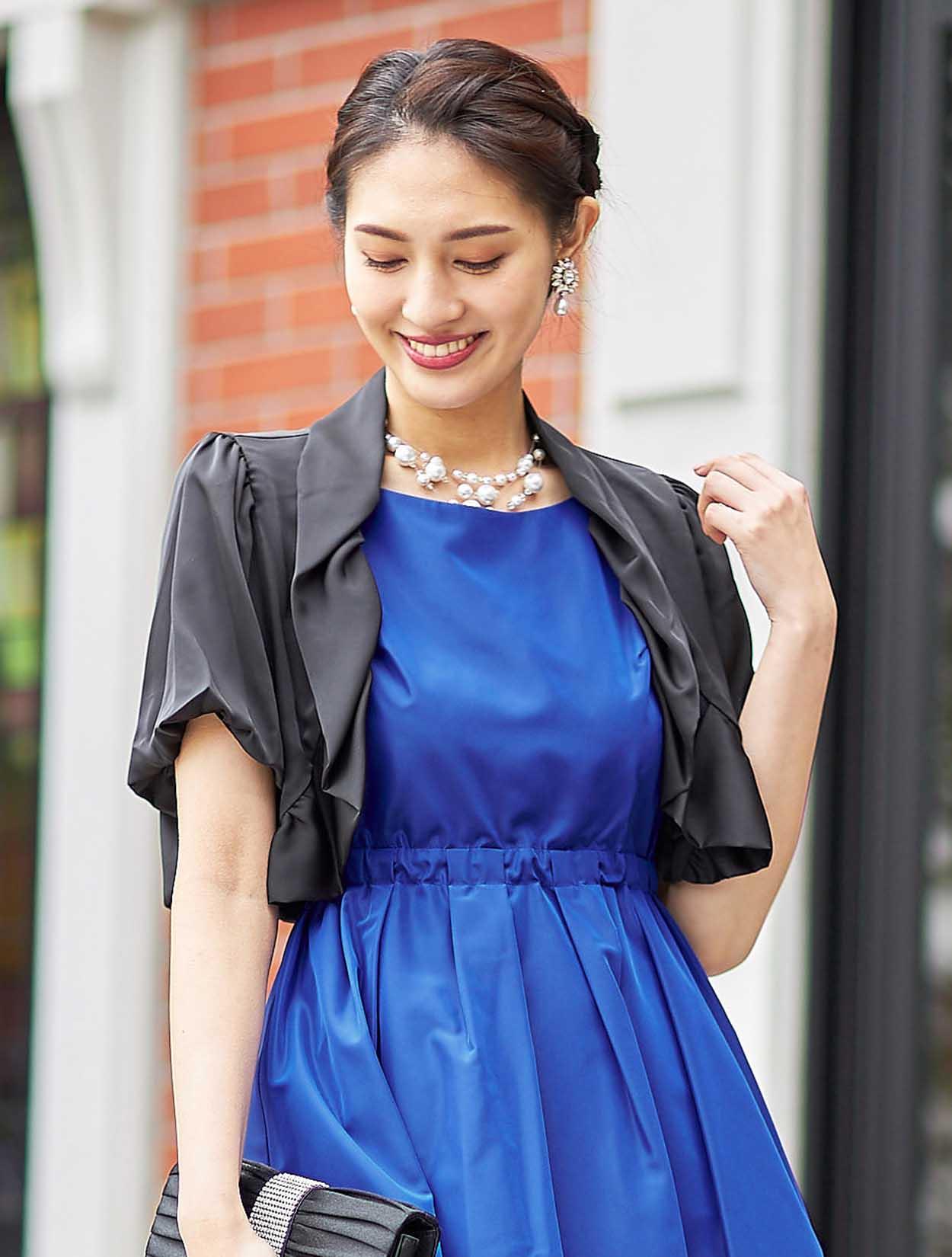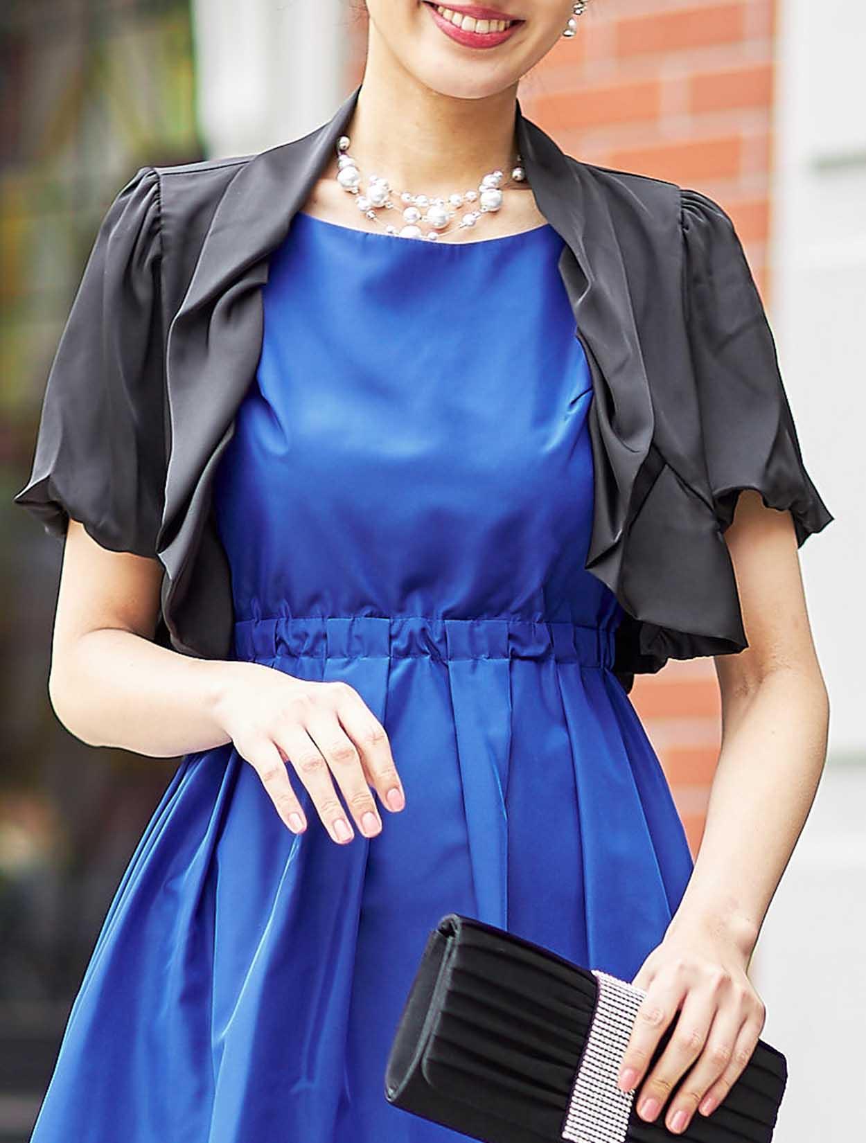 ■サテンのジャケットボレロがきちんと感とプラスしたコーディネートです。