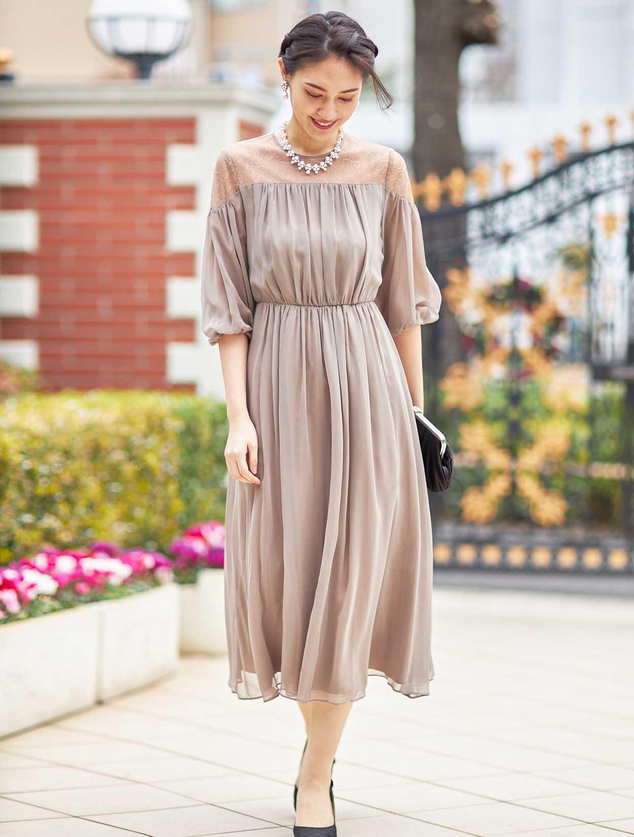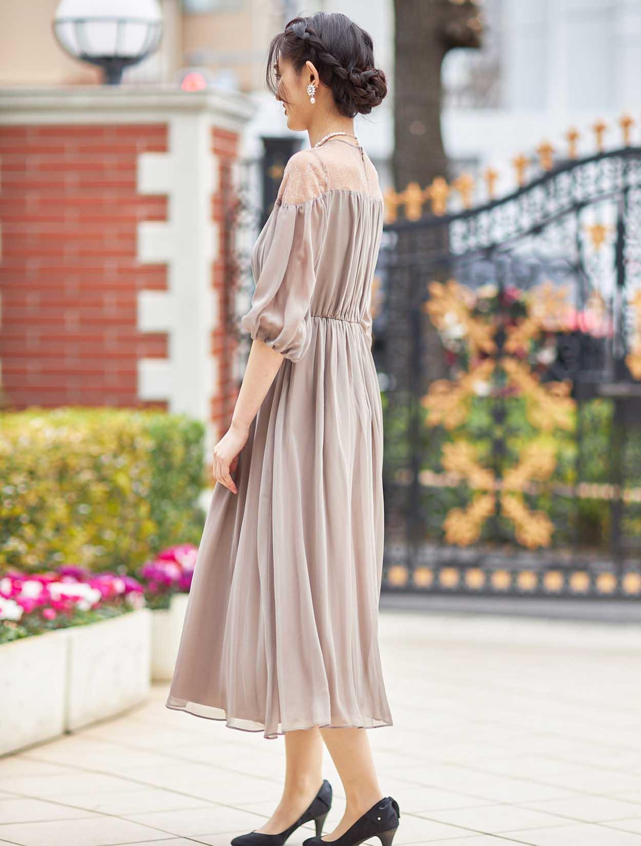 | A4. | 長めのネックレスも良く似合うドレスです。セットでは短いネックレスですが、ネックレスの変更もしくはお手持ちのネックレスをご利用いただくことができます。 |