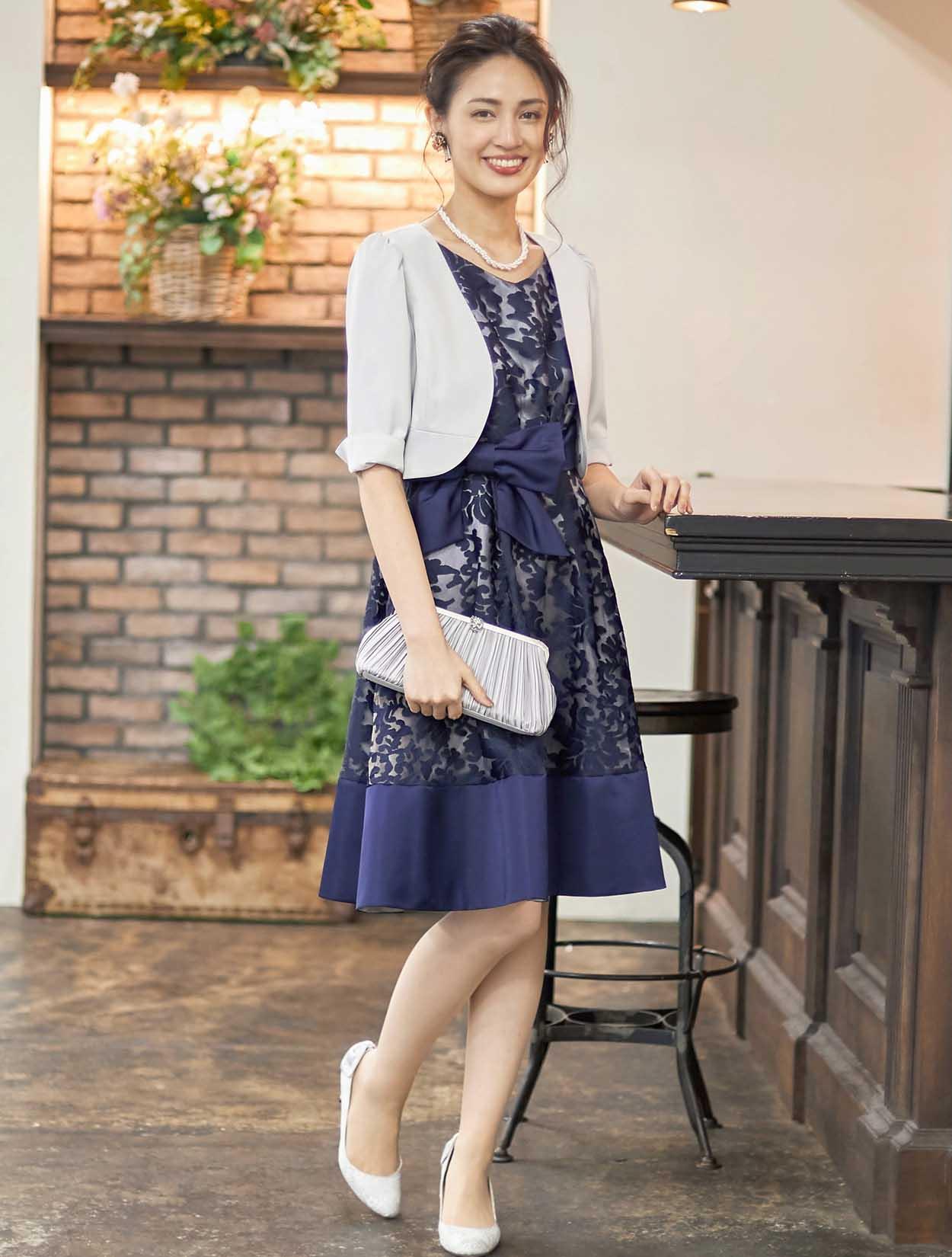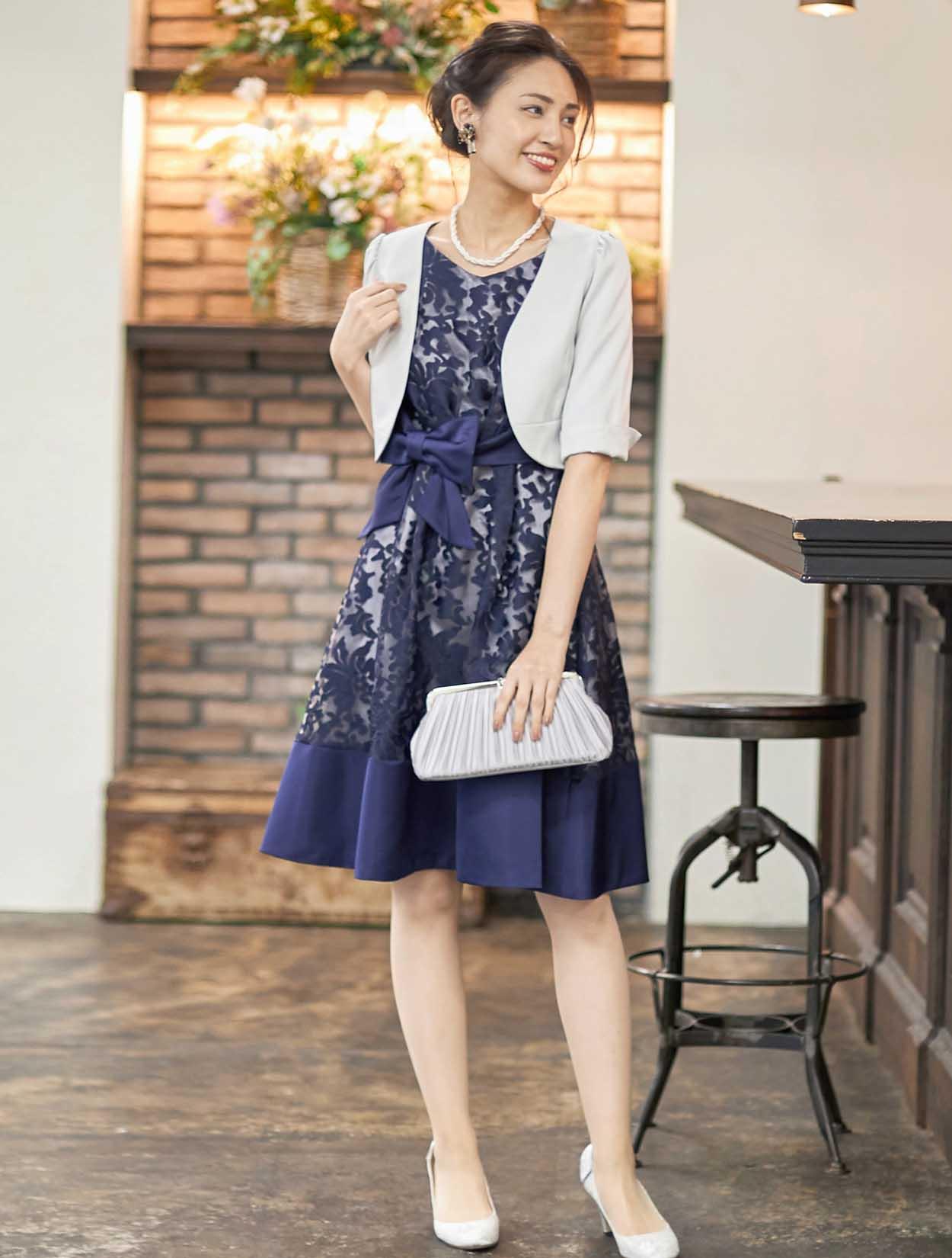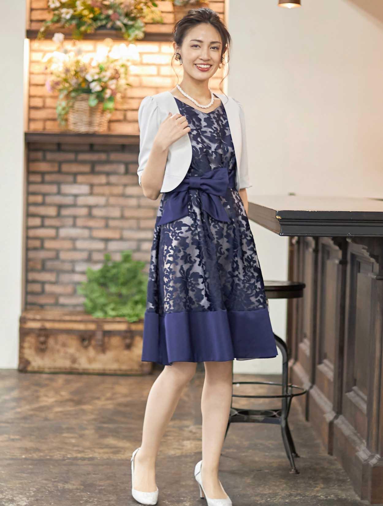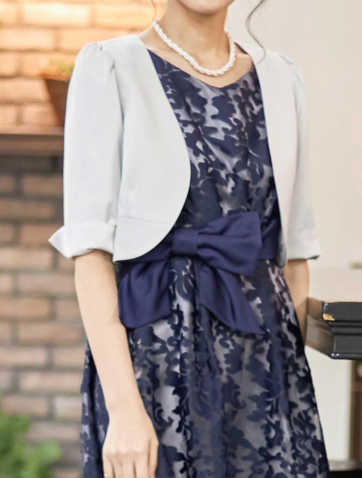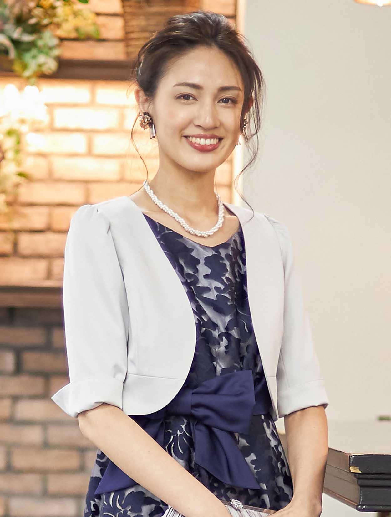 | A1. | はい、色も柄も華やかなドレスですので、ブラックのボレロでも合うと思います。 |