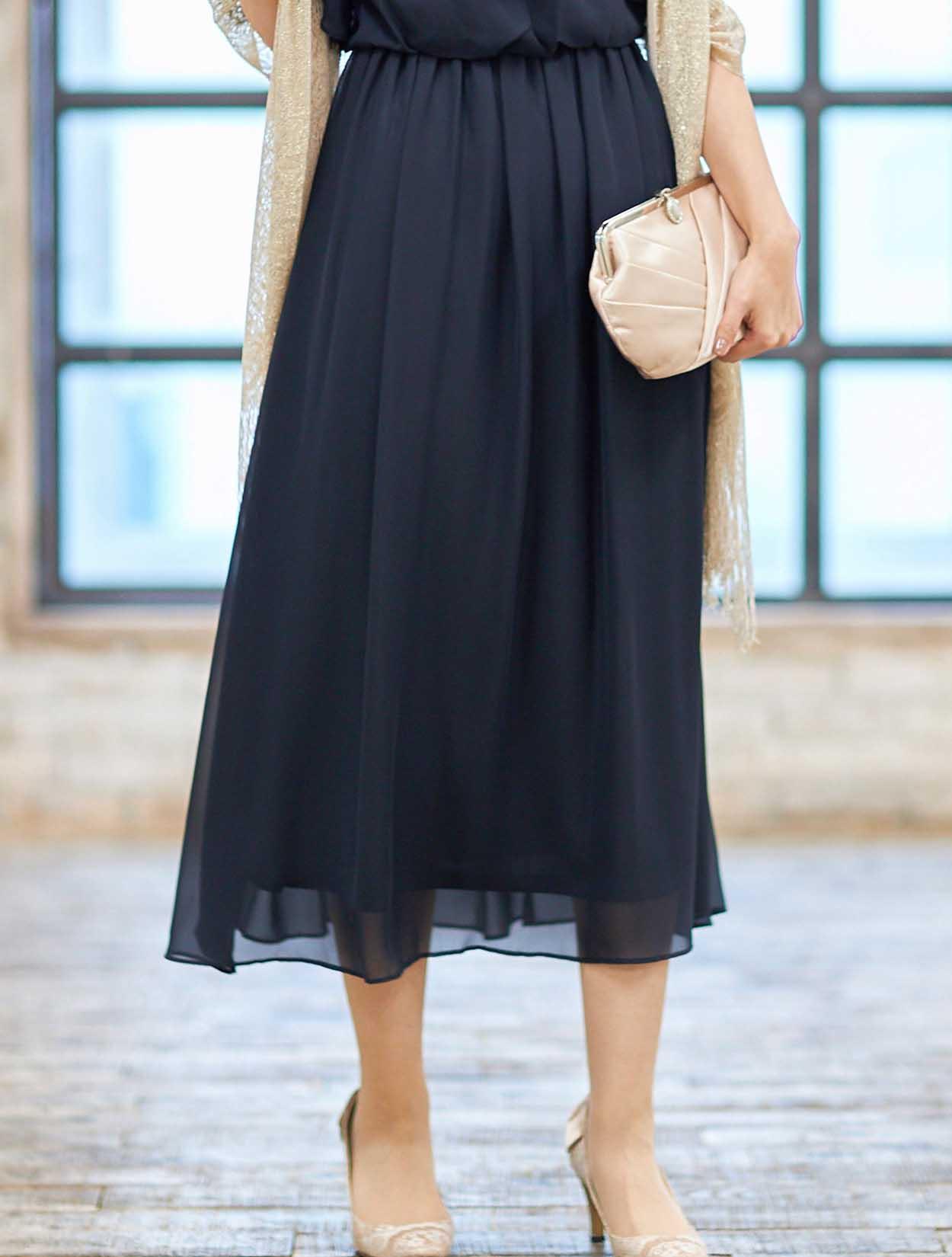 ■軽さのあるシフォン素材で、歩く度に裾がひらひらと揺れ、エレガントな印象に。