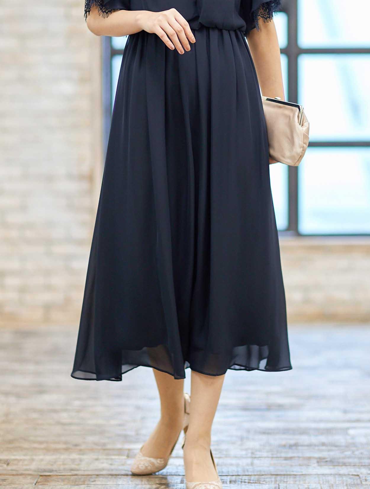 ■軽さのあるシフォン素材で、歩く度に裾がひらひらと揺れ、エレガントな印象です。