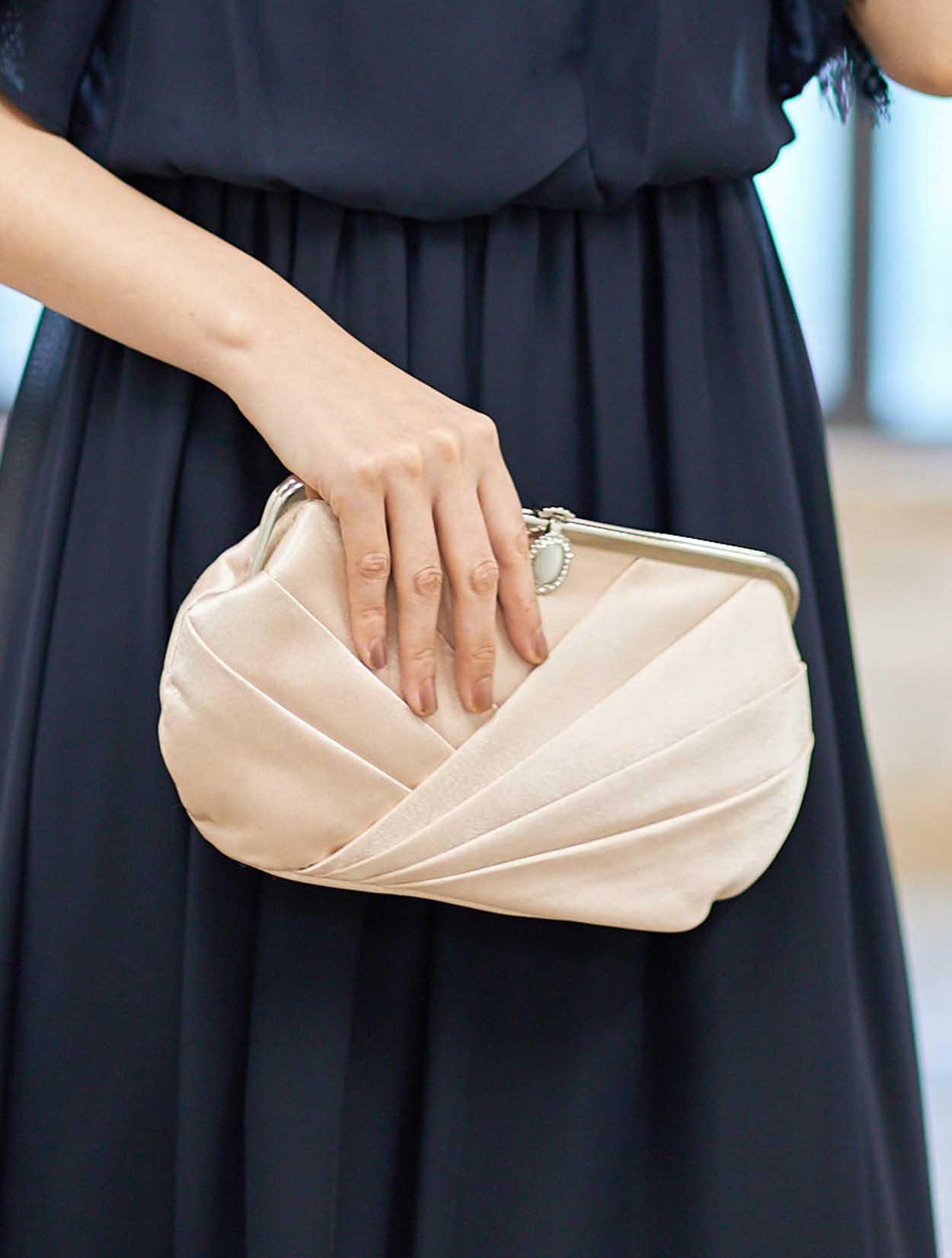 ■光沢のあるベージュのバッグが上品なコーディネートは、ご親族様にもおすすめです。
