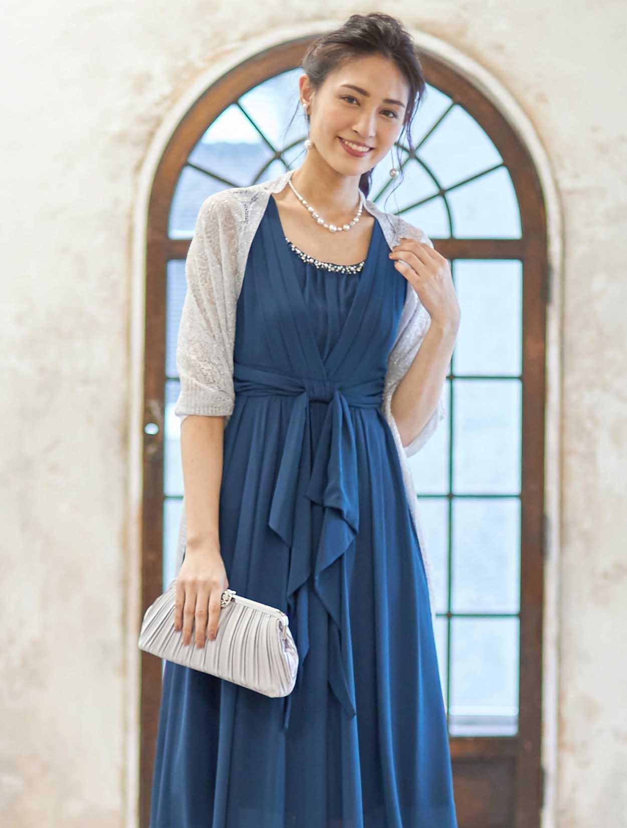 ■やや青みがかった深いグリーンの色味は定番カラーのネイビー以外で落ち着いたドレスをお探しの方におすすめのカラーです。