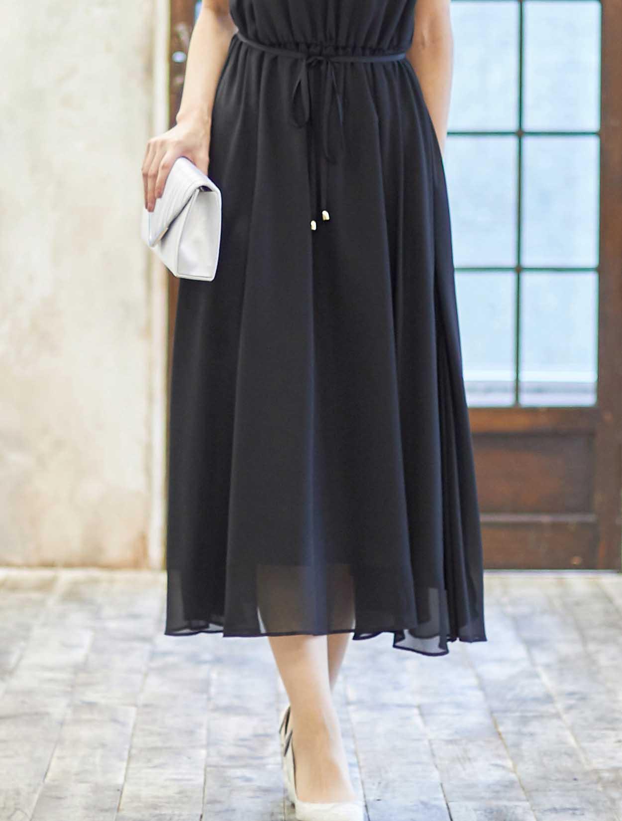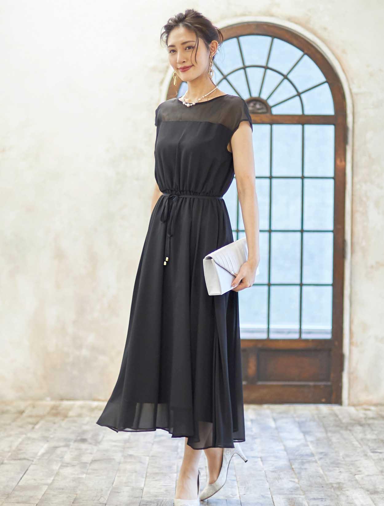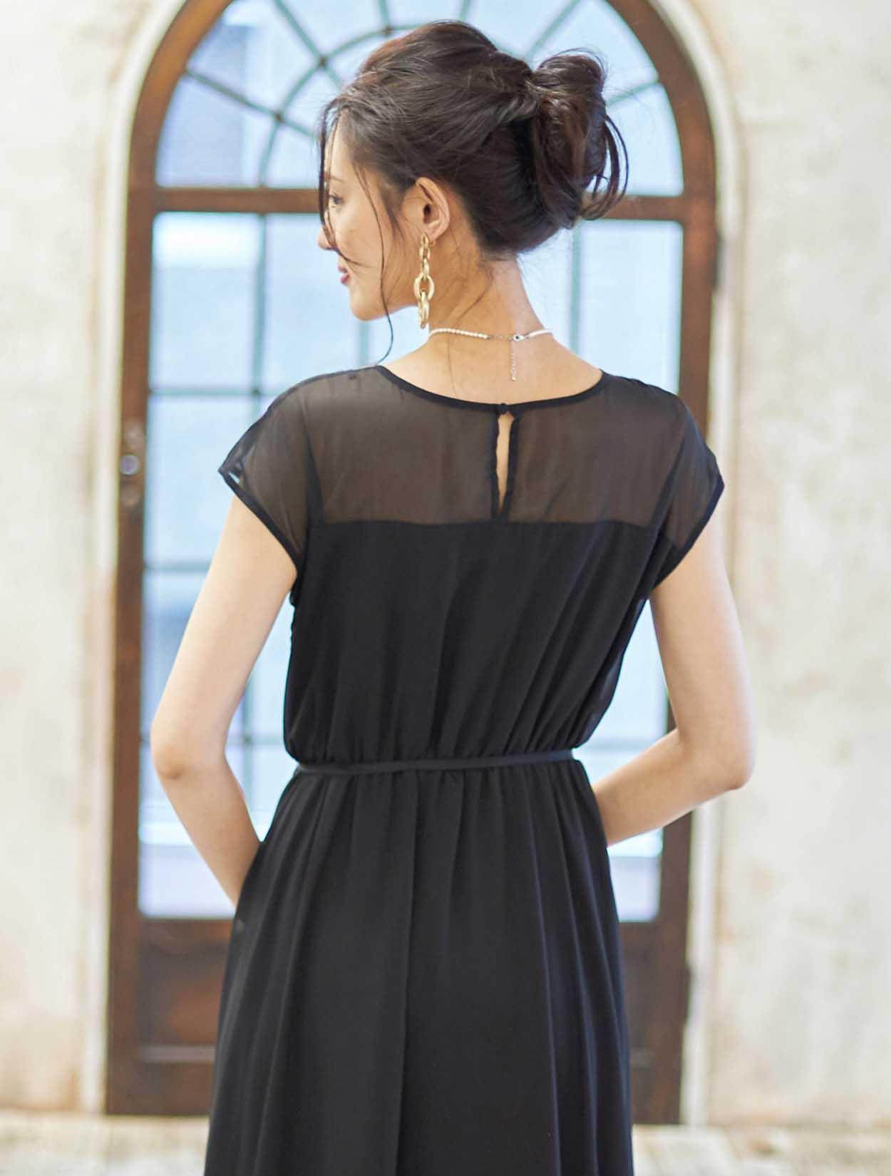 ■ブラックの落ち着いたドレスですが、全体的に透け感があるので重たい印象にならずにご着用頂けます。