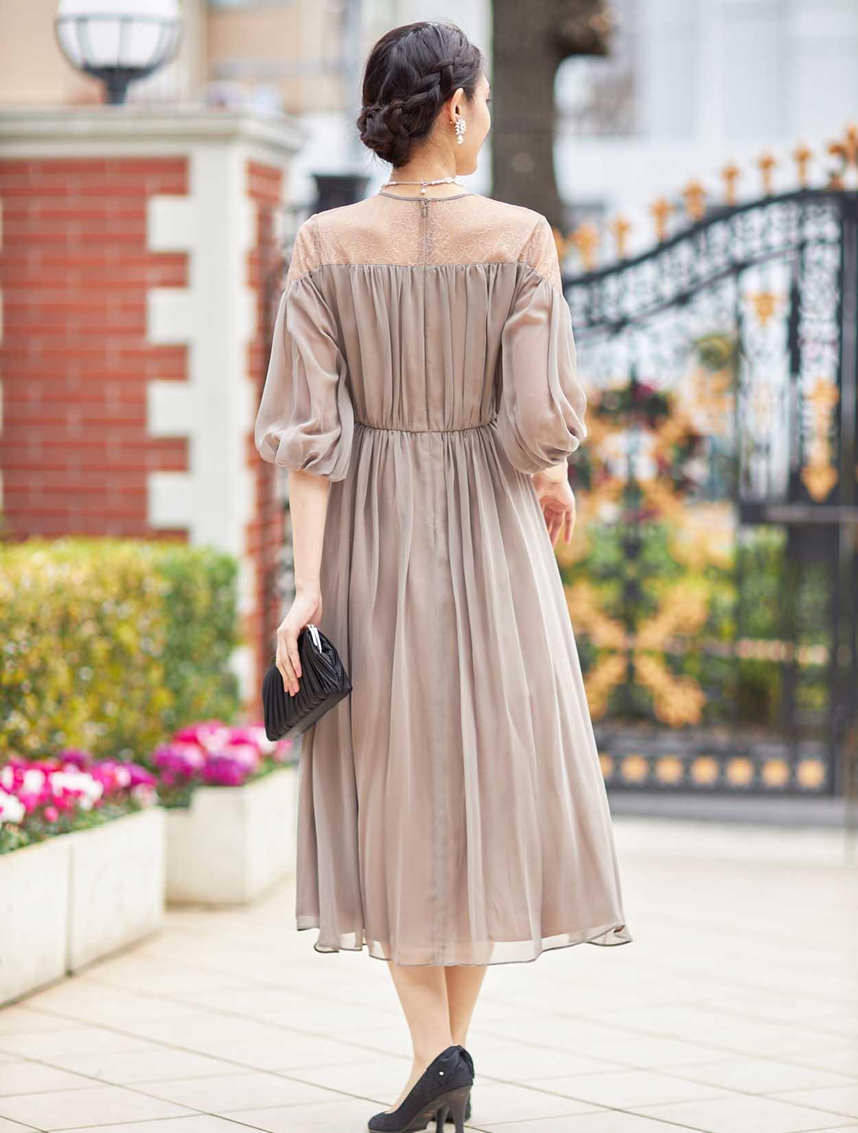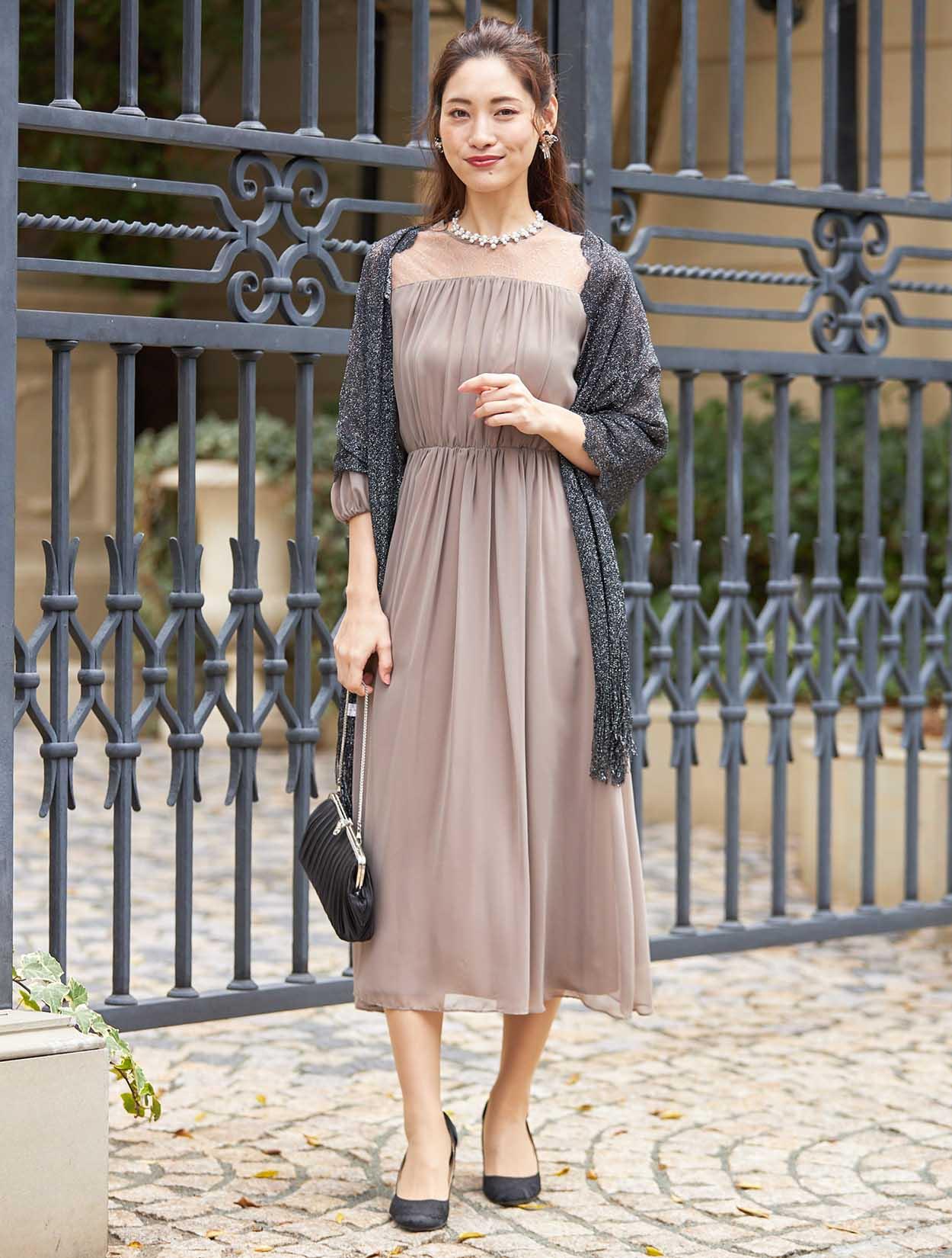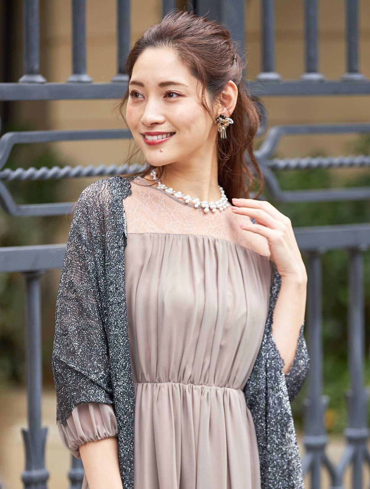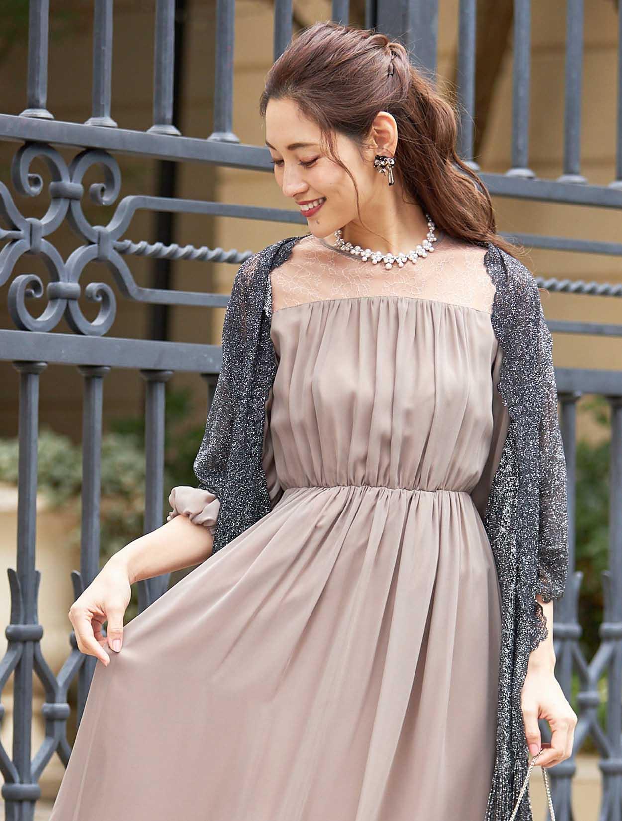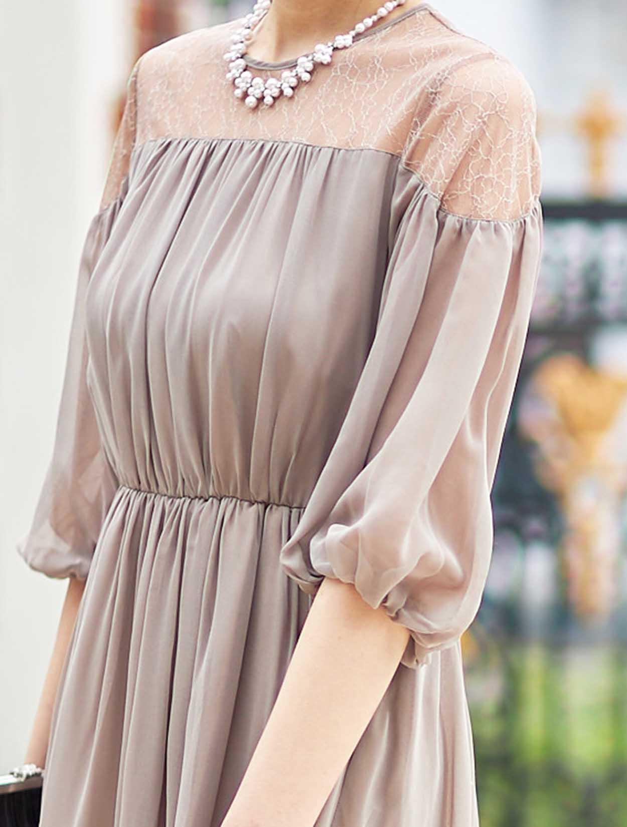 ■エレガントなレースを使用したロングドレス。