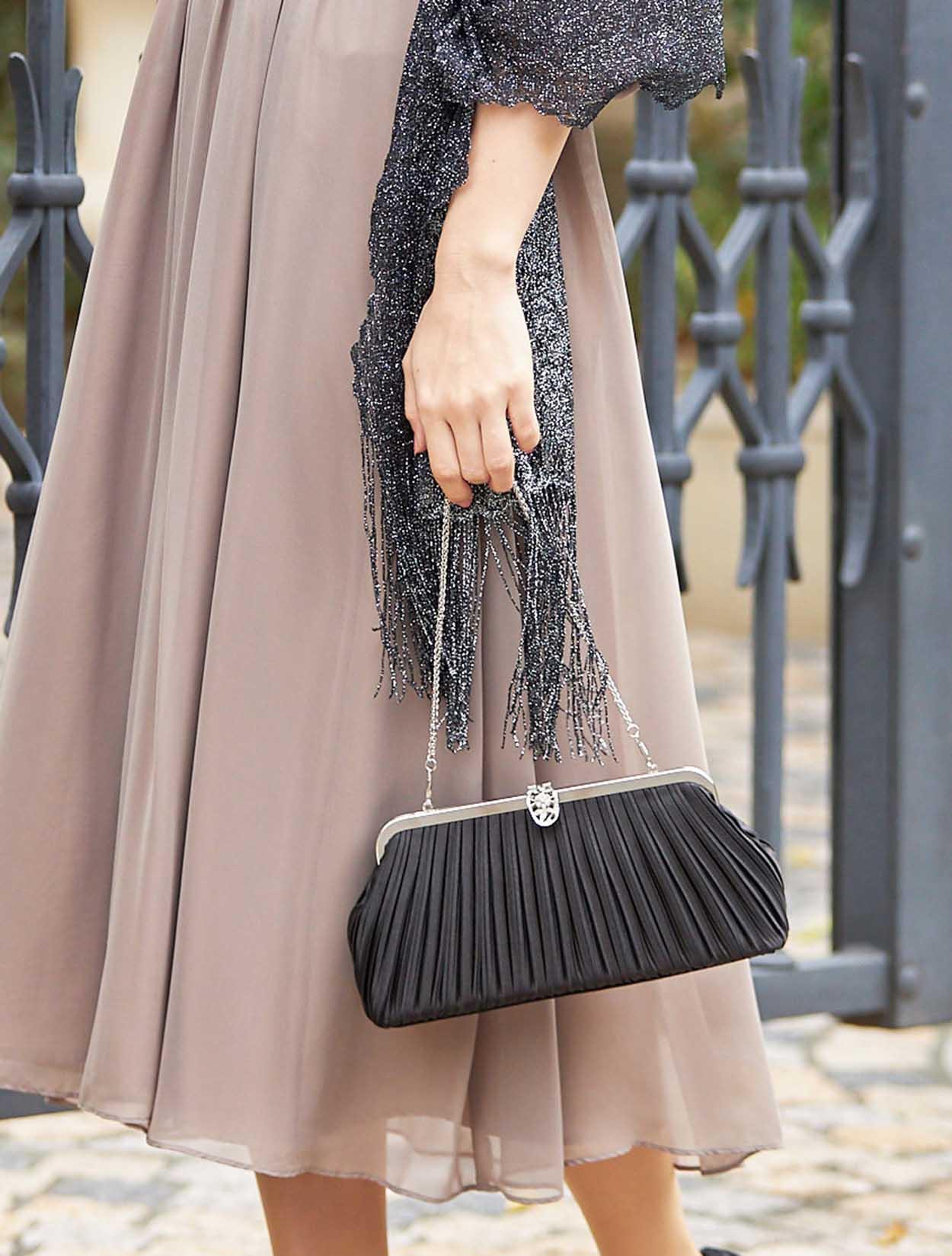 ■アクセントにブラック系の小物をコーディネートです。小物の色にブラック系にスッキリとした印象に。