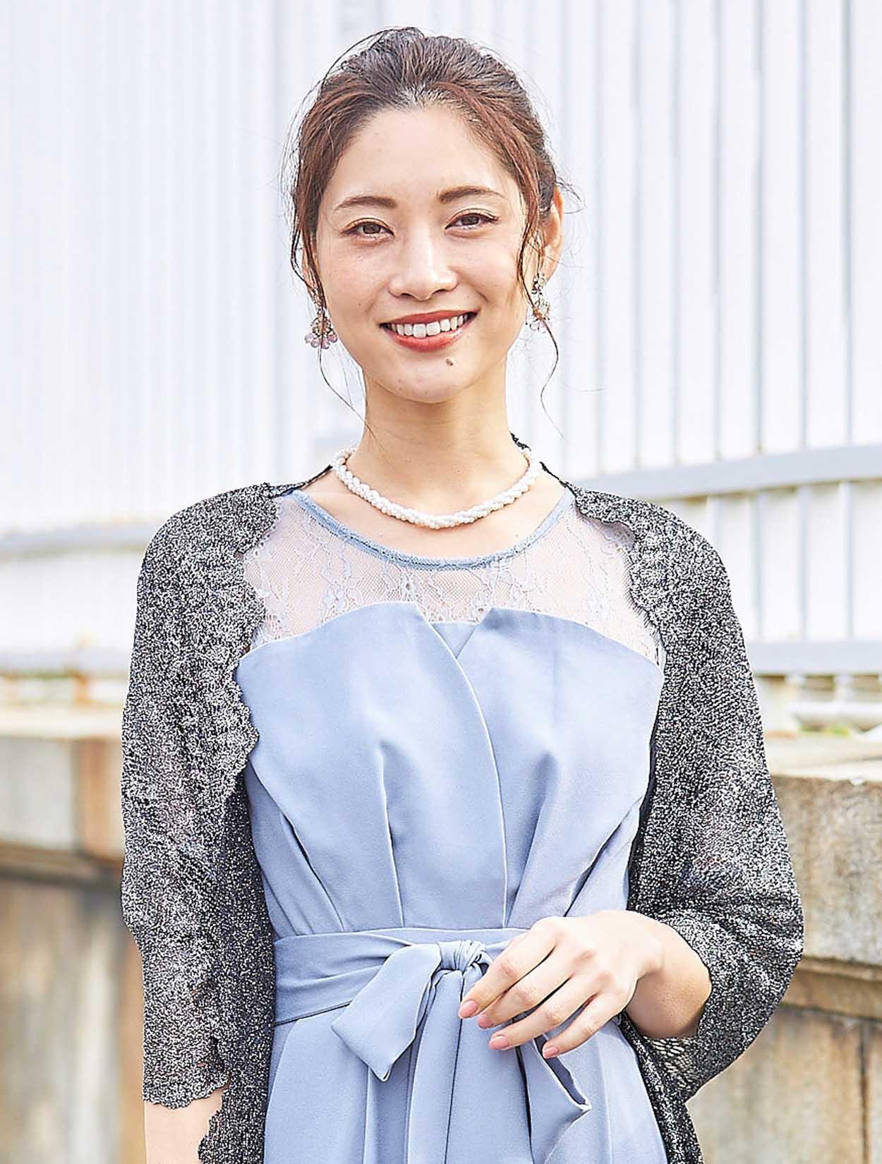 ■袖丈は七分袖の袖ありドレス。結婚式や披露宴でも羽織無しでご着用いただけます。