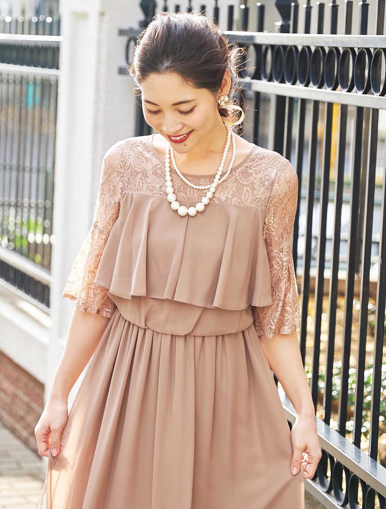 ■大人上品なブラウンのドレス。落ち着いた印象ですが、黒やネイビーと違い、他の方と被りづらい色です。
