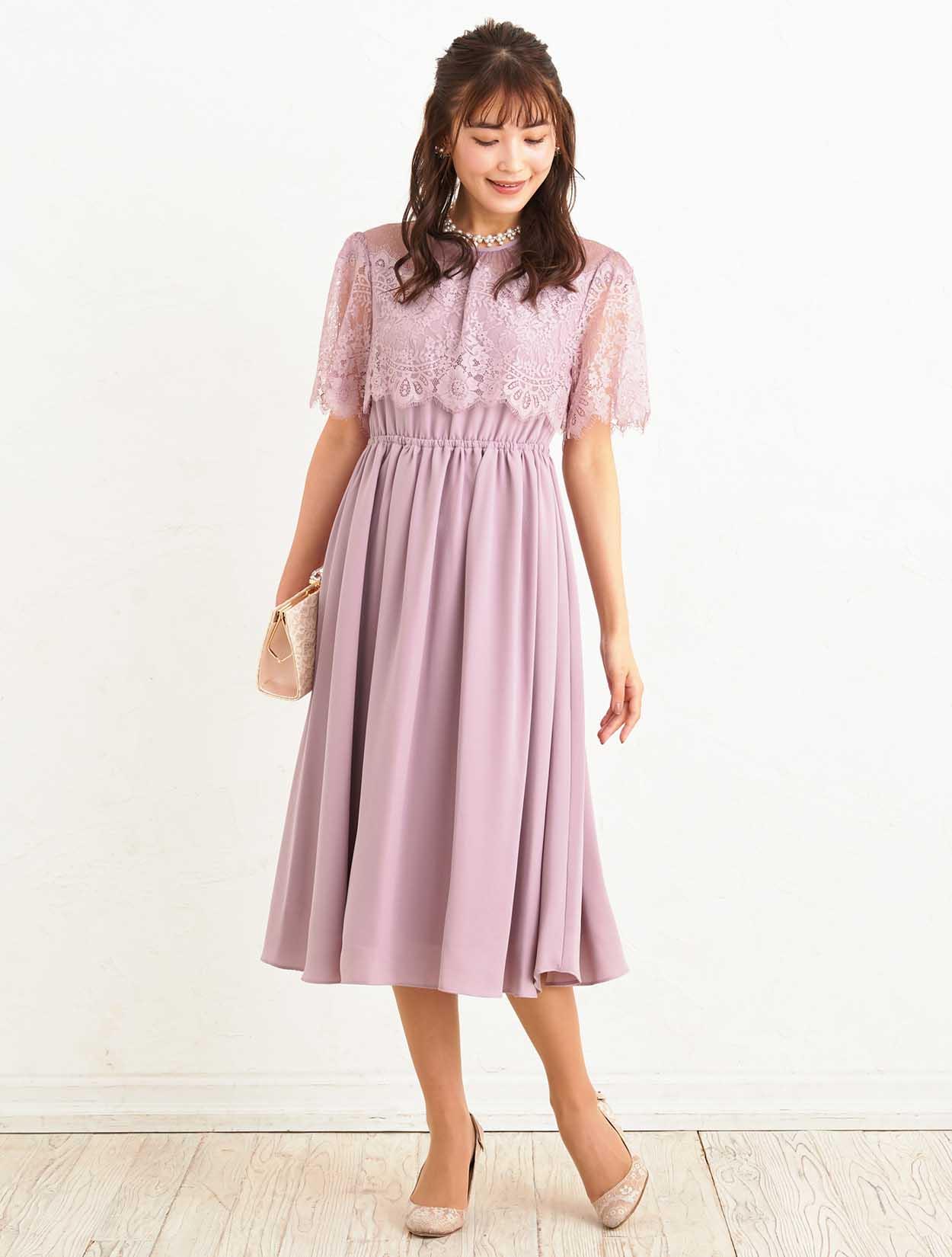 ■ドットチュールとスカラップレースのフェミニンなドレスです。