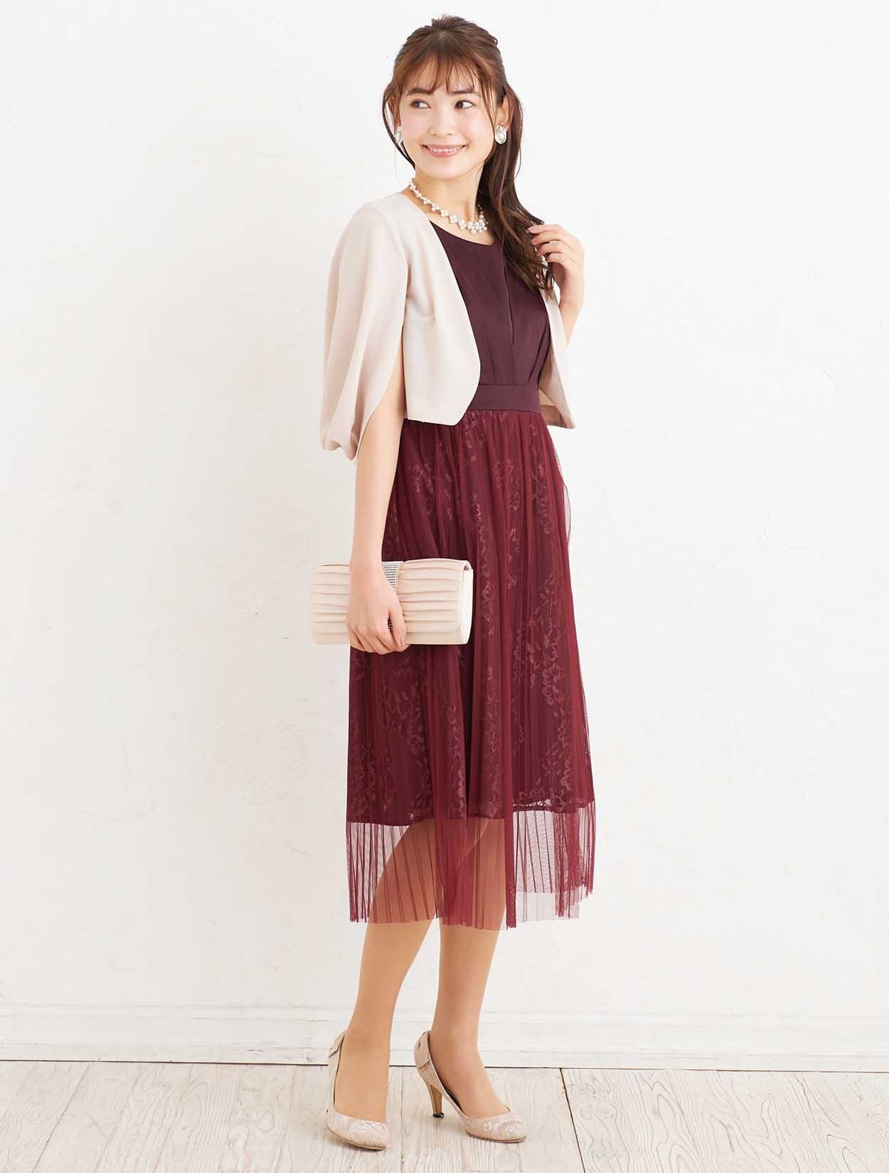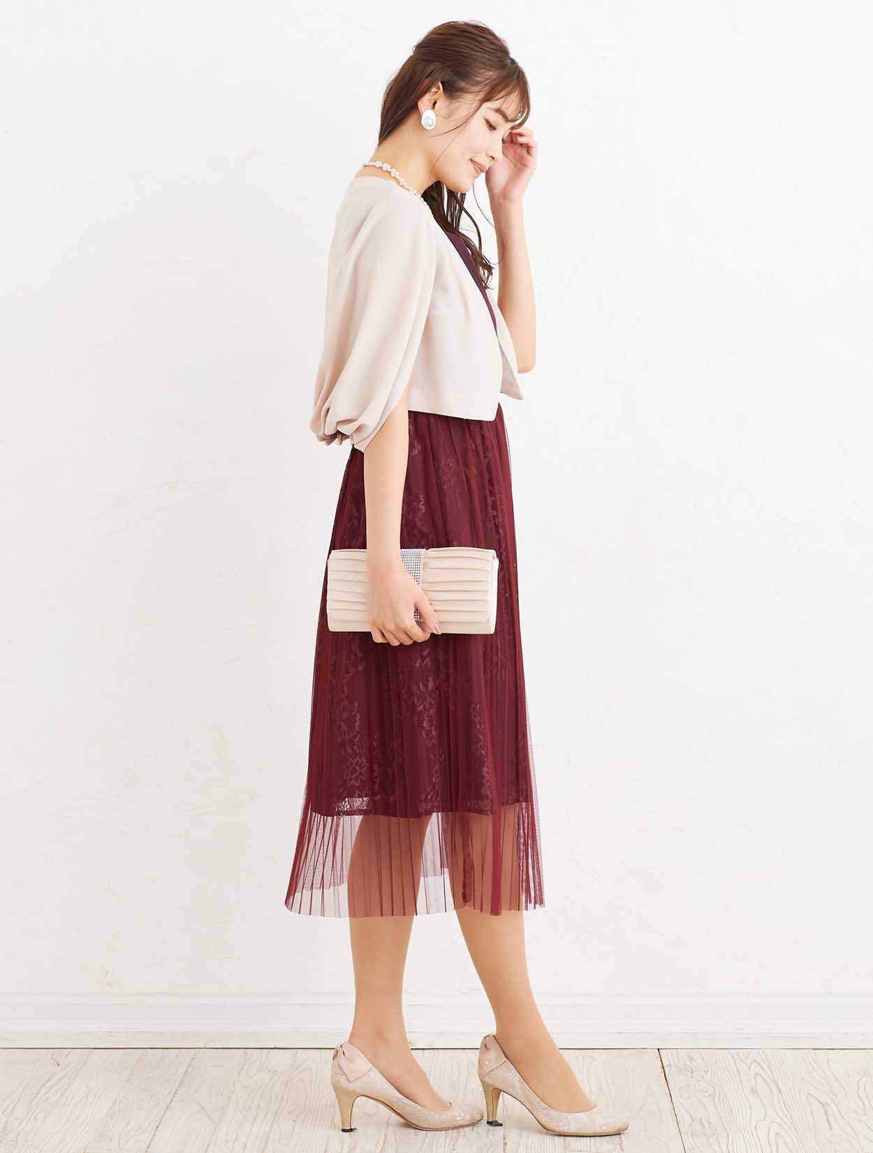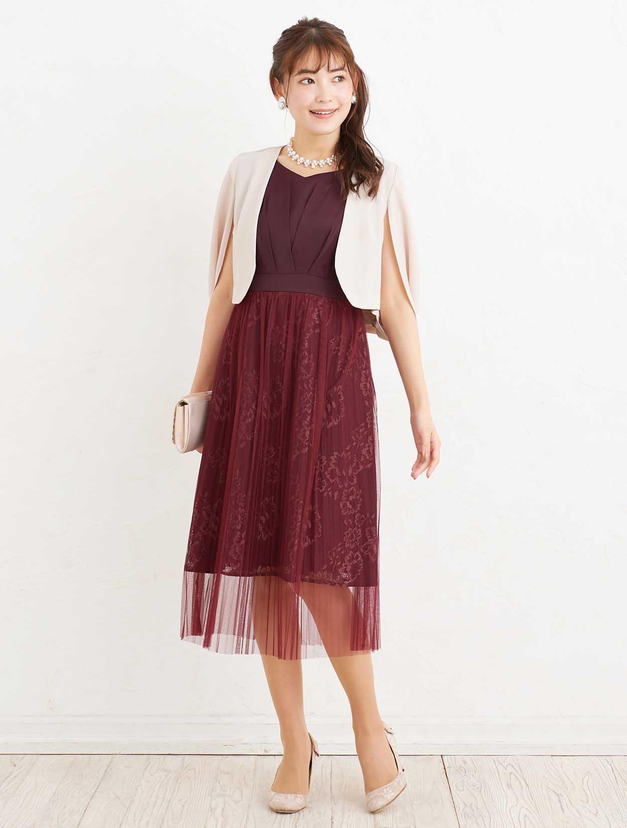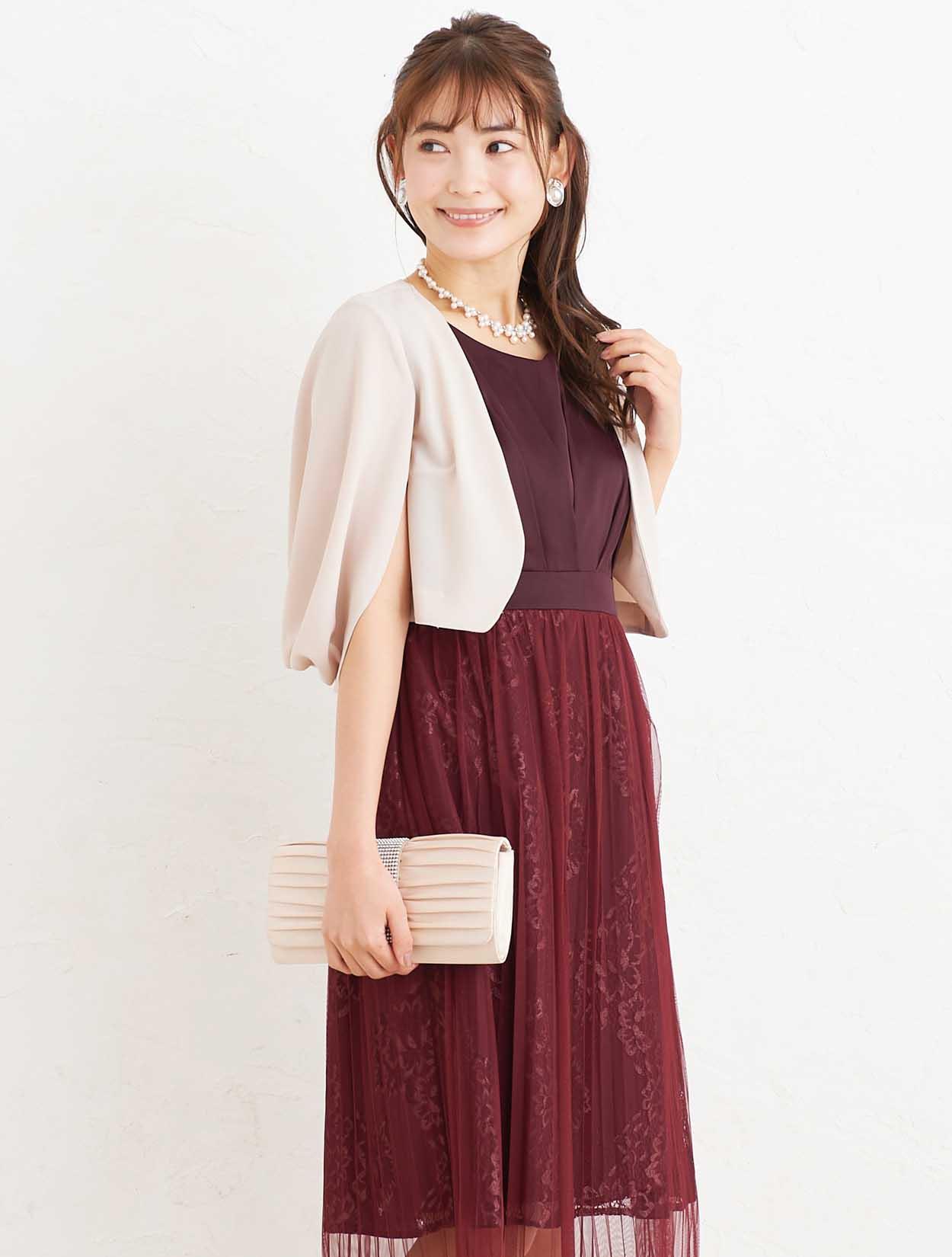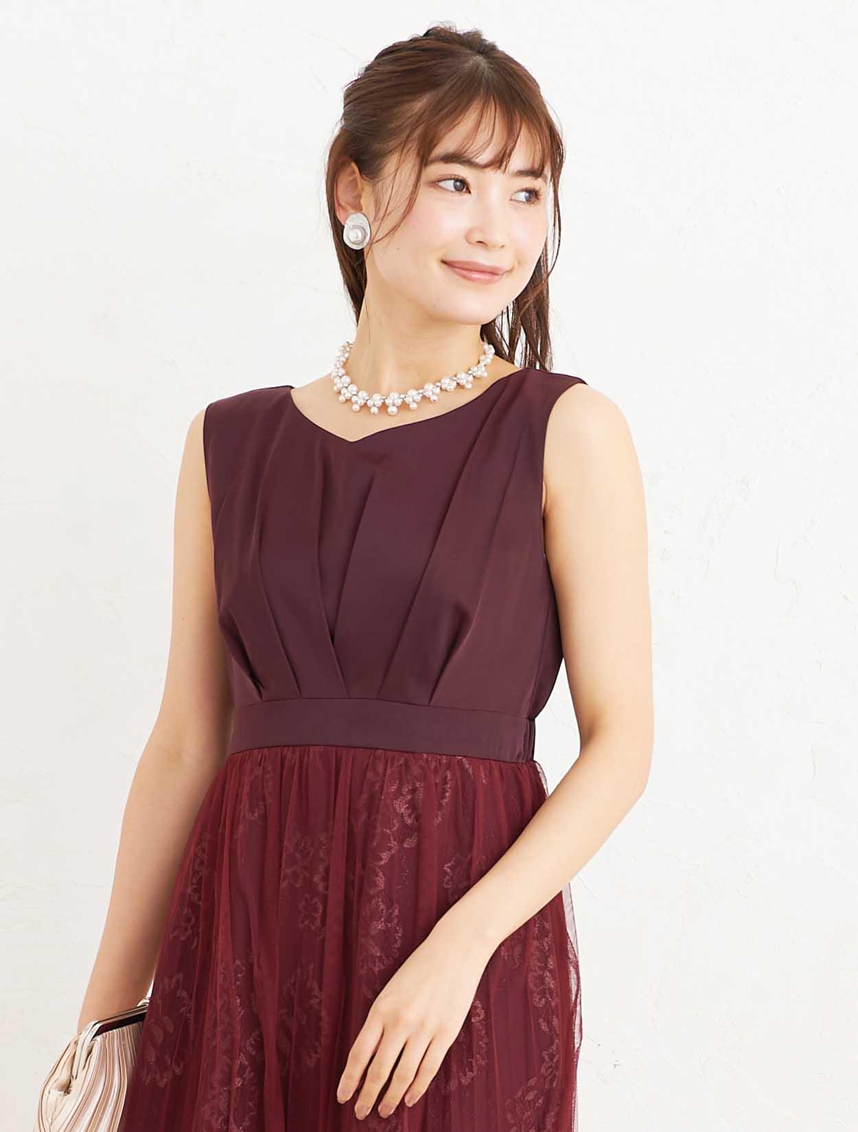 ■肌馴染みのいいワインレッドで、初めて赤に挑戦する方も素敵にご着用できるドレスです。