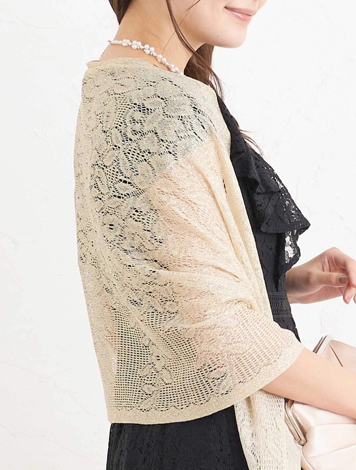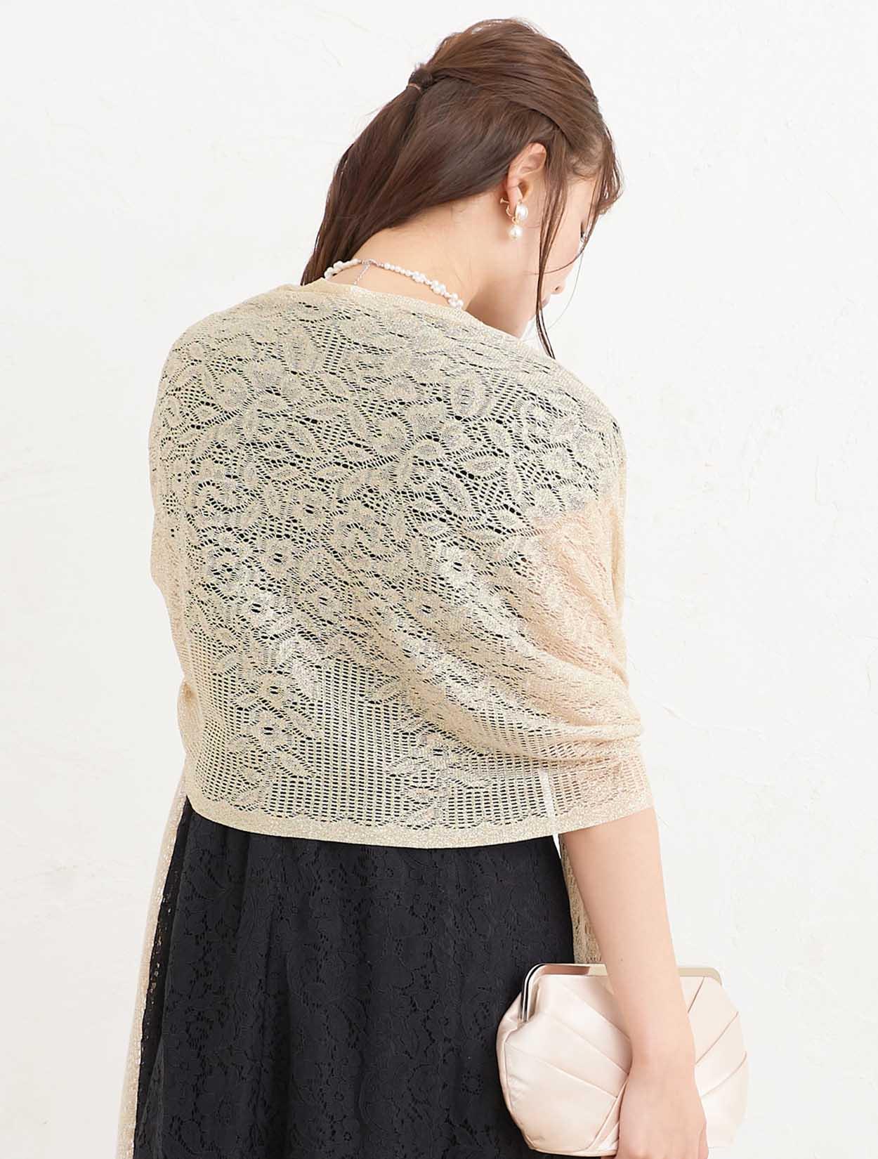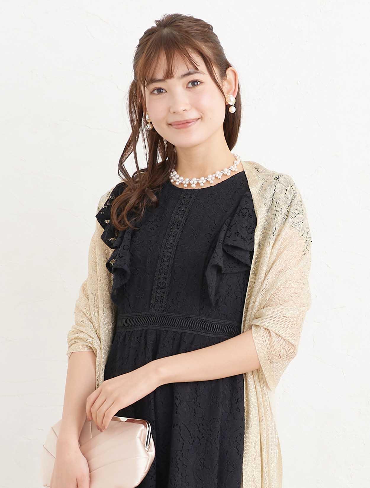 ■ブラックのドレスもゴールドのラメストールでコーディネートすれば華やかさup。