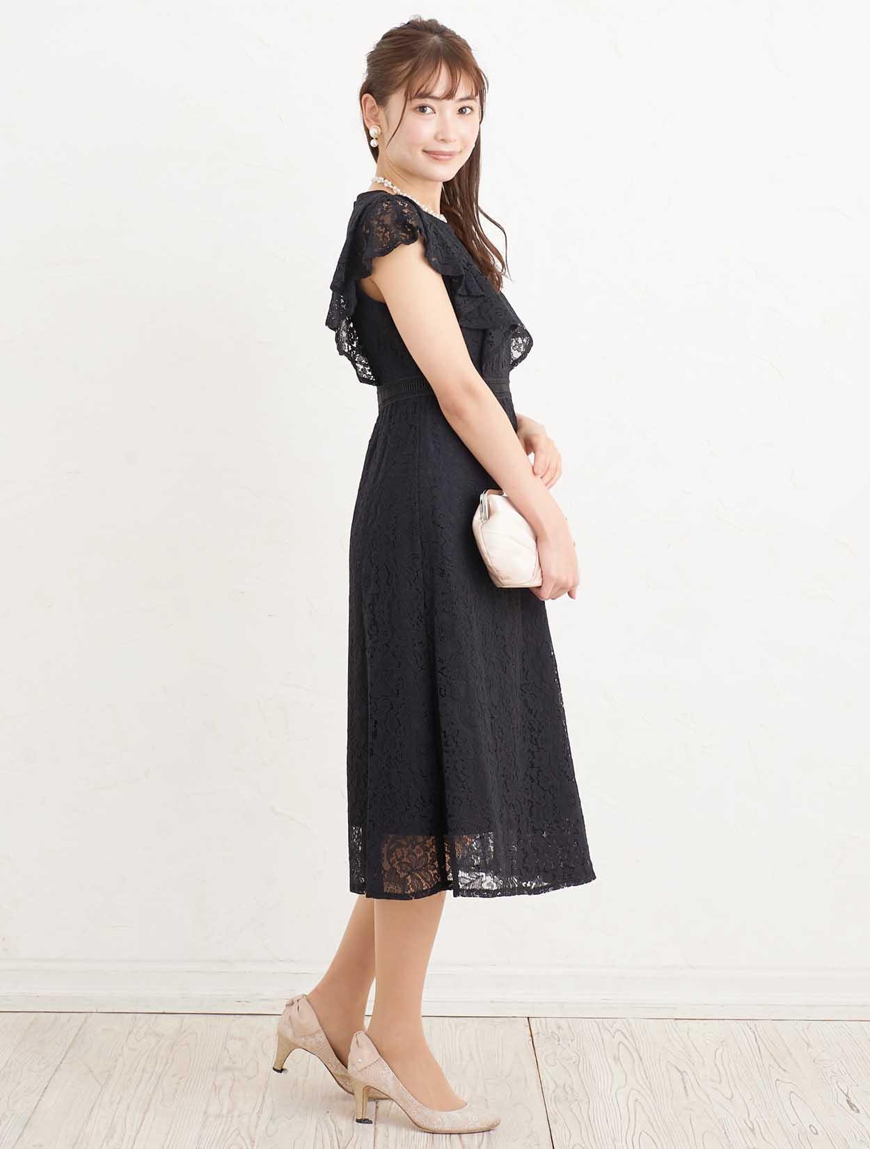 ■華やかなラッフル袖が印象的な総レースのドレスです。
