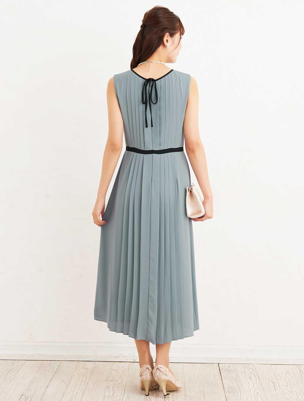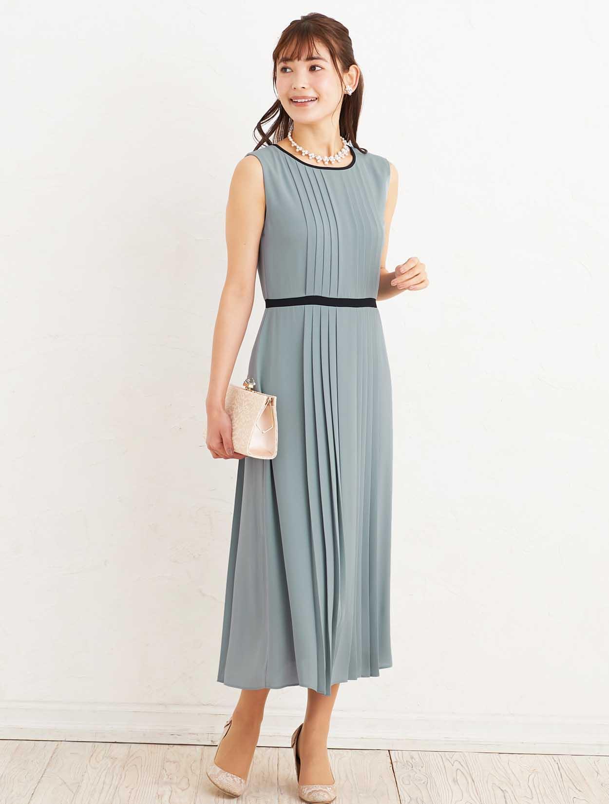 ■軽やかに揺れるプリーツスカートが上品なデザインのロングドレス。