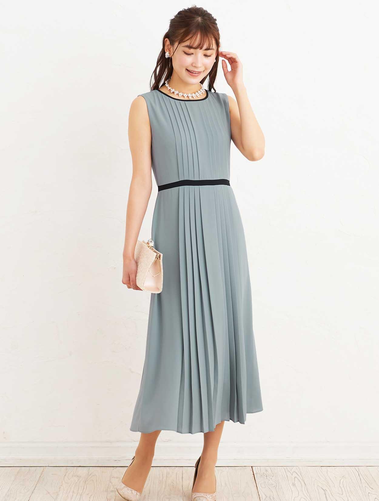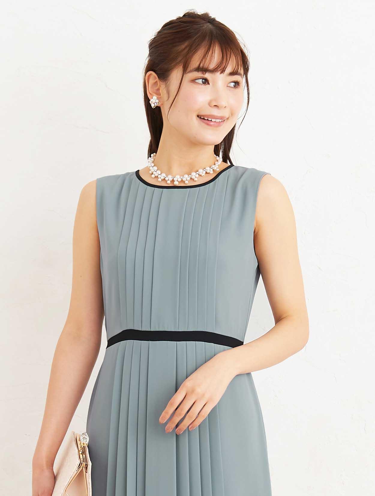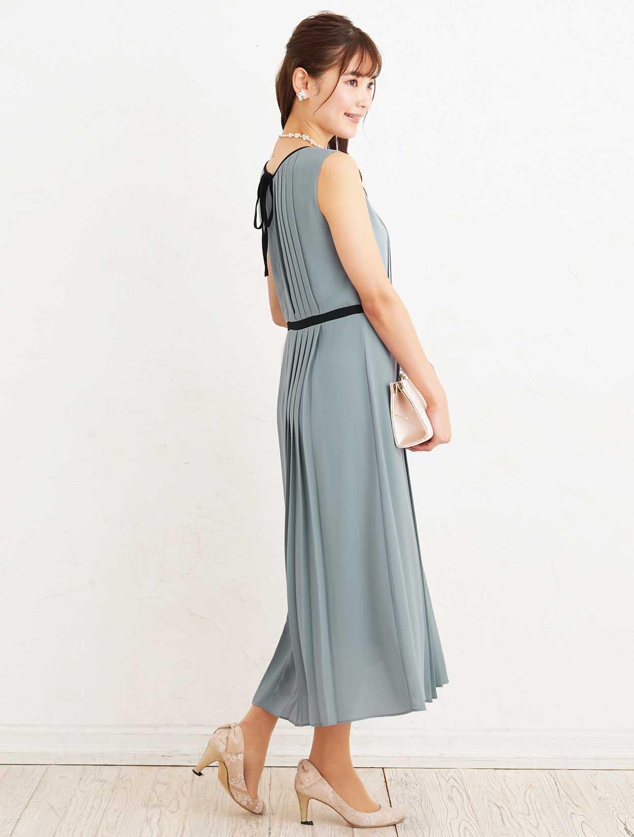 ■軽やかに揺れるプリーツスカートが上品なデザインのロングドレス。