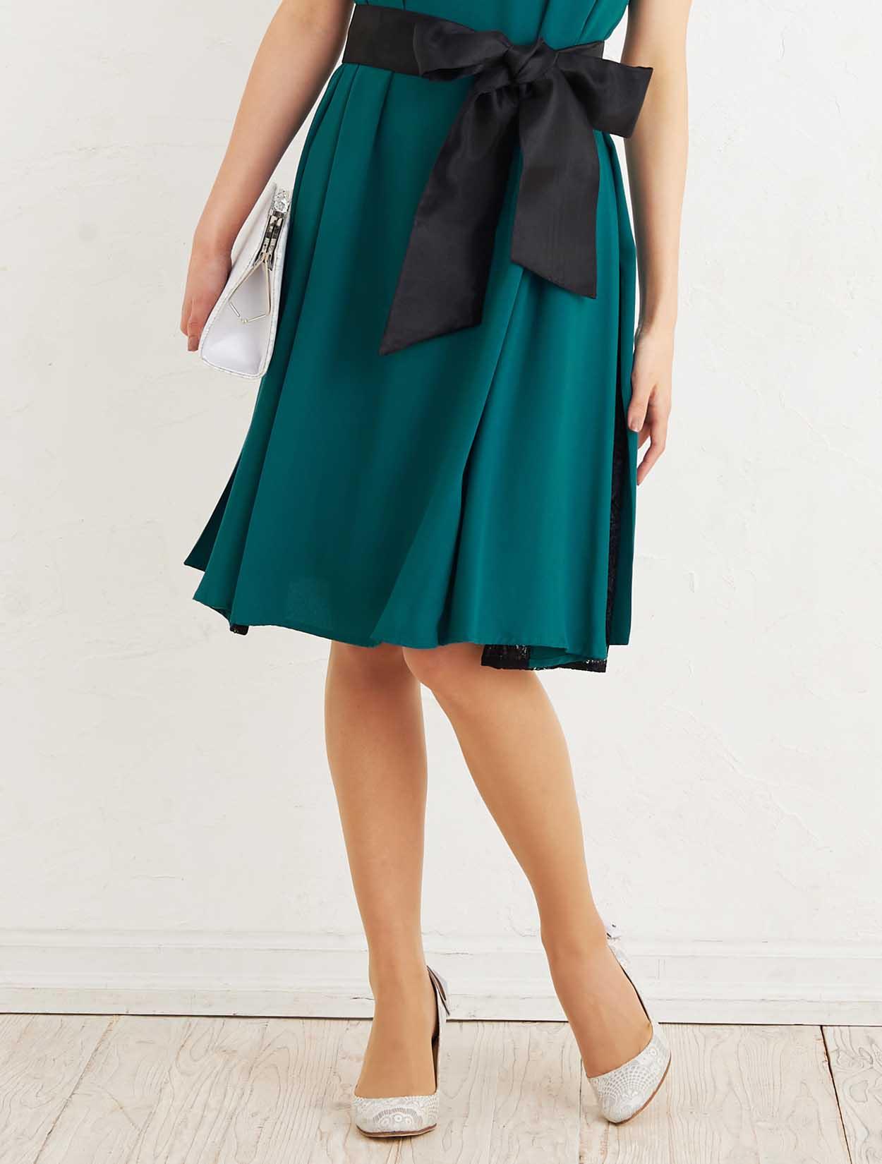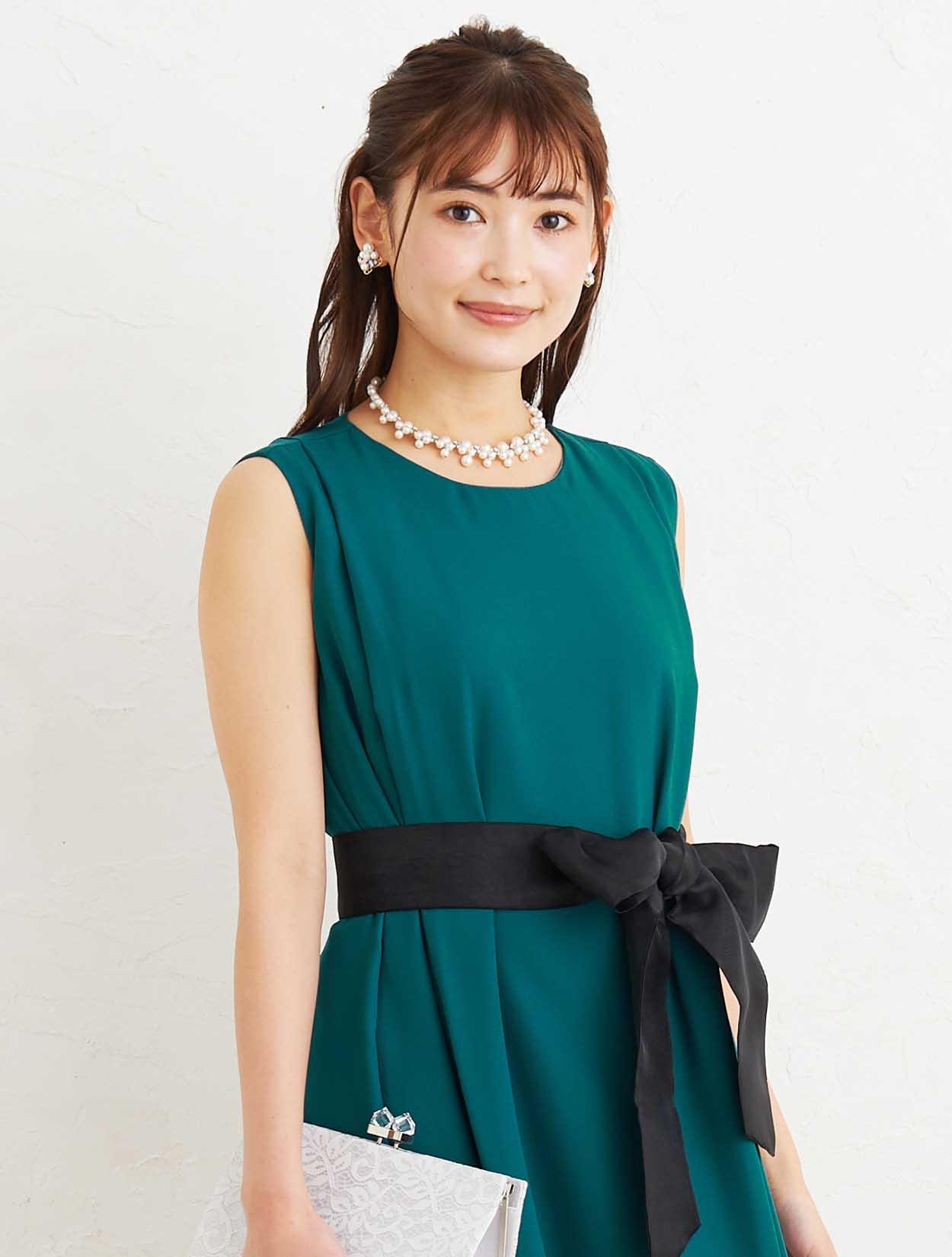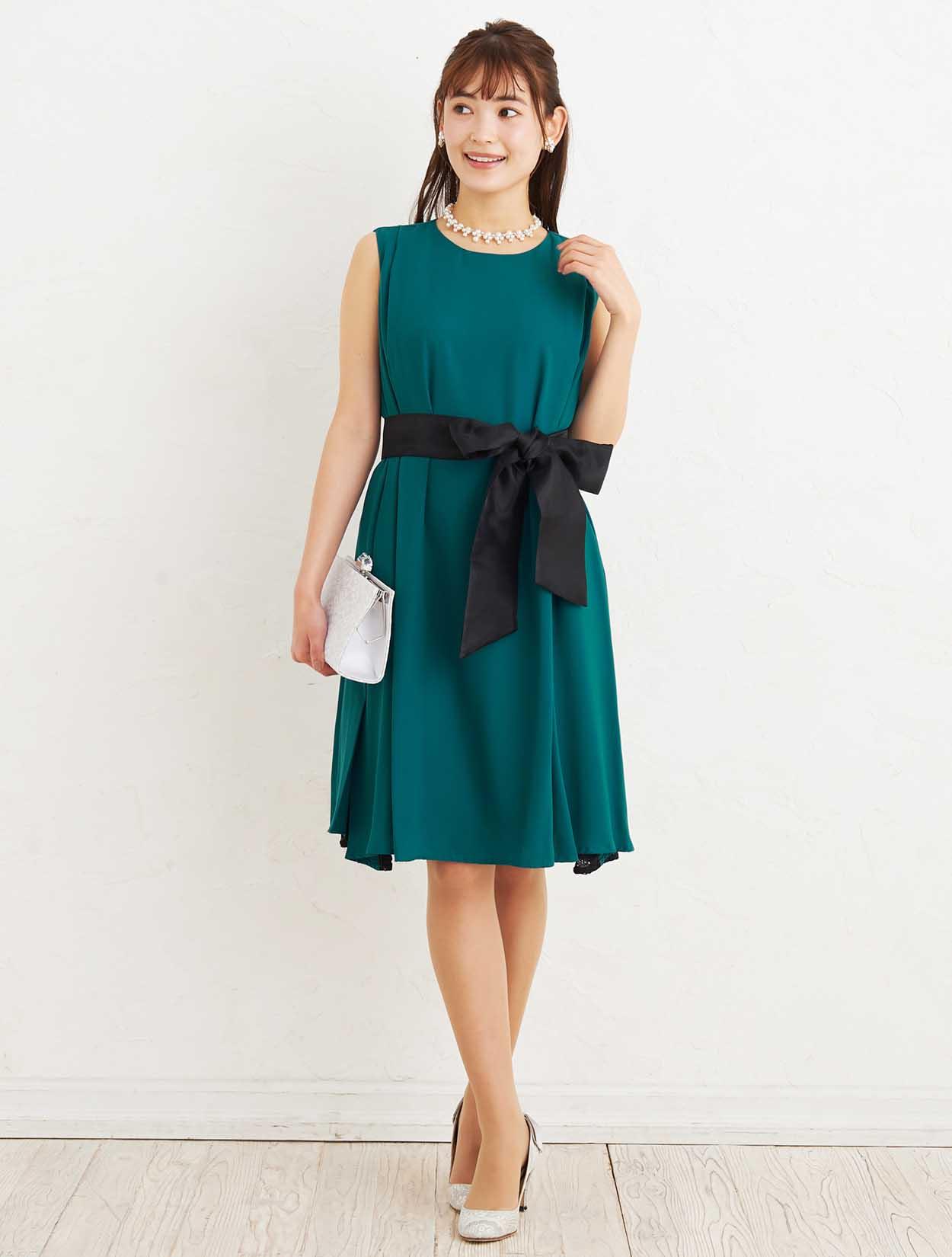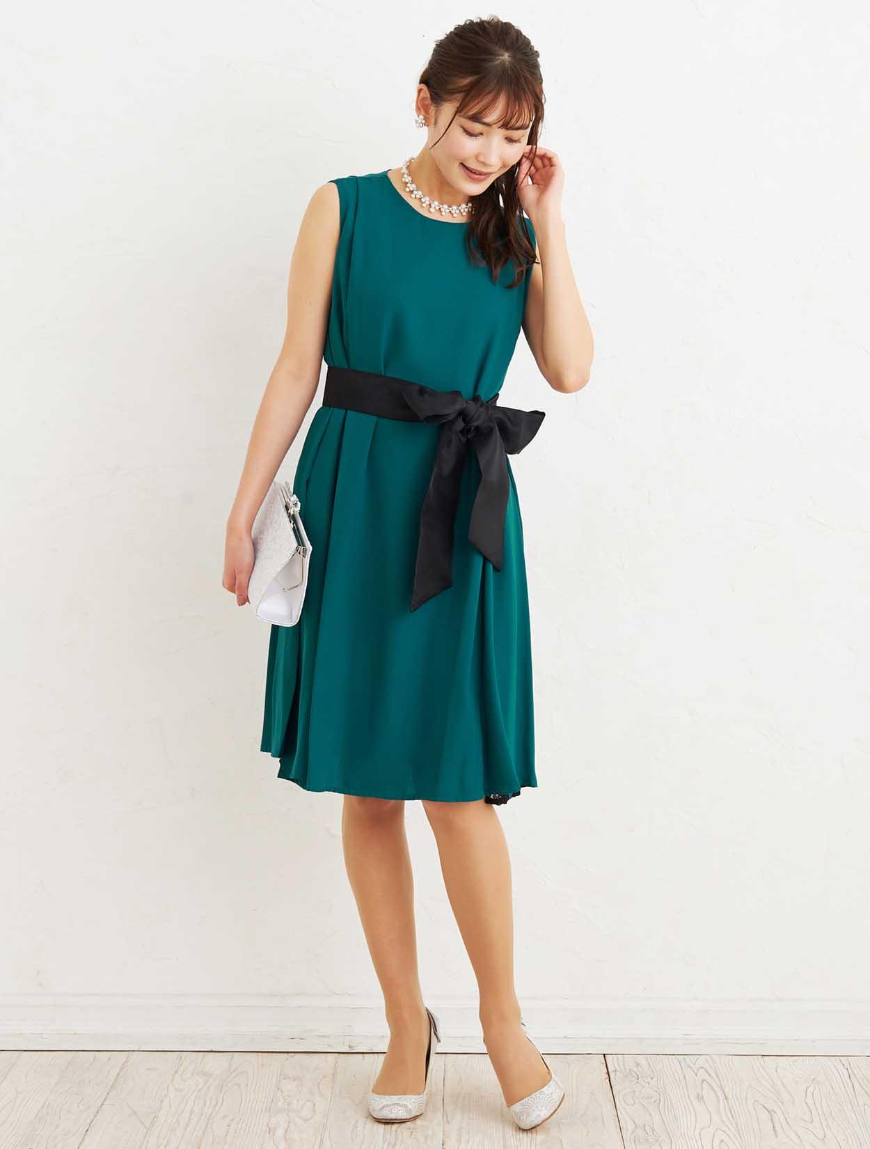 ■リボンベルトが付いていますので、ウエストマークしてスッキリと着こなすことも出来ます。