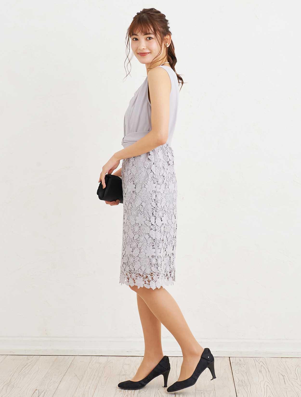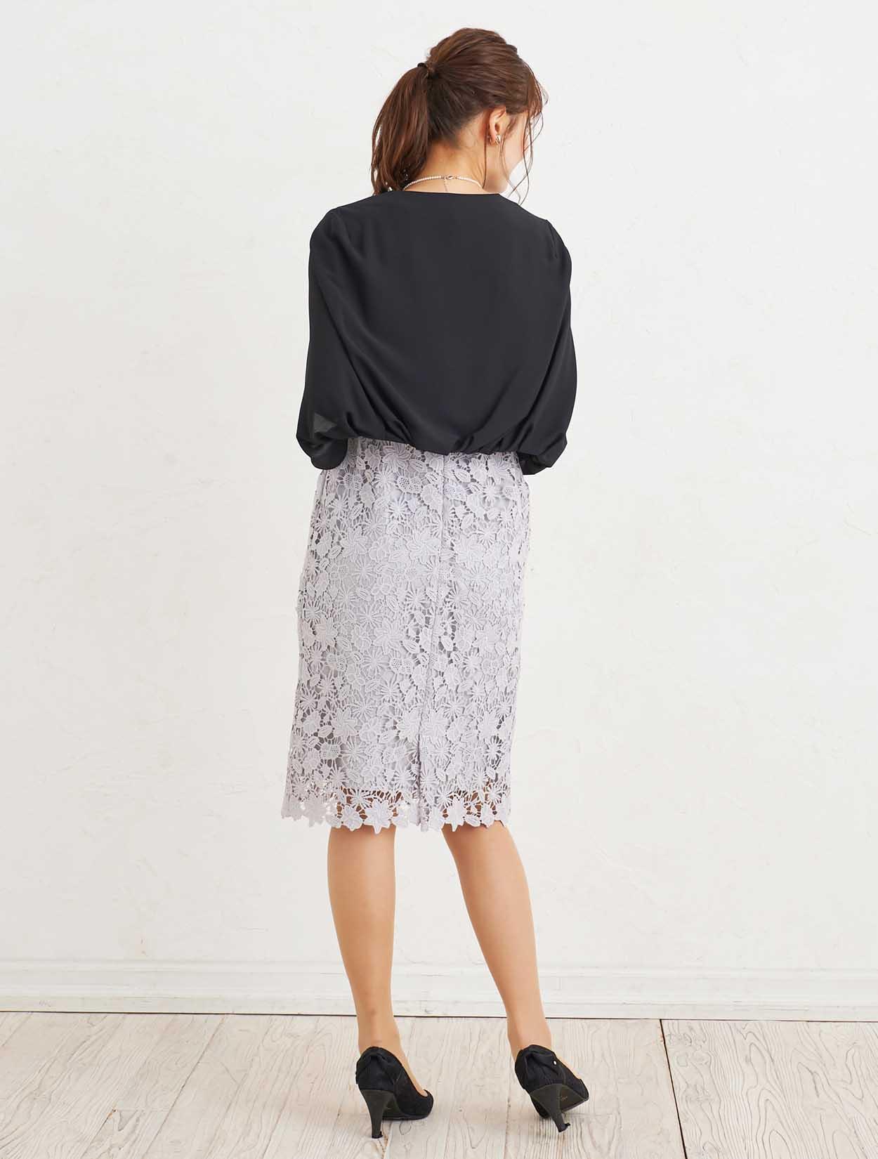 ■レースのスカートが身体のラインに沿っているので全体的にスッキリとした印象になります。