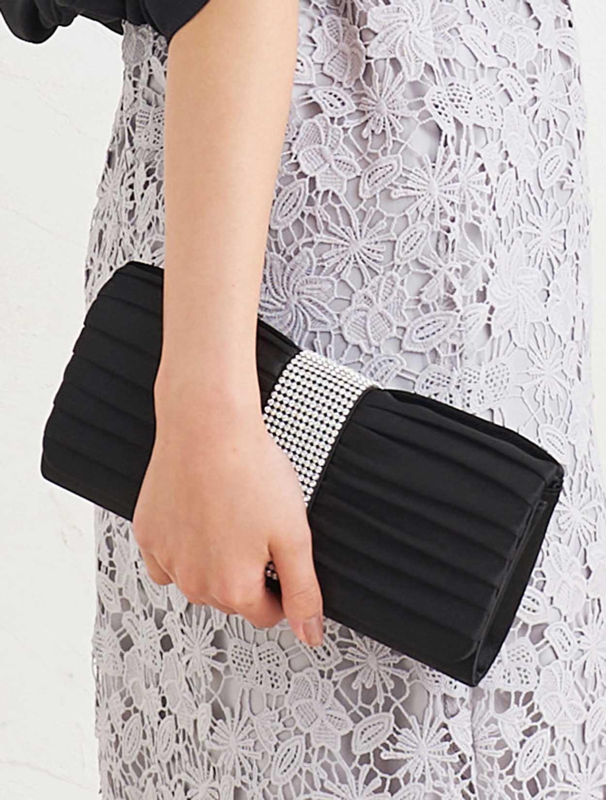 ■淡い色のドレスには、ブラックの小物を合わせてメリハリのある印象に。