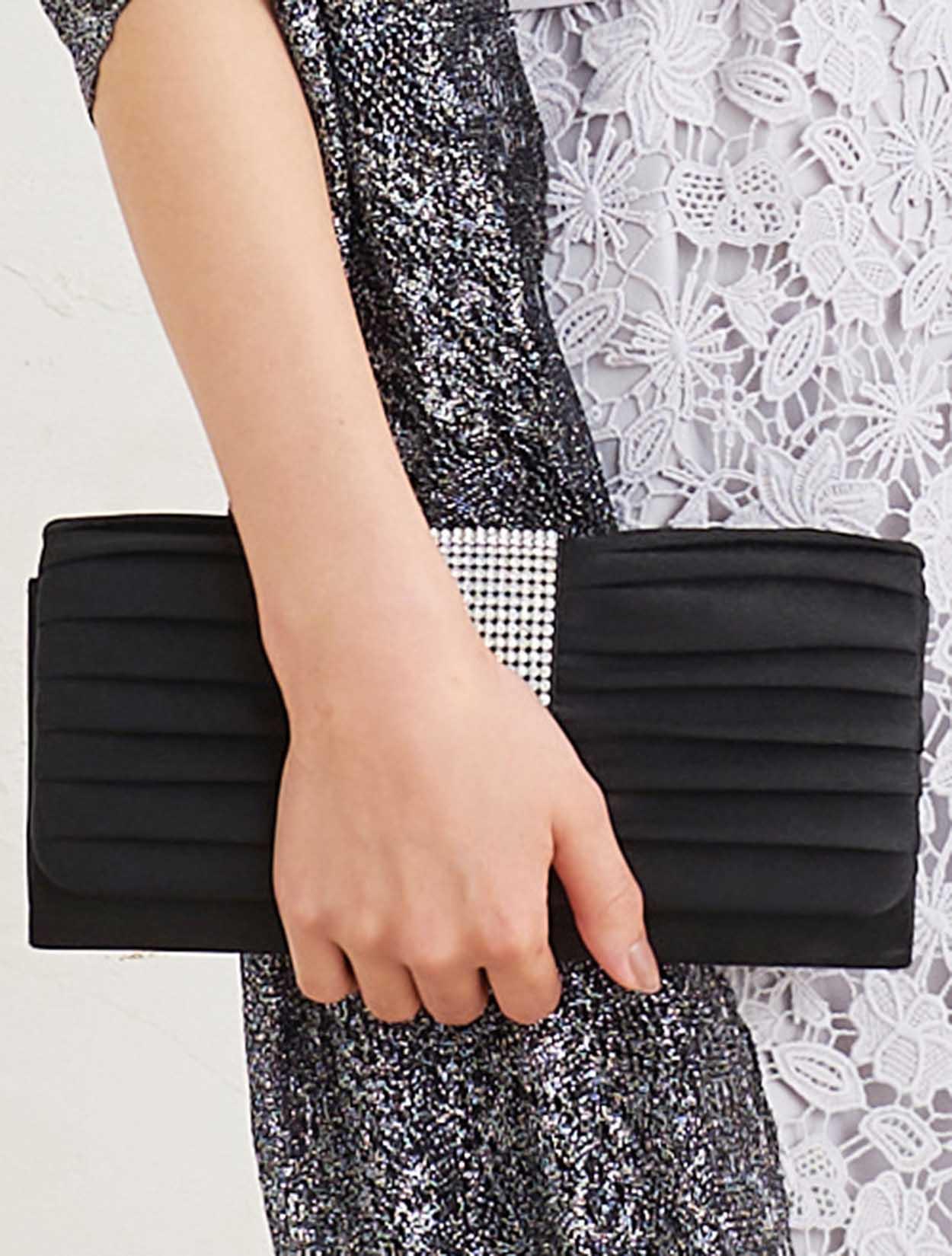 ■淡い色のドレスには、ブラックの小物を合わせてメリハリのある印象に。