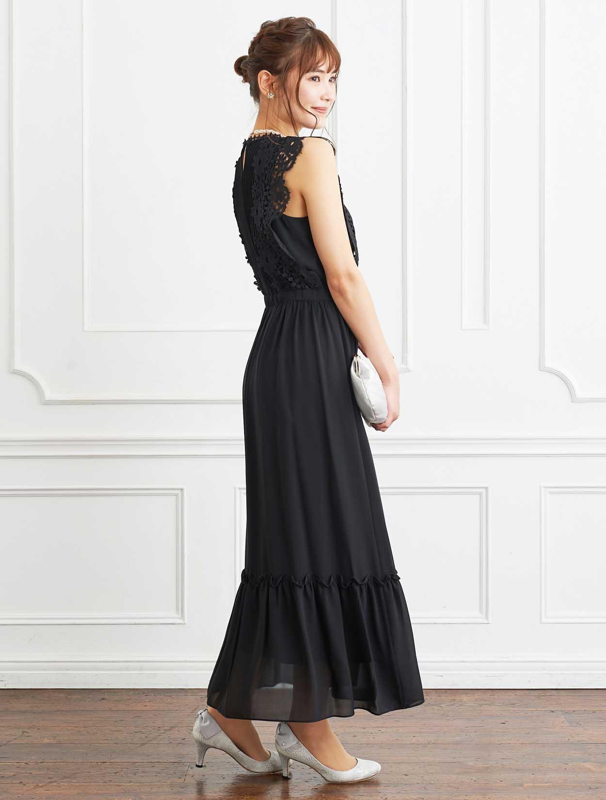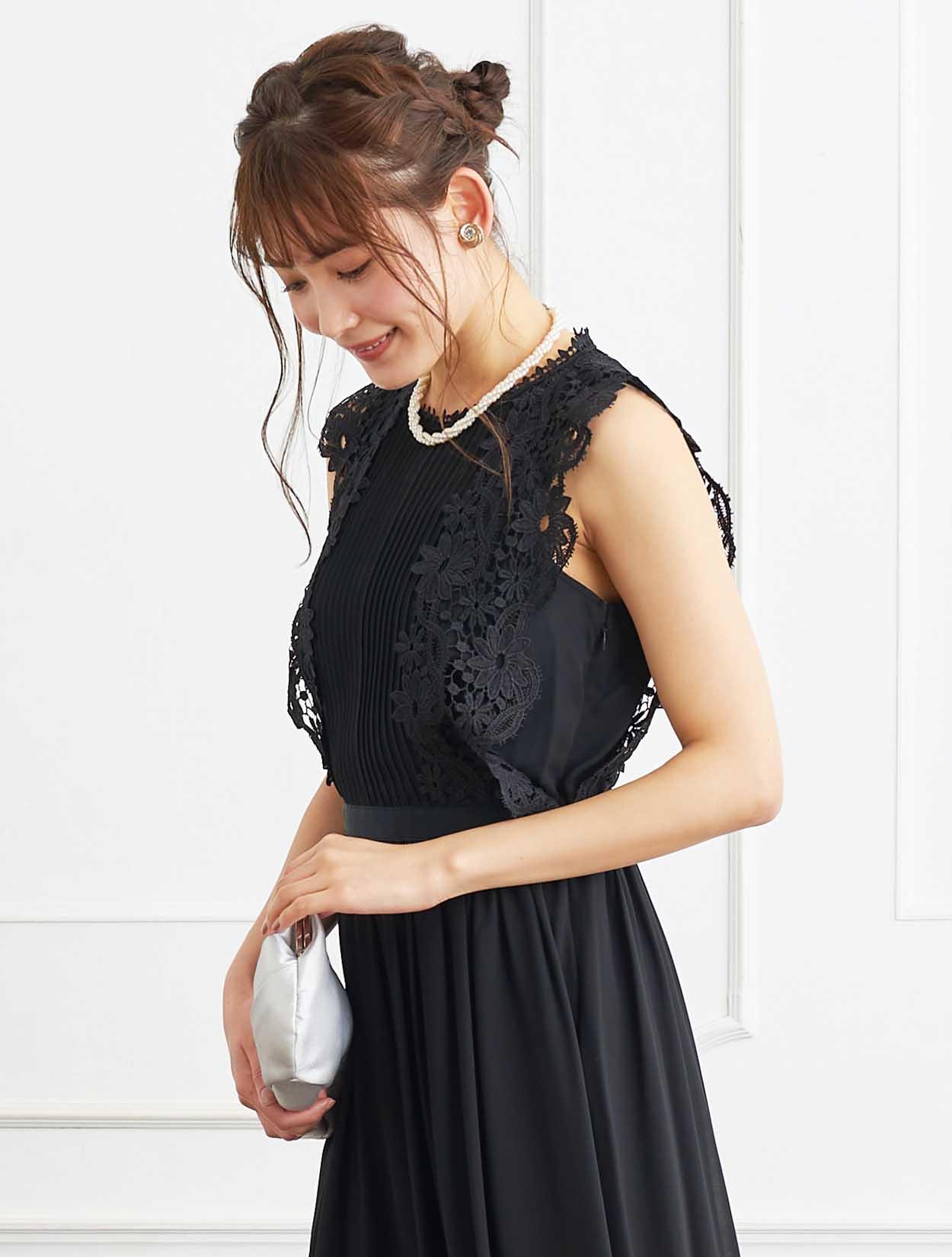 ■レースのように華やかさのある素材を選ぶと、黒でもドレッシーな印象に。
