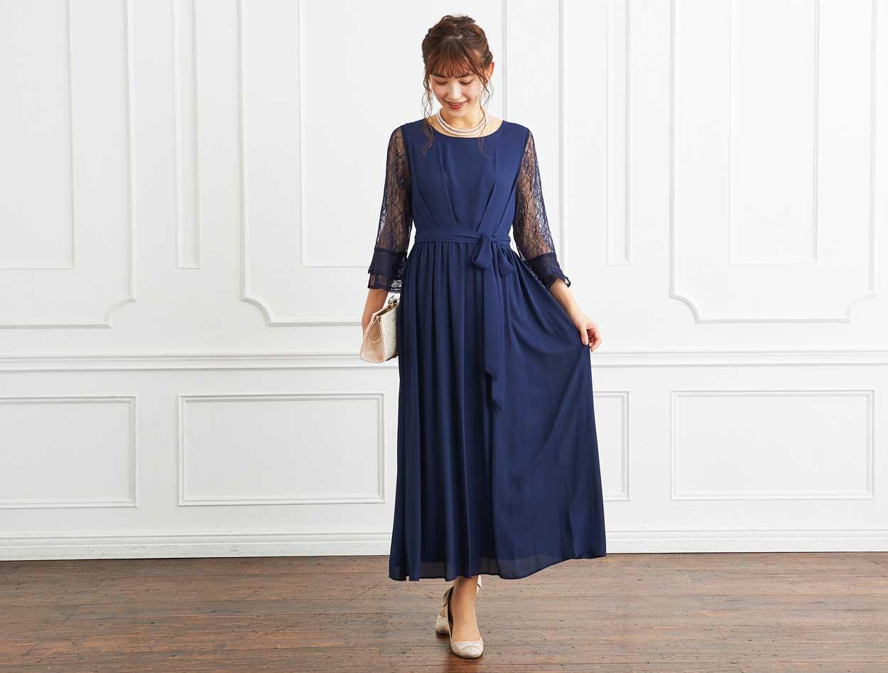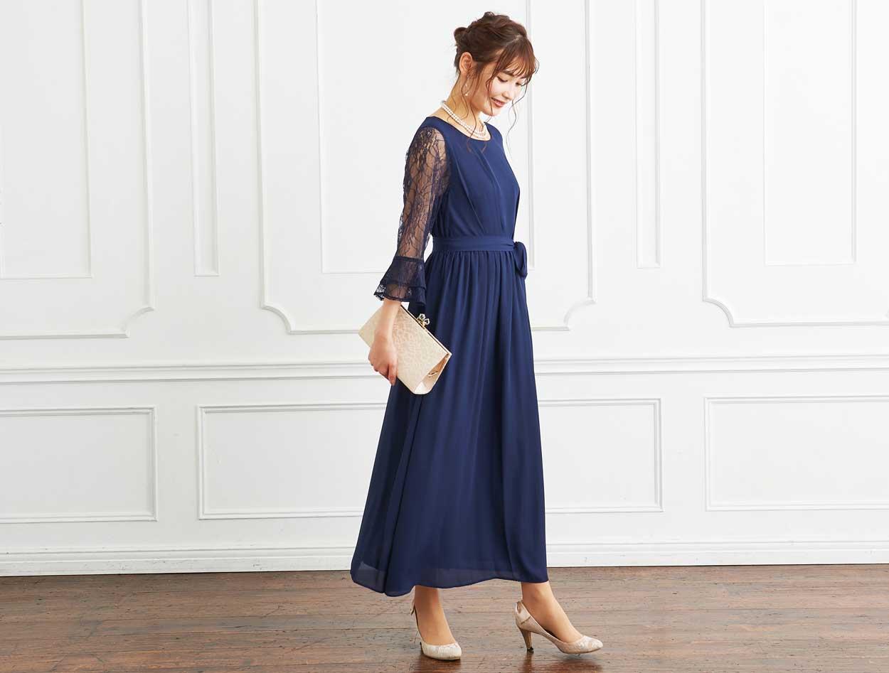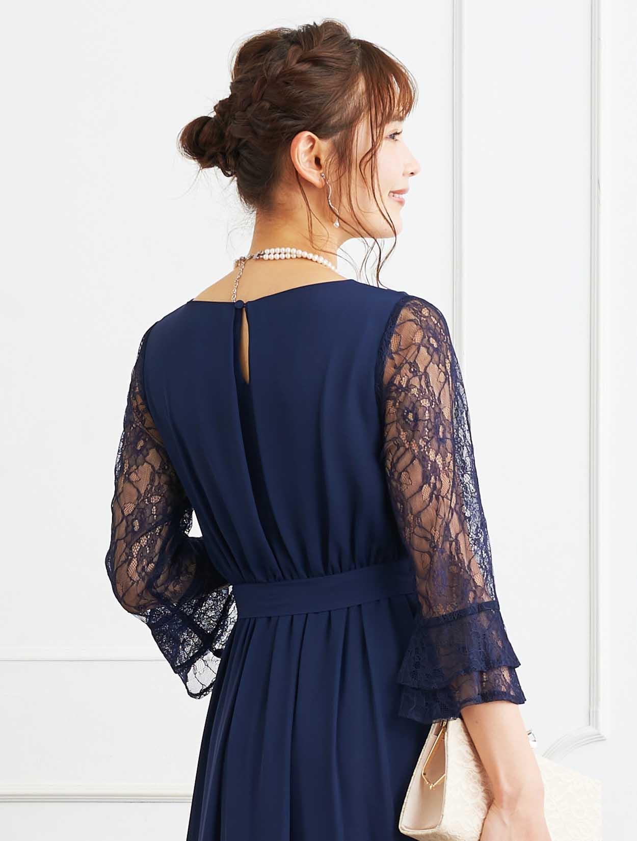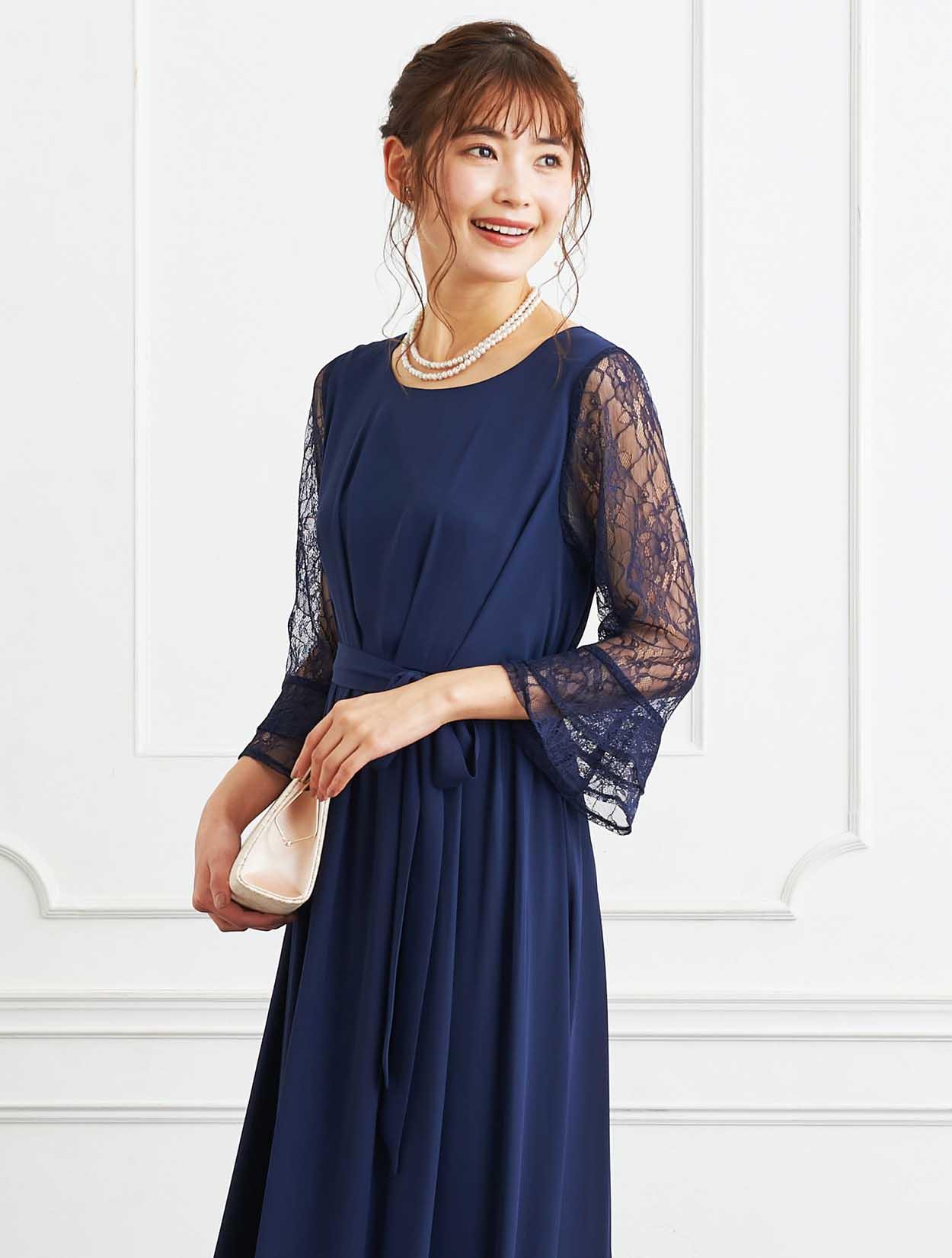 ■定番のネイビーカラーは上品でどんな人にも似合うと人気のドレスです。