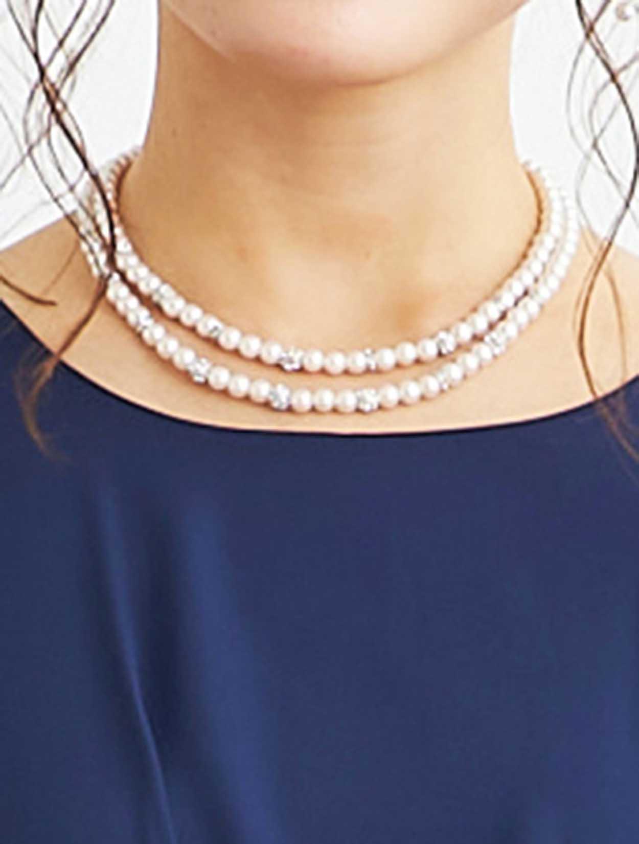 ■華やかな2連のパールネックレスは小粒のミラーボールがキラキラと輝き、胸元を美しく着飾ります。