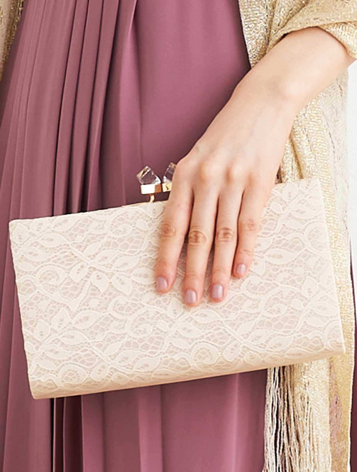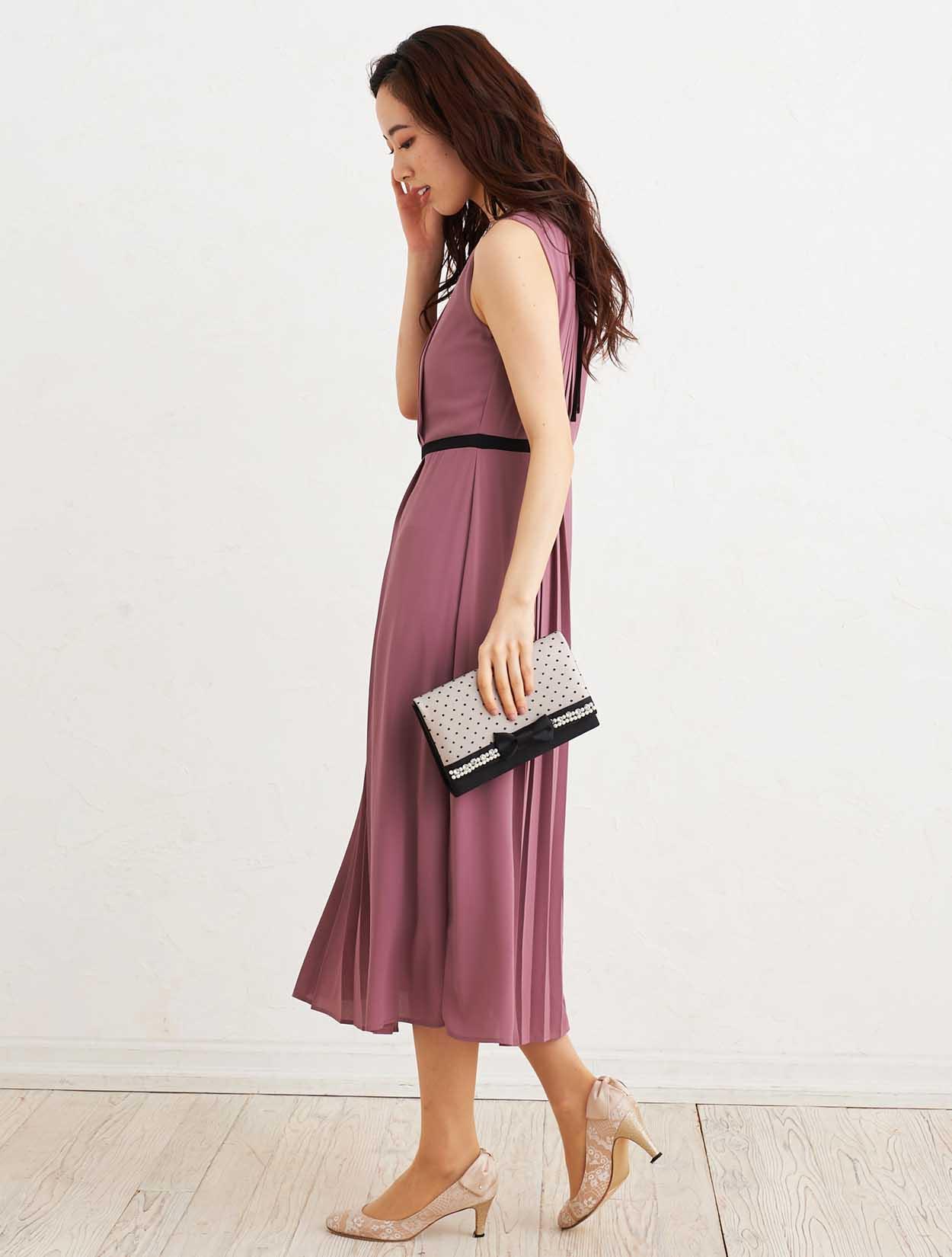 ■小物はベージュで統一しドレスを引き立たせるコーディネートです。