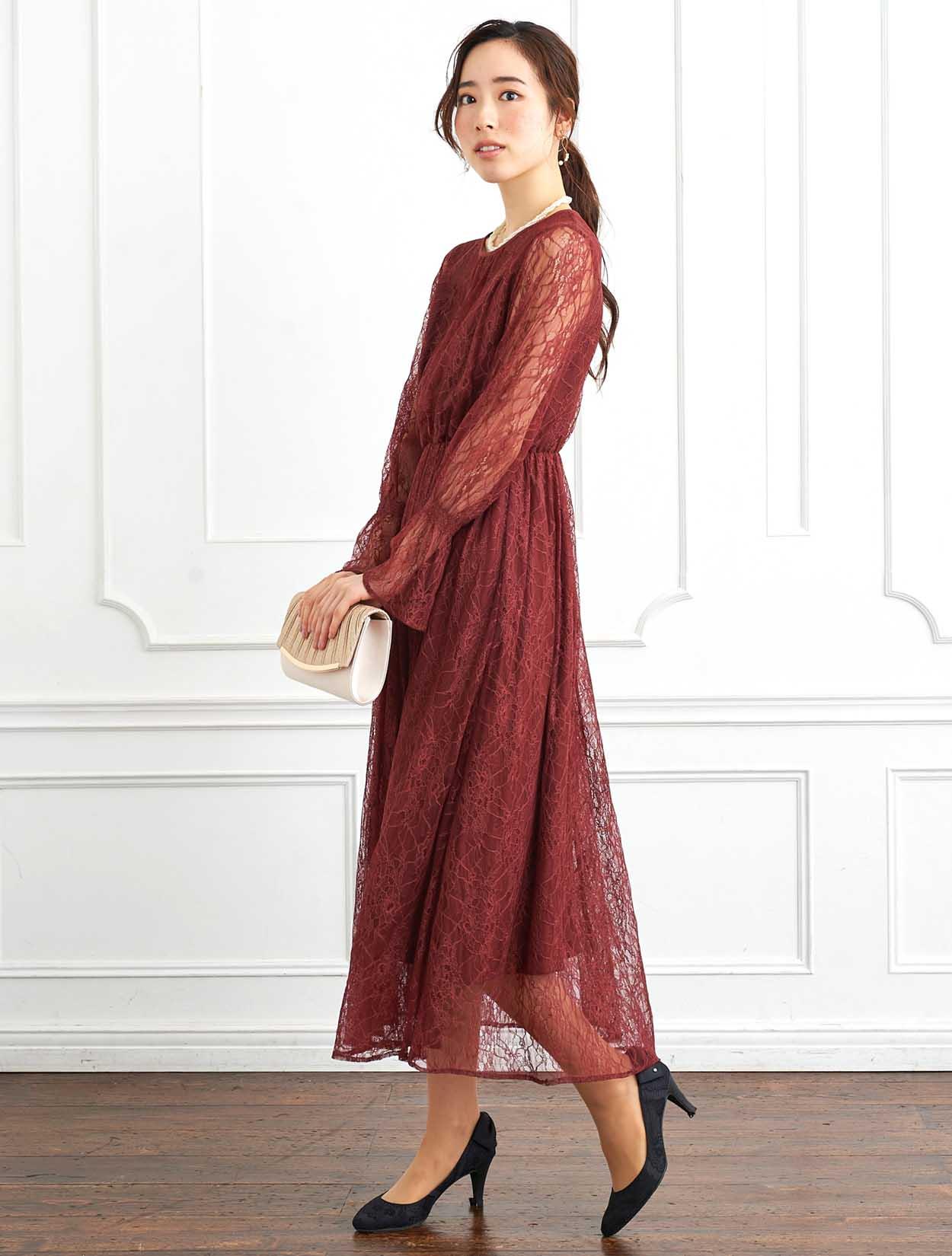 ■落ち着いた雰囲気で上品に着こなしやすいボルドードレスは深みのある色味なので大人っぽい雰囲気をお楽しみいただけます。