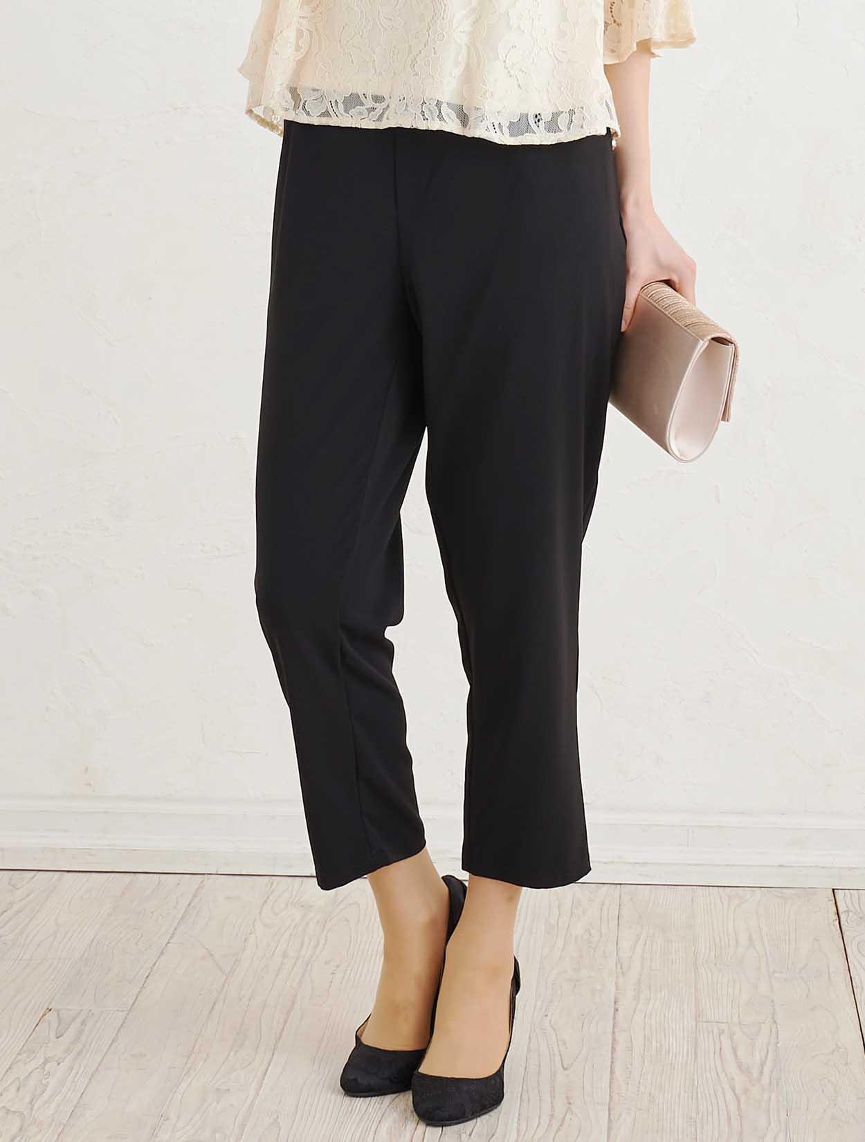 ■アンクル丈のスラックスが華奢な足首を魅せスッキリとした印象に。