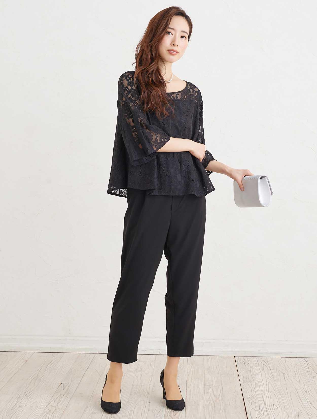 ■華やかなレースで作った透け感のある上質なパンツドレスです。