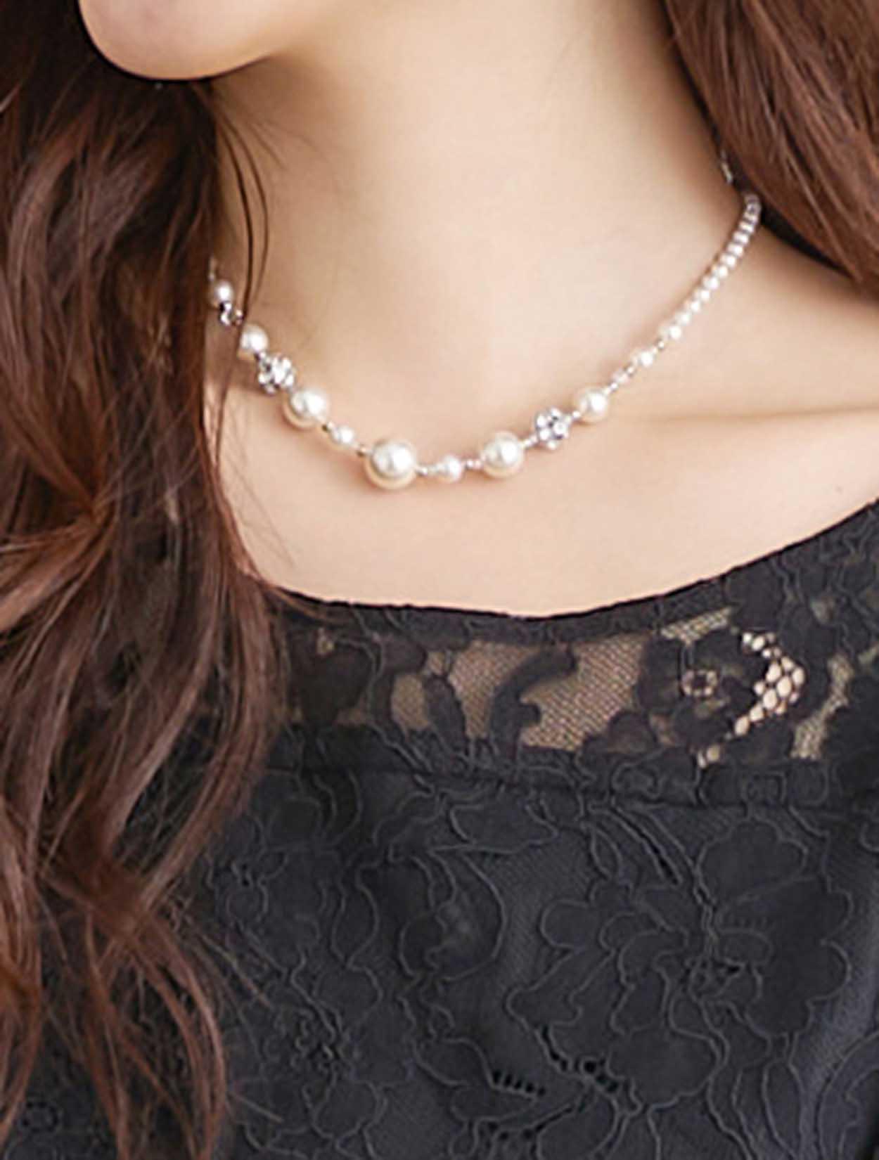 ■首元をスッキリと見せてくれる華奢なネックレスがおすすめです。
