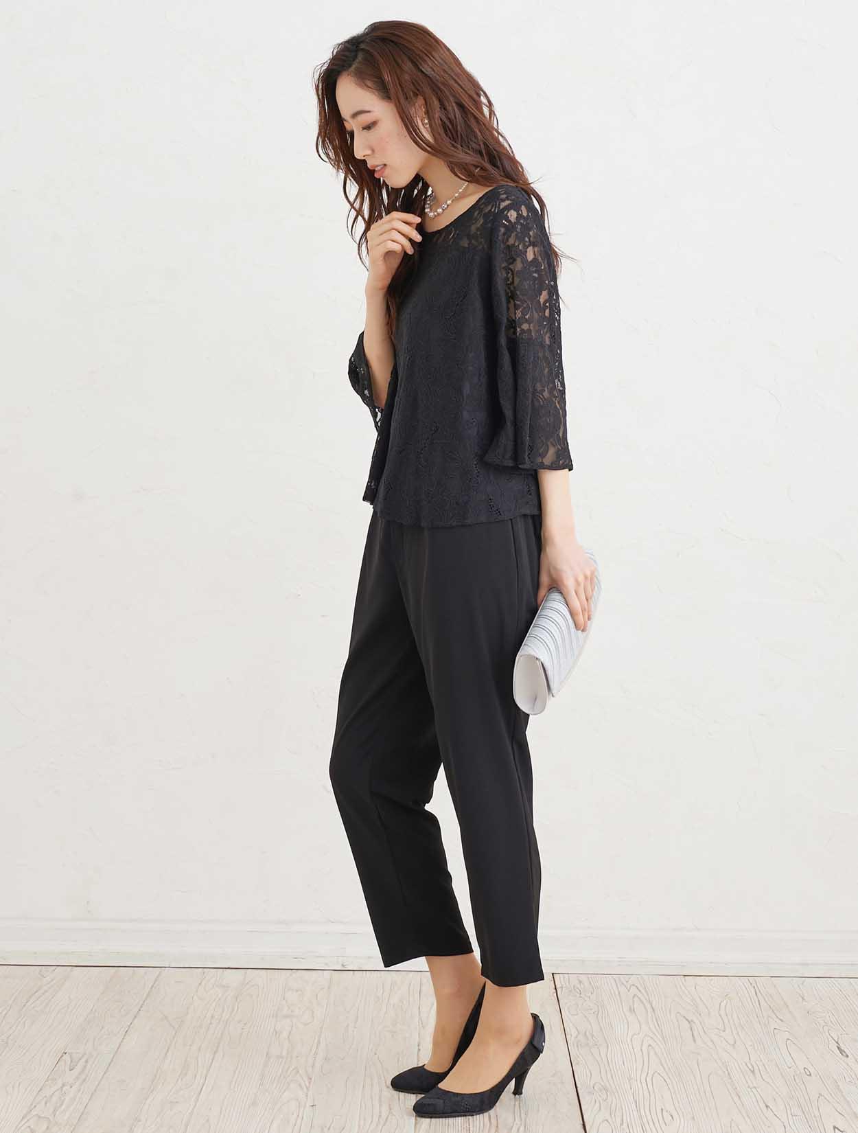 ■華やかなレースで作った透け感のある上質なパンツドレスです。