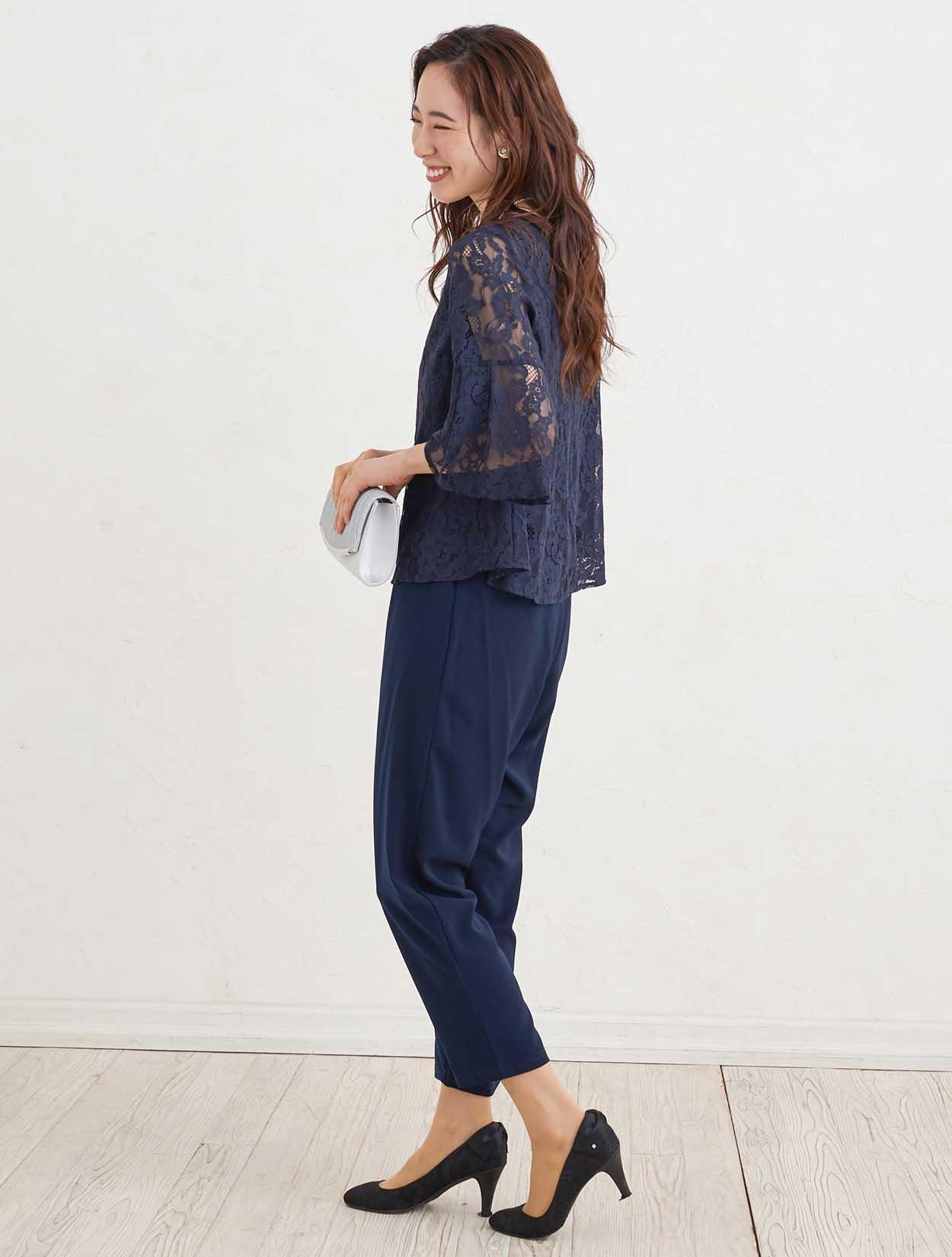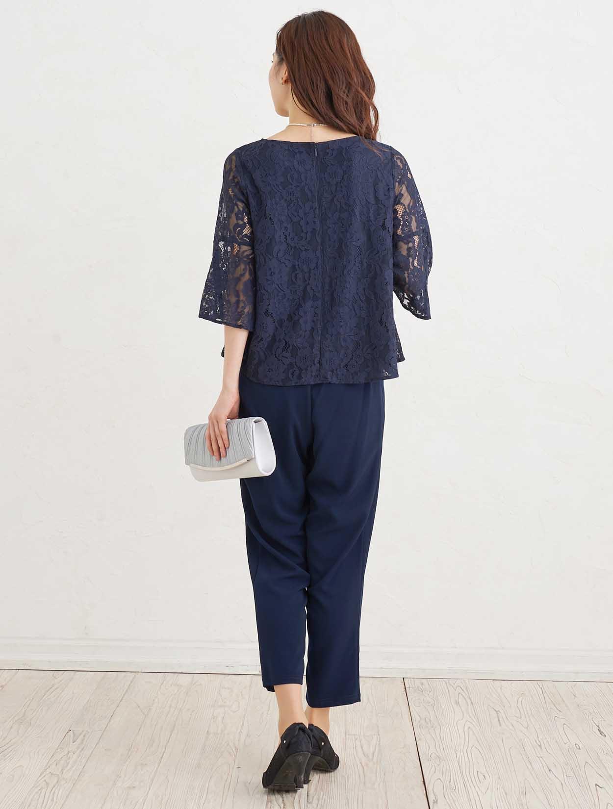 ■華やかなレースで作った透け感のある上質なパンツドレスです。