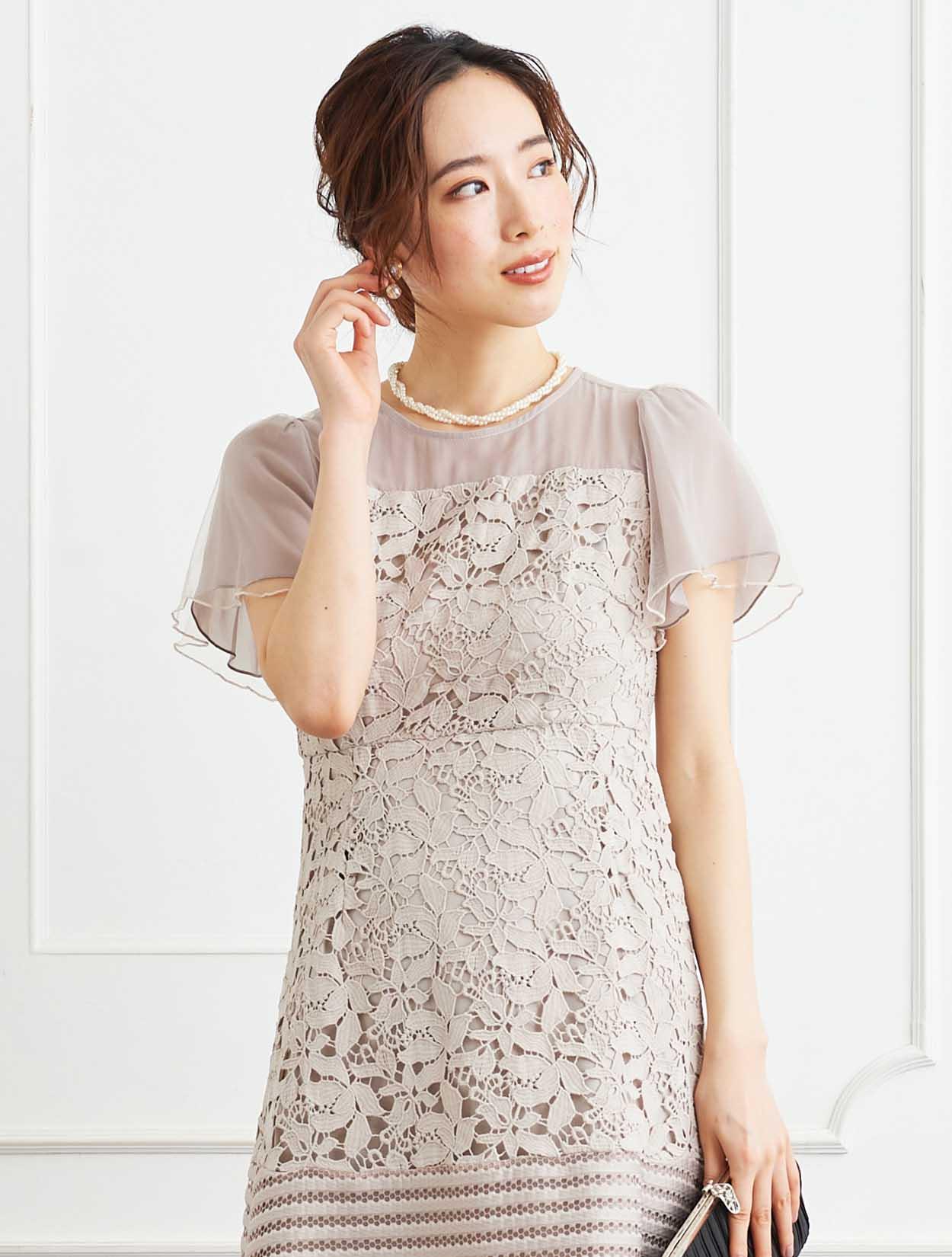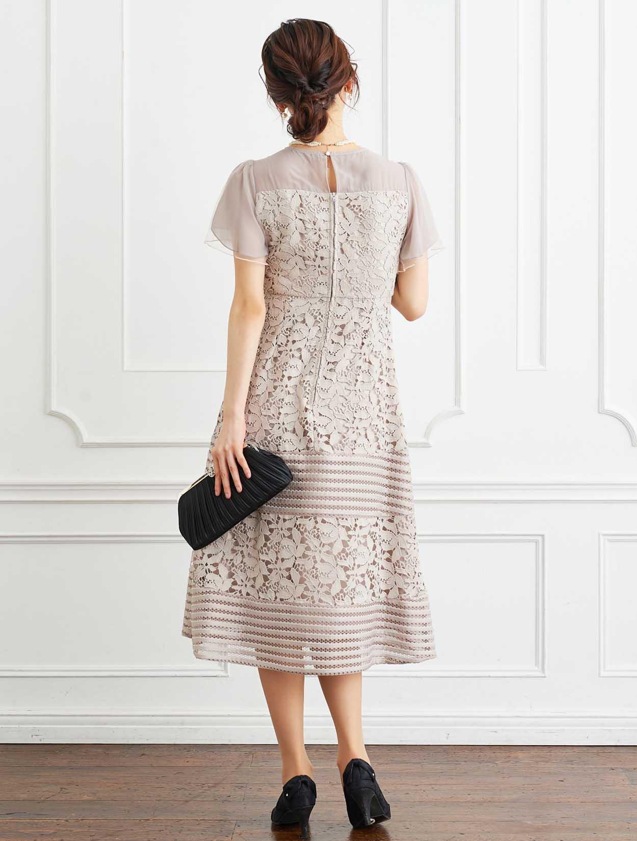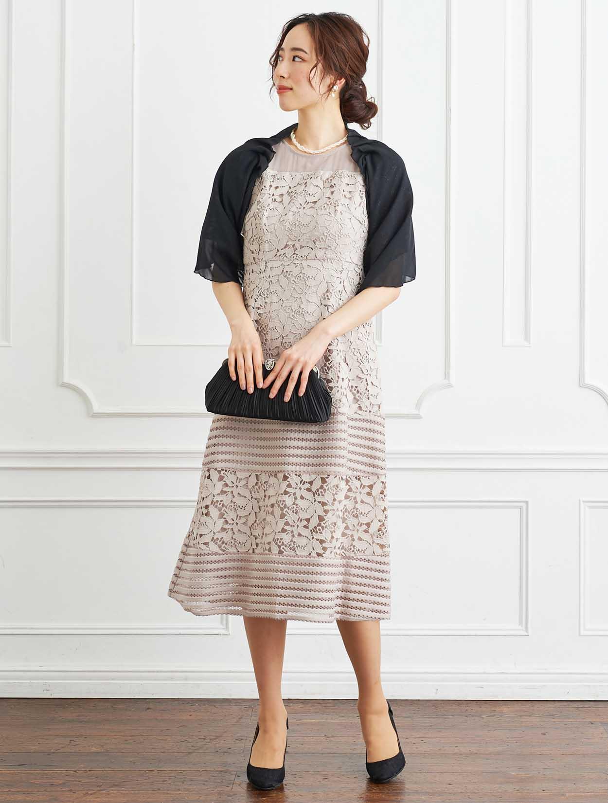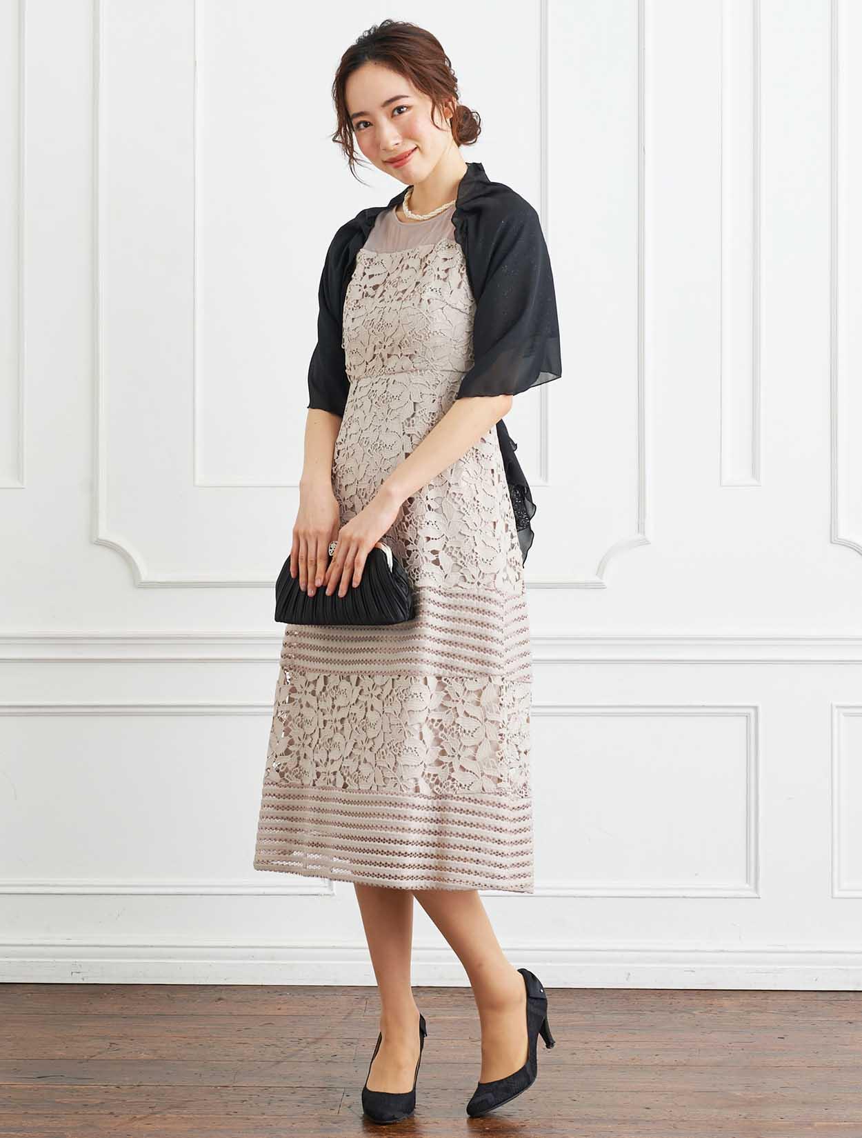 ■フラワーレース×ボーダーラインで、温かみのあるワンピースドレスです。