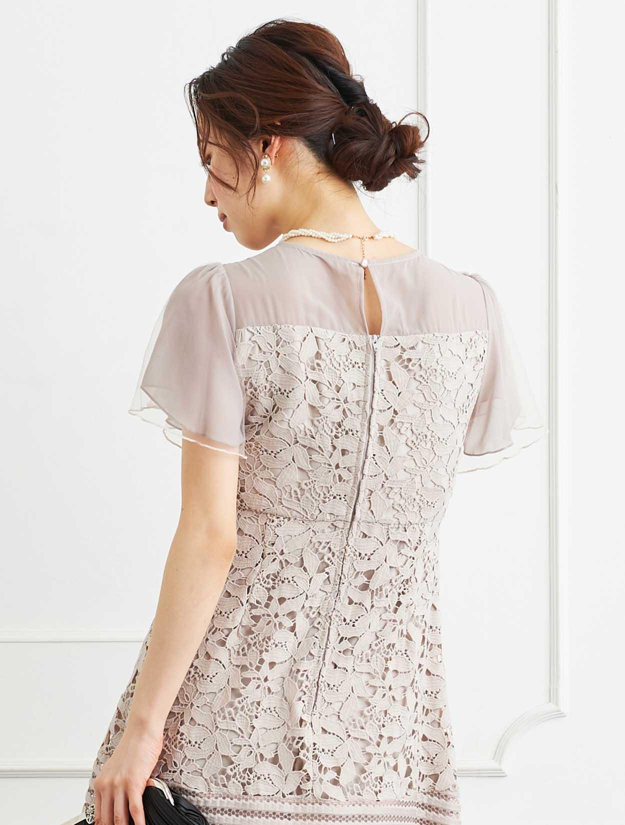 ■袖部分はチュール2枚重ねのフレンチスリーブで可愛らしさがアップ。