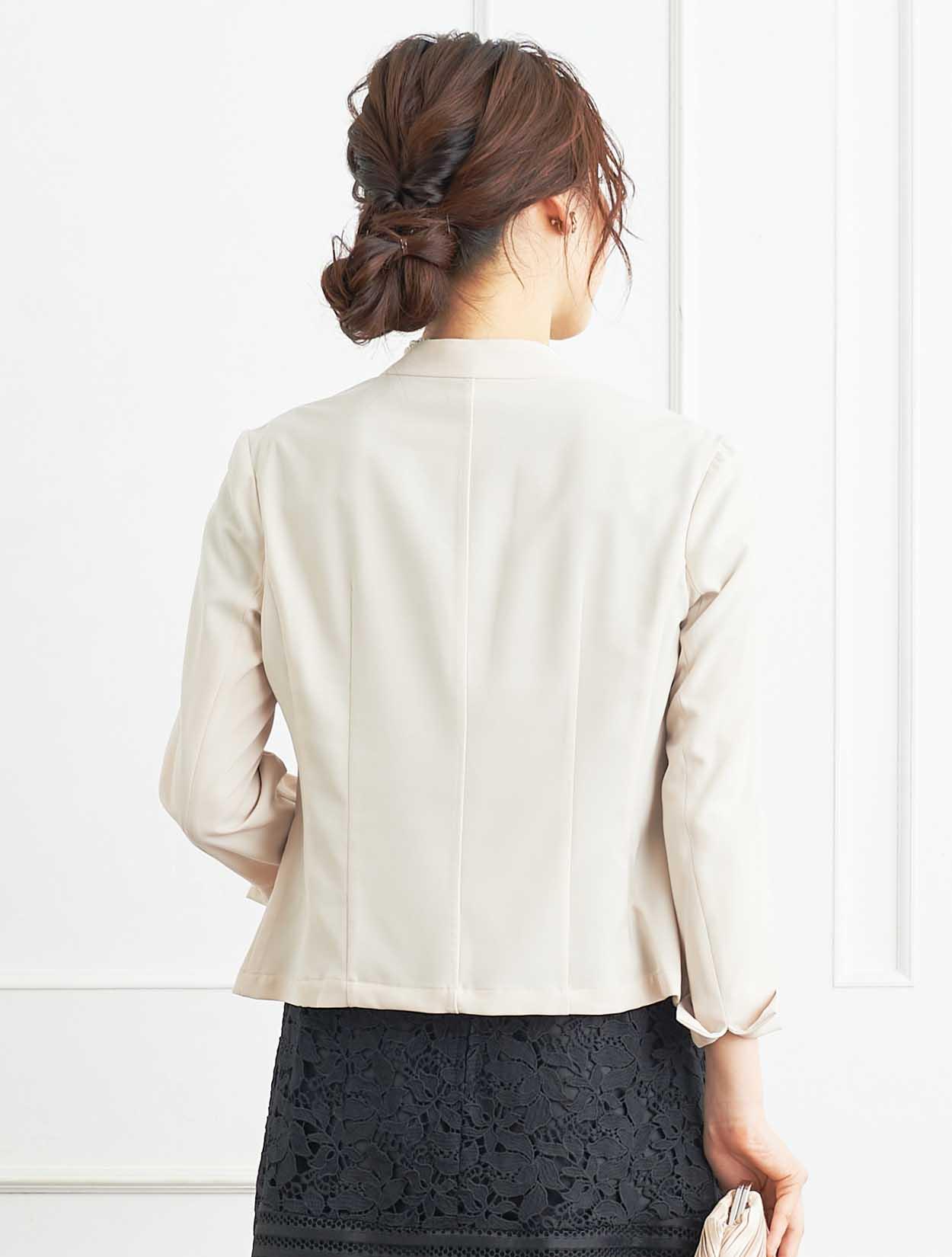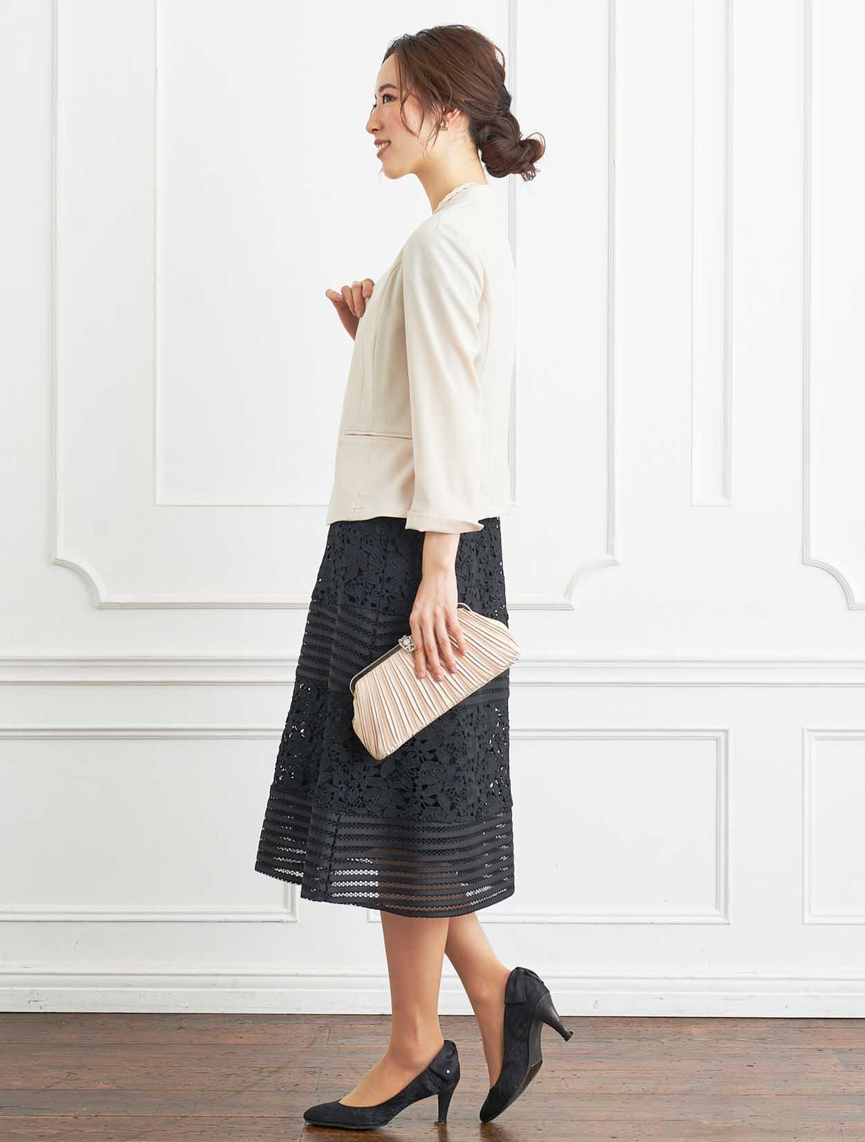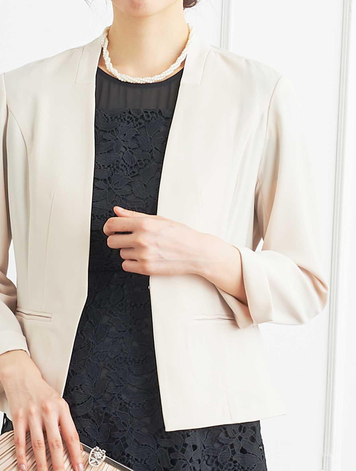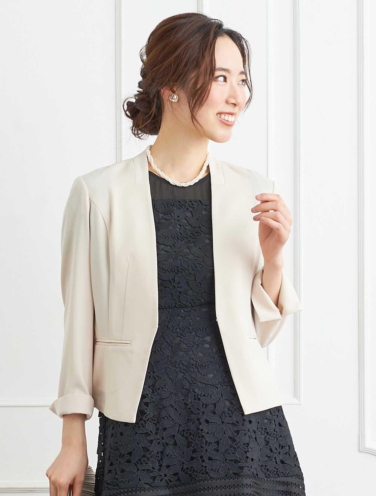 ■スタイルアップ効果のあるブラックのドレスにベージュのボレロで上品な大人スタイル。