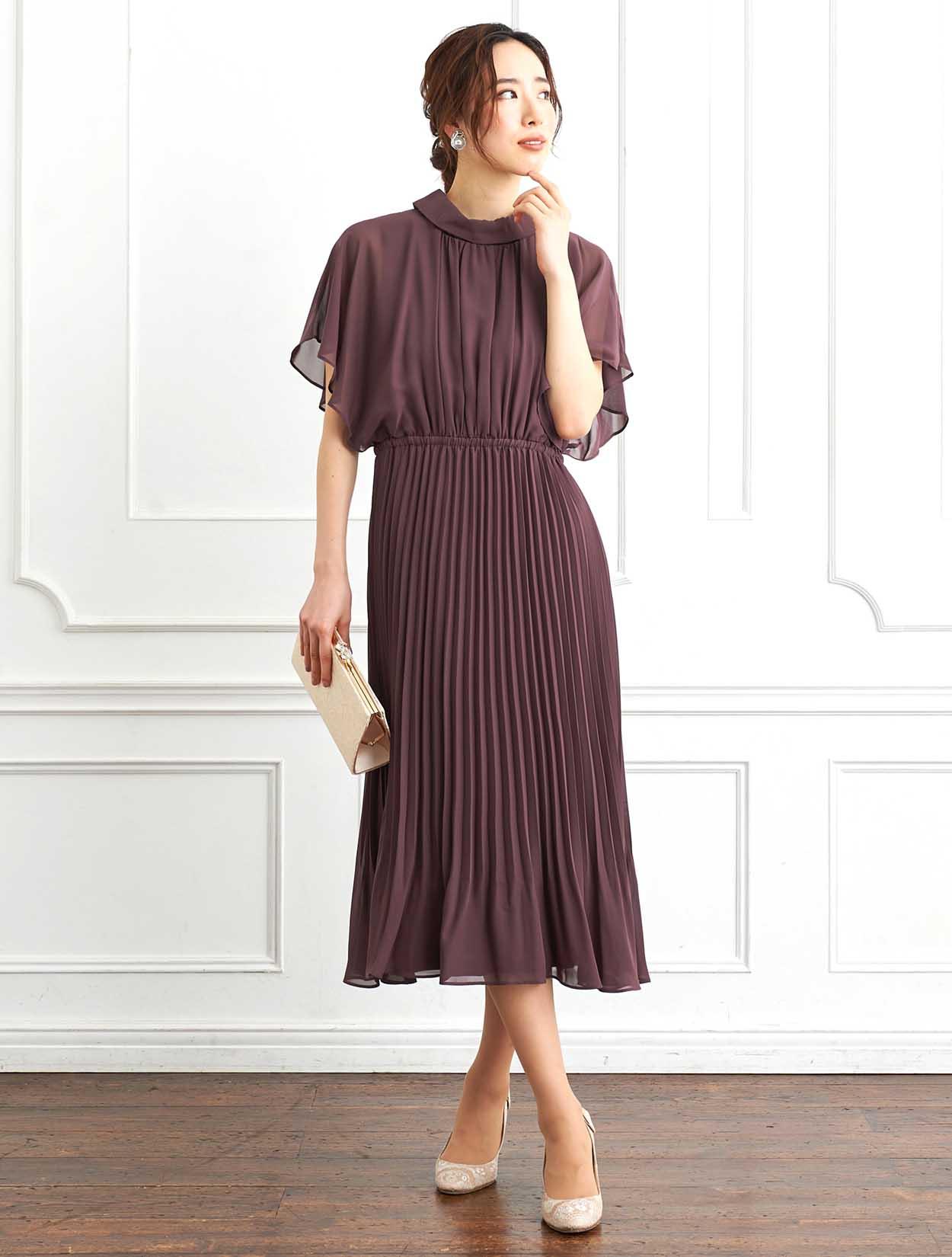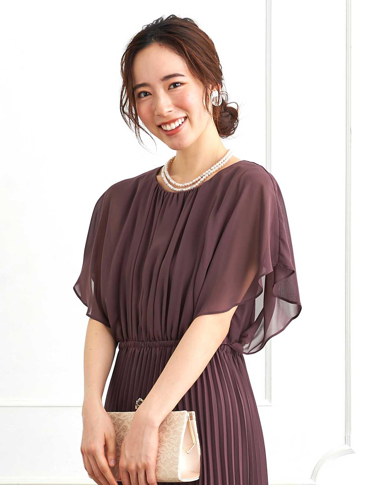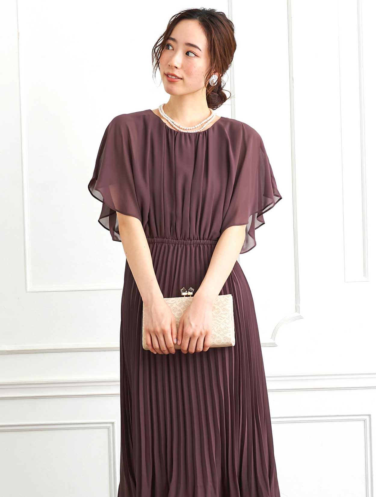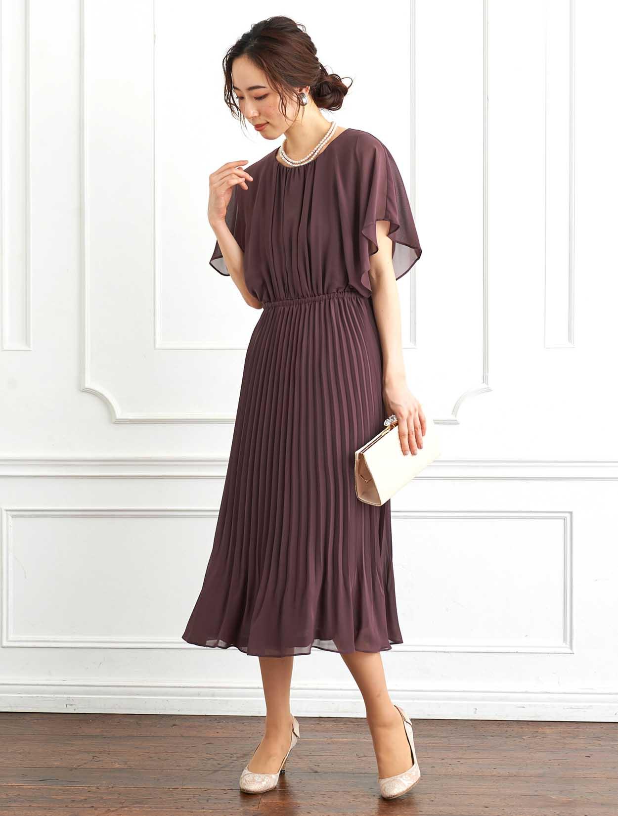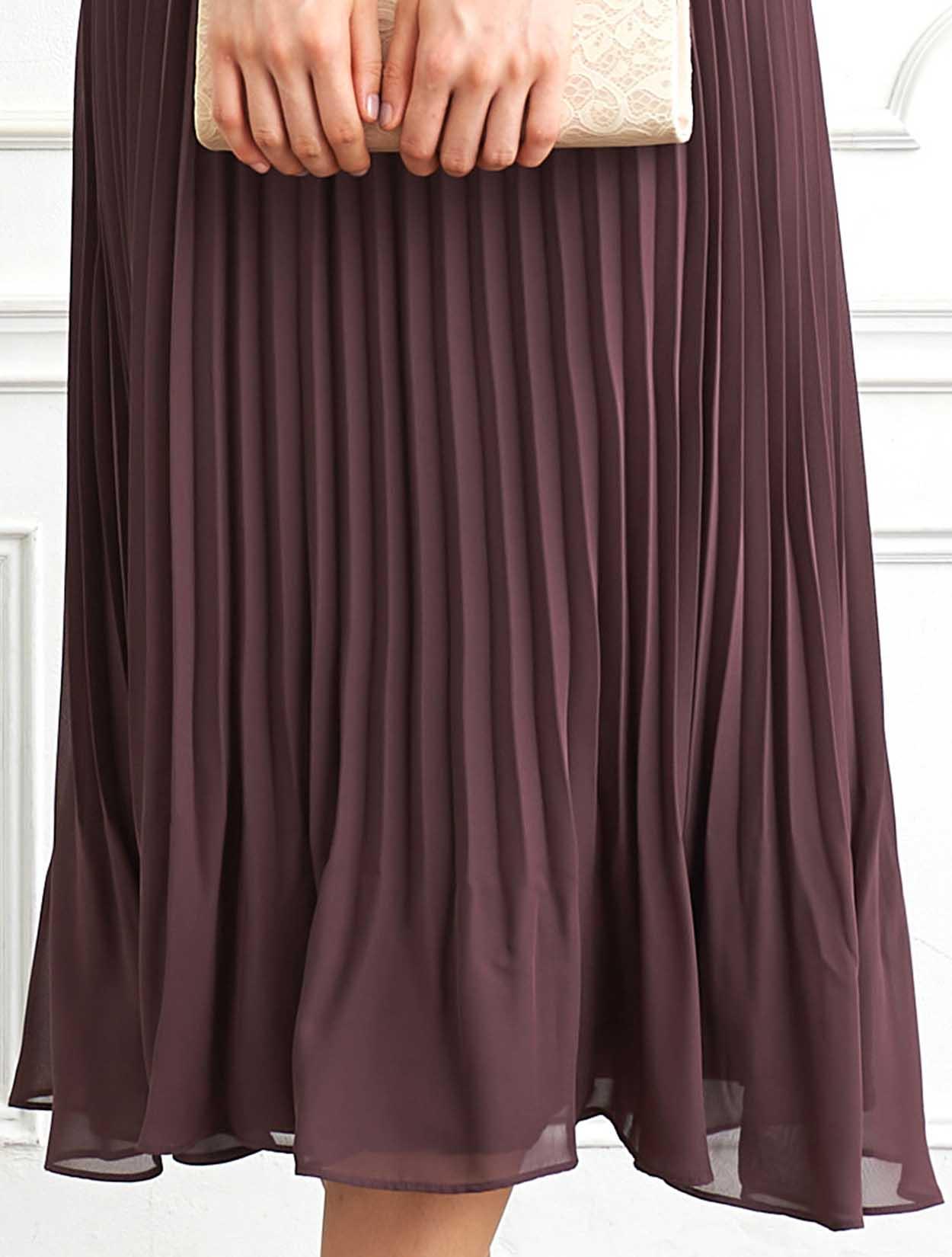 ■脚長効果抜群のプリーツスカートが印象的なロングドレスです。