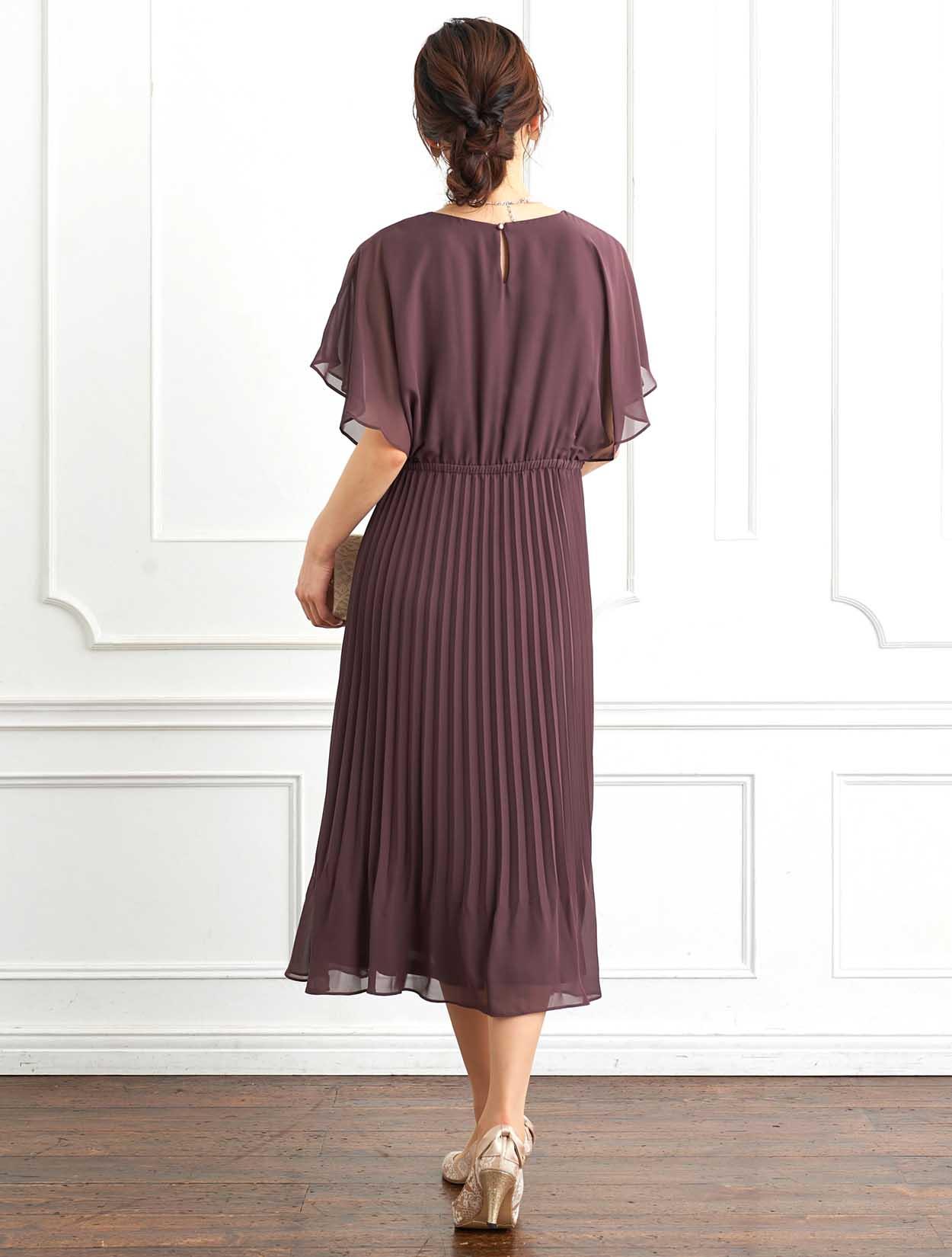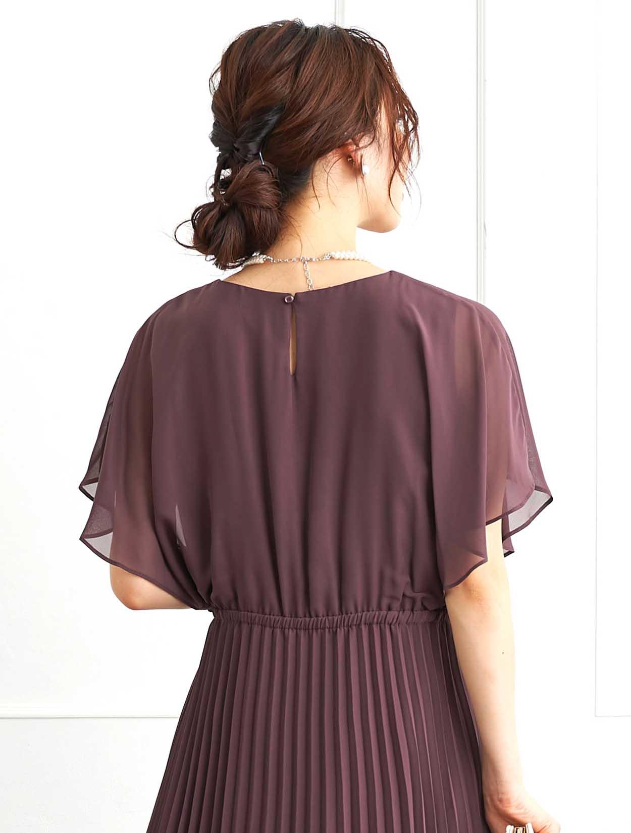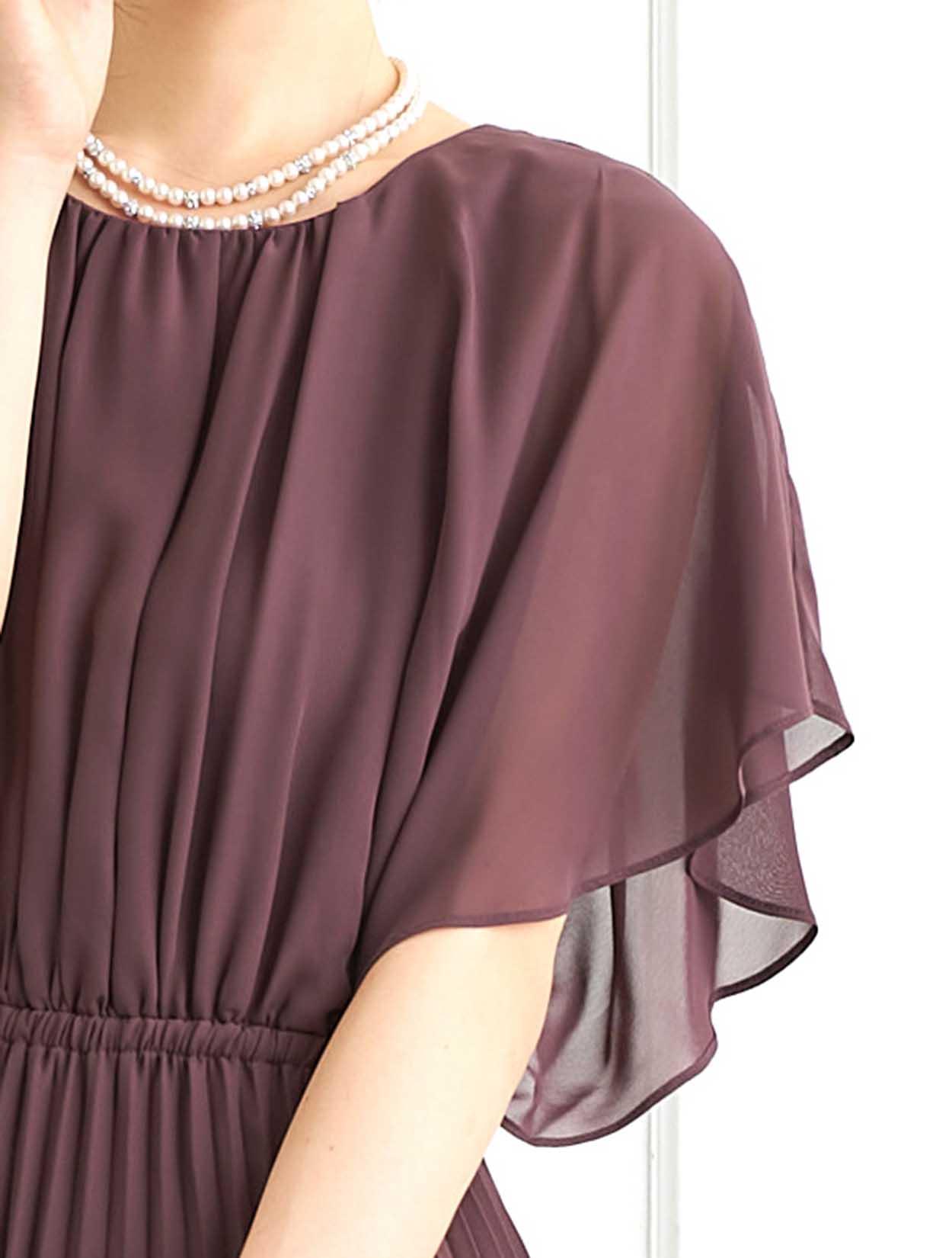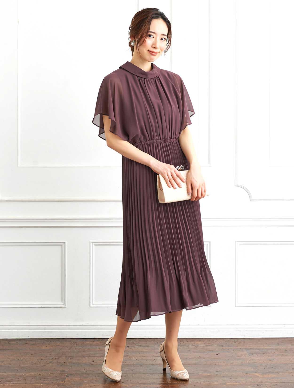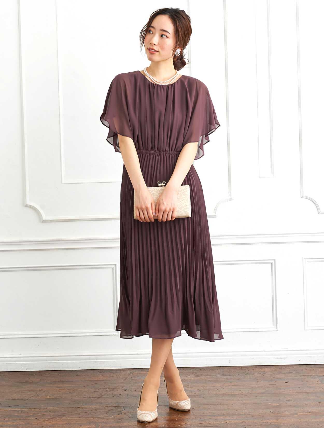 ■脚長効果抜群のプリーツスカートが印象的なロングドレスです。