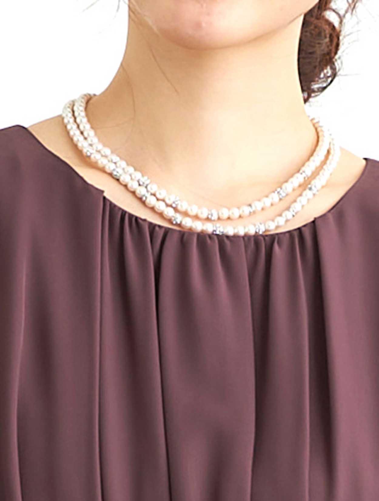 ■2連のネックレスはパールの粒感も程よく、ドレスのデザインも損なわずに合わせられます。
