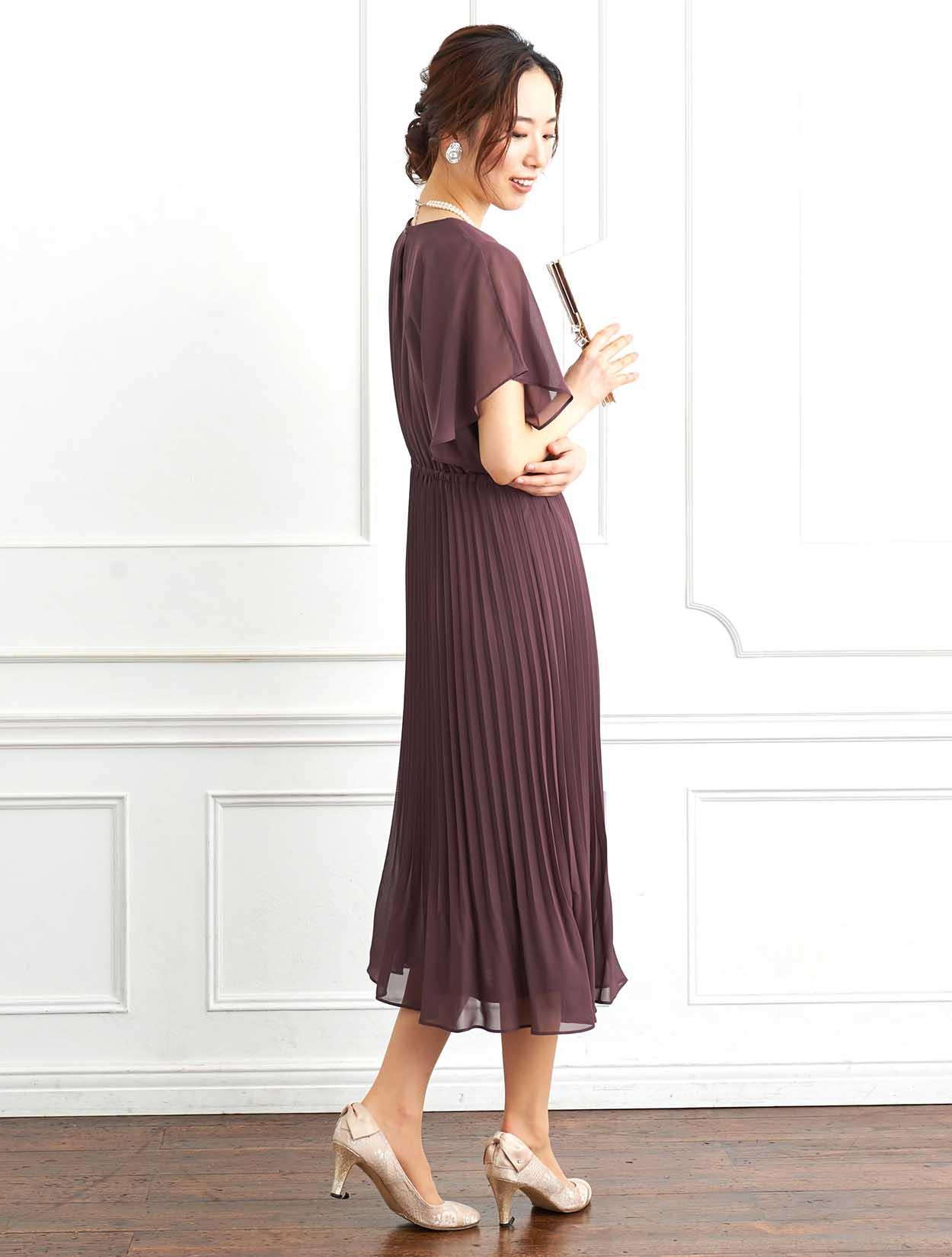 ■脚長効果抜群のプリーツスカートが印象的なロングドレスです。