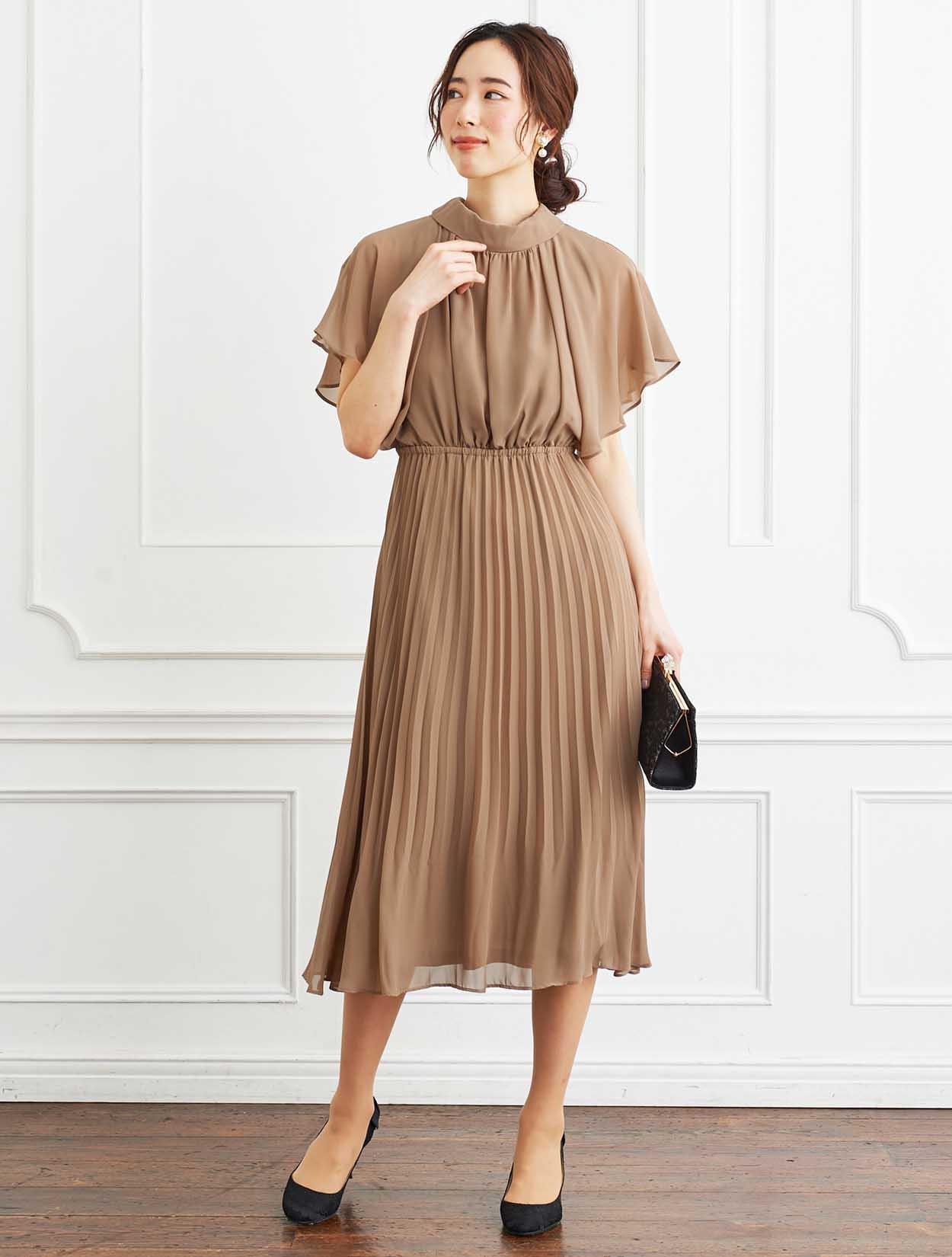■脚長効果抜群のプリーツスカートが印象的なロングドレスです。